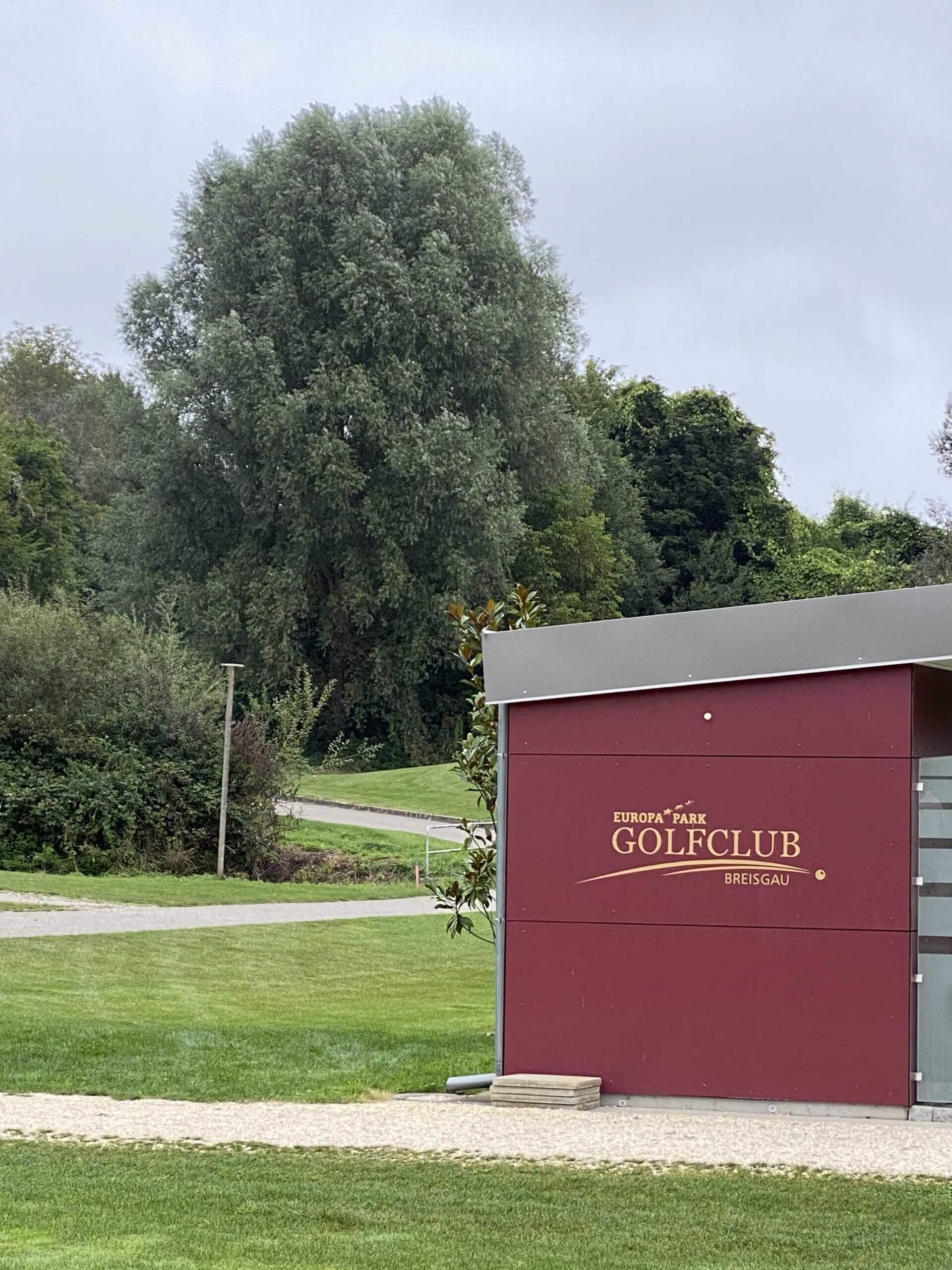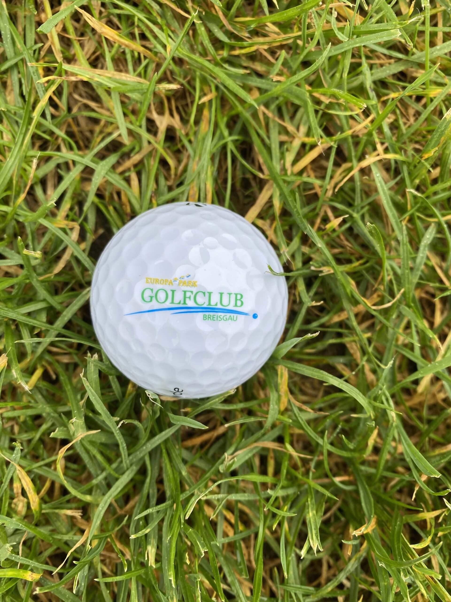 Erste Station ist der GC Europapark Breisgau. Christina war aufgrund des Namens ziemlich skeptisch und stellte sich so eine Art Micky Maus-Course vor. Doch schon unser erster Eindruck ist ein ganz anderer. Die Anlage macht einen sehr schönen Eindruck. Unsere Startzeit können wir ein wenig vorziehen. Ich erwerbe den bisher teuersten Logoball (€ 4,95) meiner golferischen Karriere. Die Dame am Empfang meint, es sei ja immerhin das Logo des Europa Parks drauf.