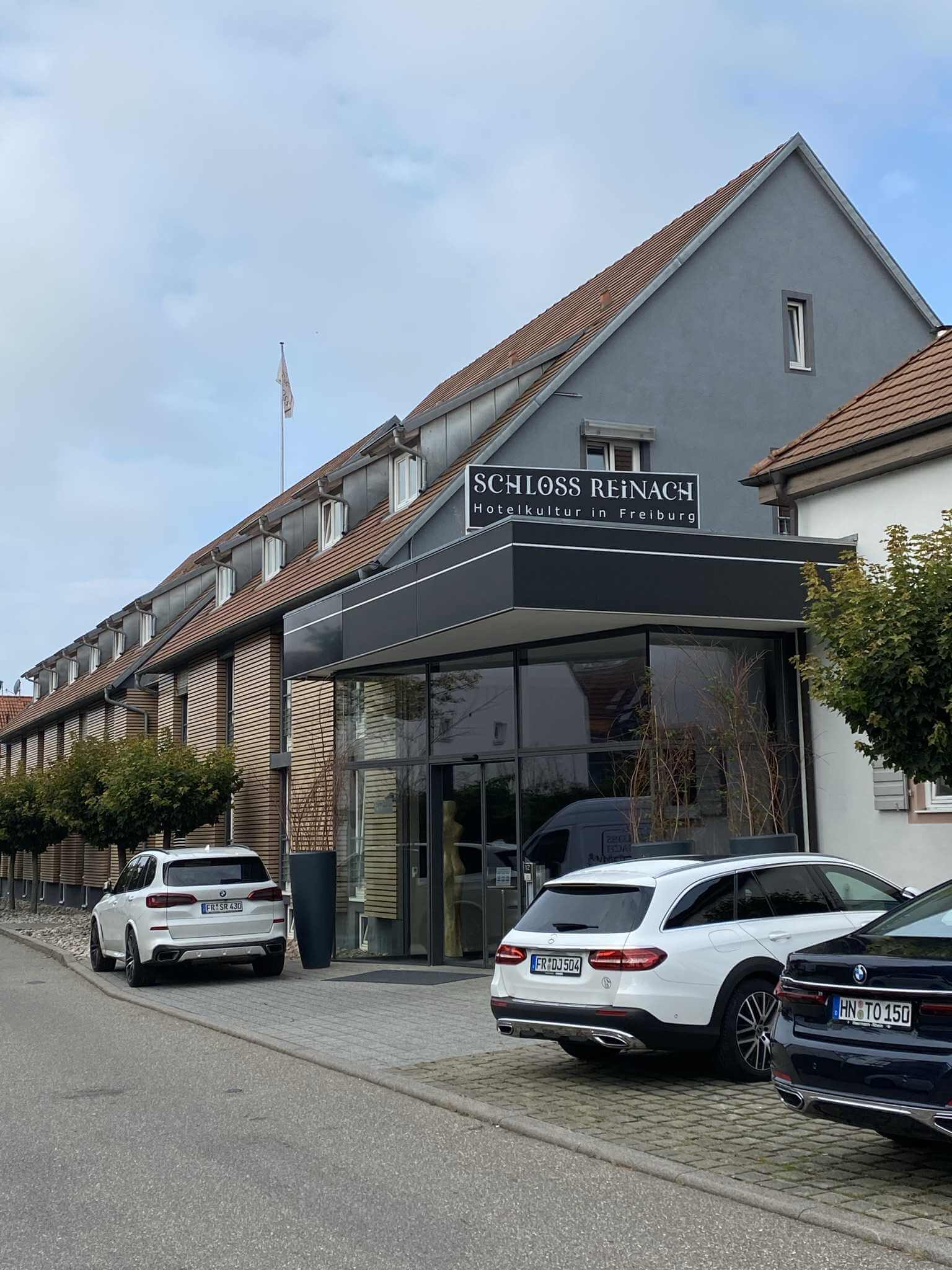 Als wir mit dem Essen fertig sind regnet es immer noch stark. Wir fahren das Auto unter‘s Dach um einigermaßen trocken einladen zu können. Dann fahren wir die letzte halbe Stunde in unser Hotel Schloss Reinach in Freiburg. Dort checken wir ein und treffen uns auf einen Absacker in der Bar. Das Angebot ist beeindruckend, gibt es doch von sechs der sieben Brennereien von Islay wenigstens einen Whisky. € 22 für einen Schluck Lagavulin sind mir jedoch zuviel und so entscheiden wir uns – passend zum Wetter – für Rotwein.