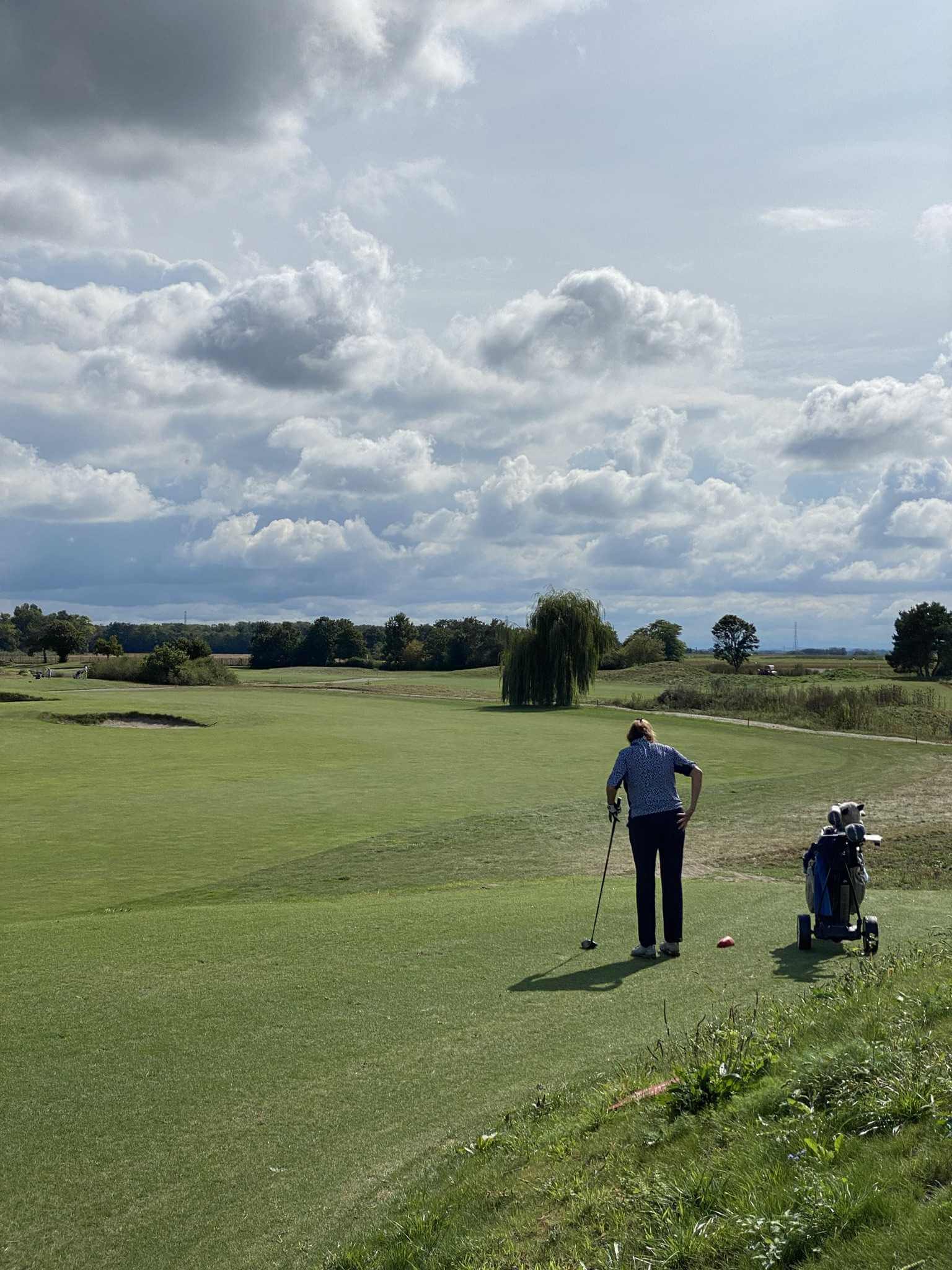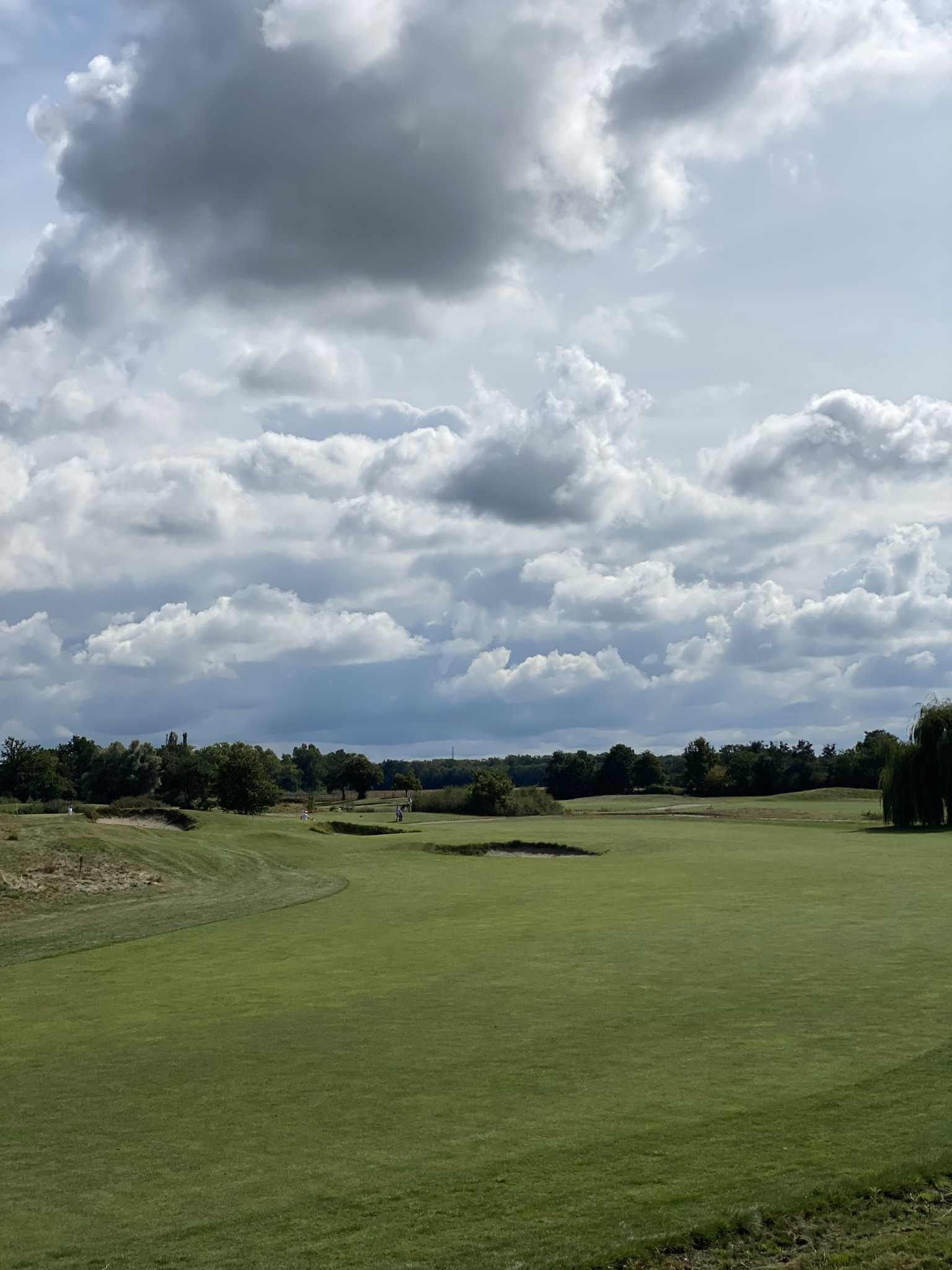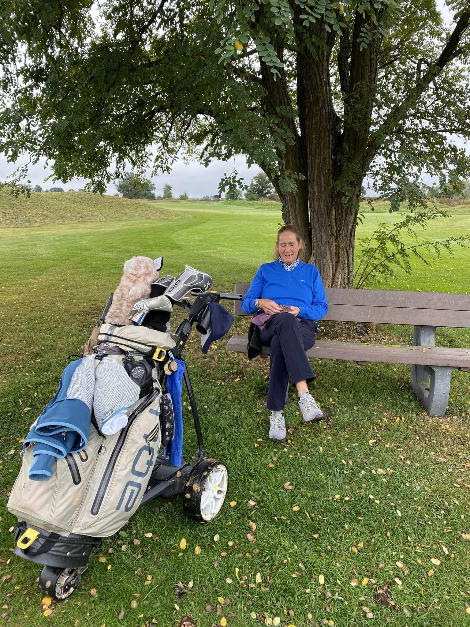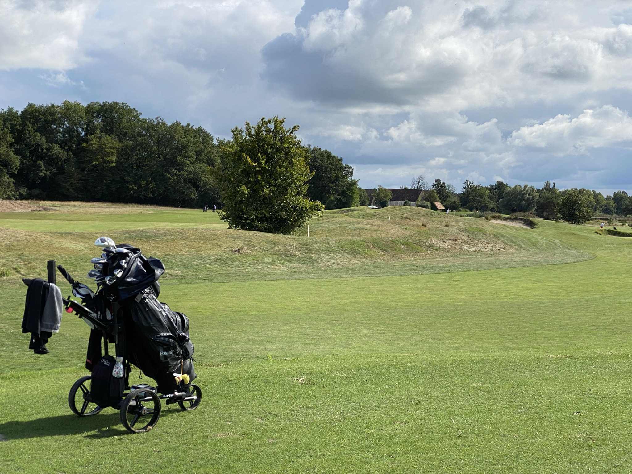 Wir beeilen uns da wegzukommen. Und freuen uns, dass der Himmel immer mehr aufmacht. Es wird richtig sonnig und herrlich warm. Das macht es etwas leichter, dass wir auf den zweiten Neun schon wieder an jeder Bahn lange stehen und warten bis unser Vorflight endlich fertig wird. Vier sehr schwache Spieler, die nach eigener Aussage „une carte“ – ein Turnier? – spielen und sich entsprechend massig Zeit lassen. Das Ergebnis kann trotzdem nichts werden.