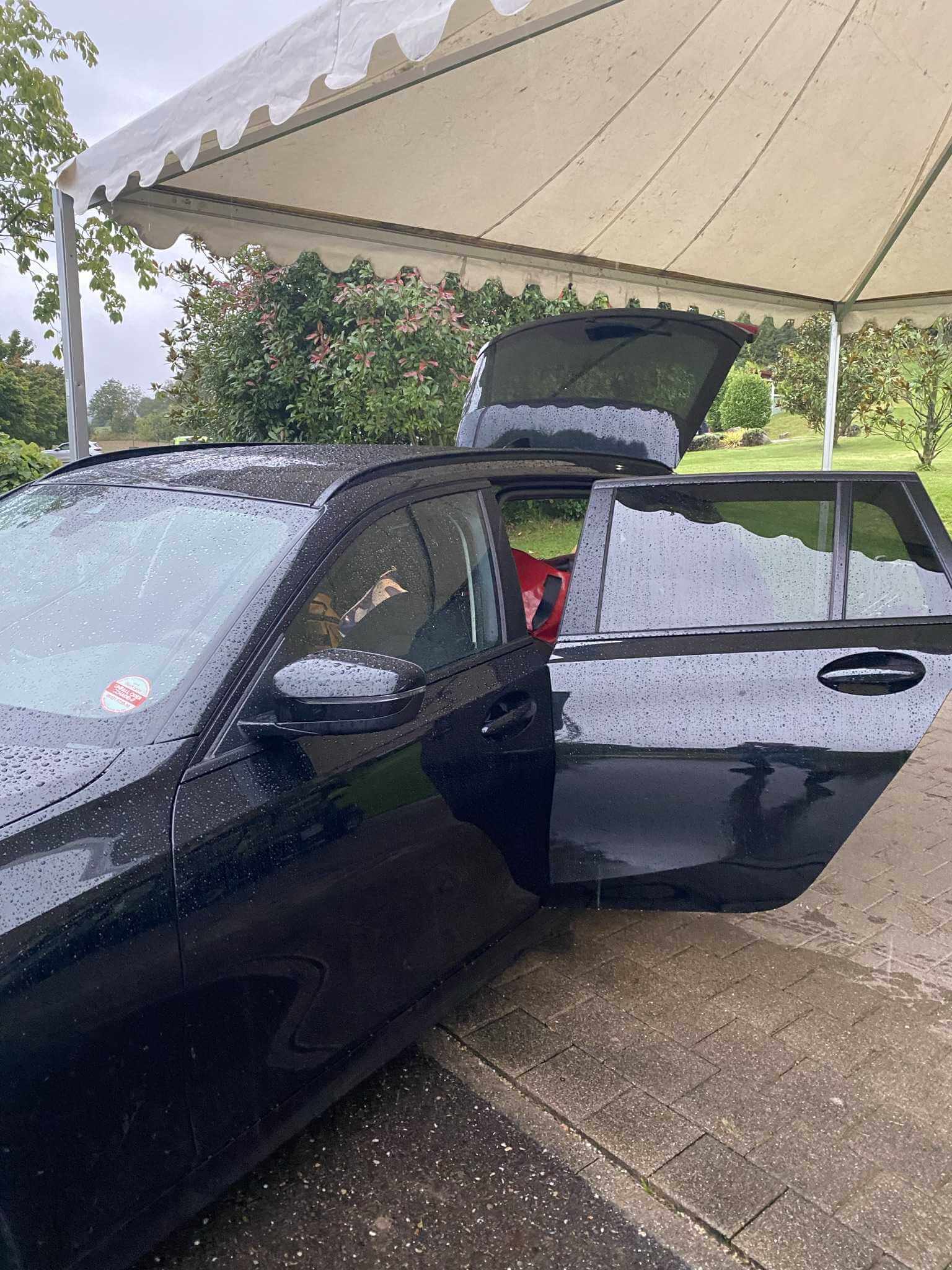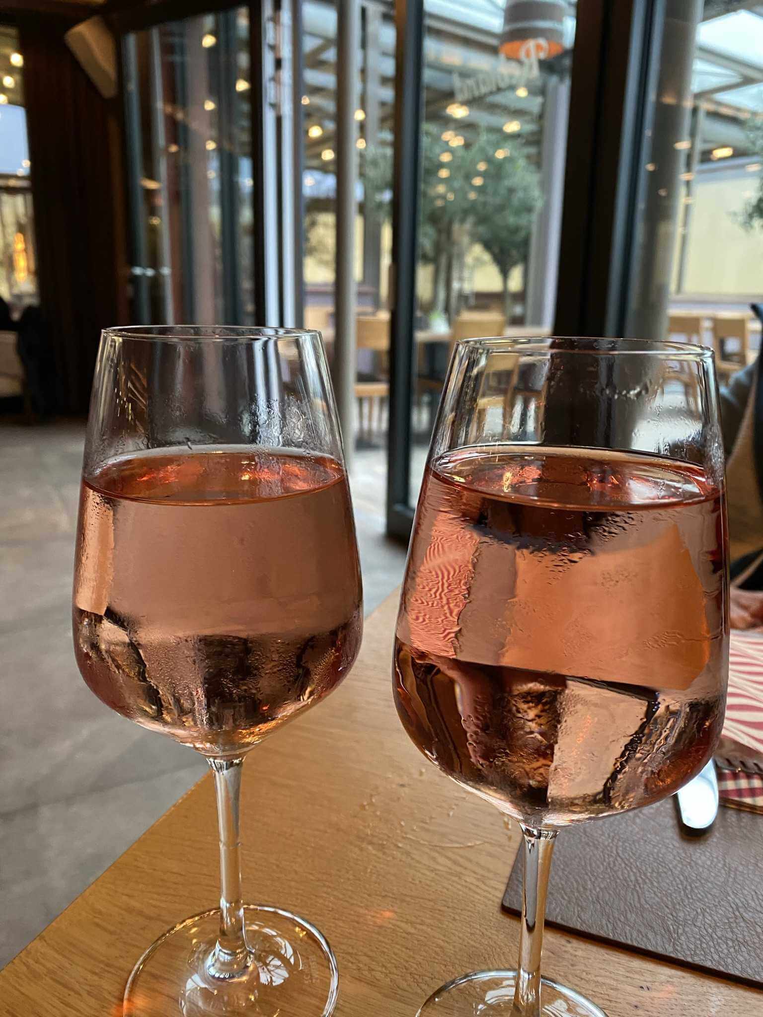 Wir sind klatschnass. Alles tropft und deshalb legen wir uns erst einmal trocken und gehen im Golfclub lecker essen. Das Roseschorle entschädigt schon für einiges. Es ist mindestens ein Doppelschorle und schmeckt auch gut und auch das Essen ist lecker.