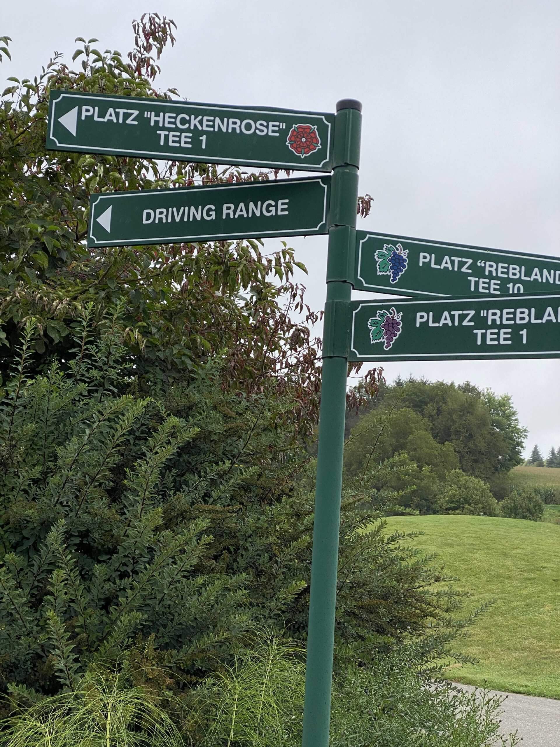 Der Himmel ist grau und bedeckt. Wir fahren ins Elsass zum Golfclub Golf d‘Alsace. In Rouffach. Das Navi will uns nach Blitzenheim führen und woher um alles in der Welt sollen wir wissen was richtig ist? Geographiekenntnisse würden helfen.