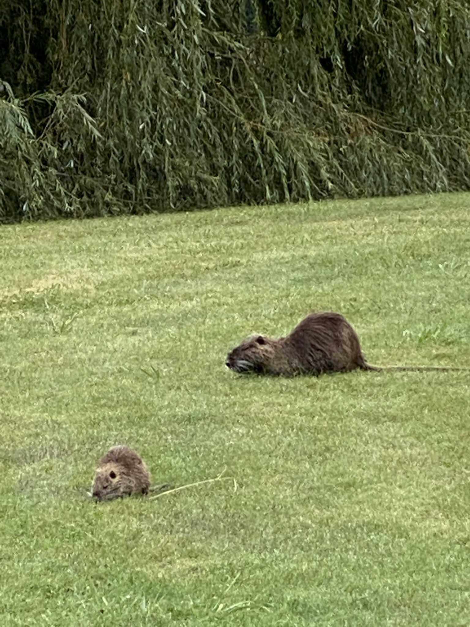 Schon auf Bahn 4 sehen wir weit zu unserer rechten merkwürdige Objekte. Tiere? Vermutlich schon, denn sie bewegen sich. Schon bald wird das zur Gewissheit. Es sind Nutrias, Wasserratten. Ganz viele und riesig groß. Das ist schon 🤮 eklig. Christina bekommt Gänsehaut und ich eine Schwäche in die Arme.
