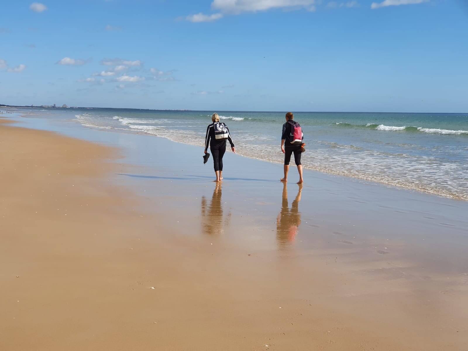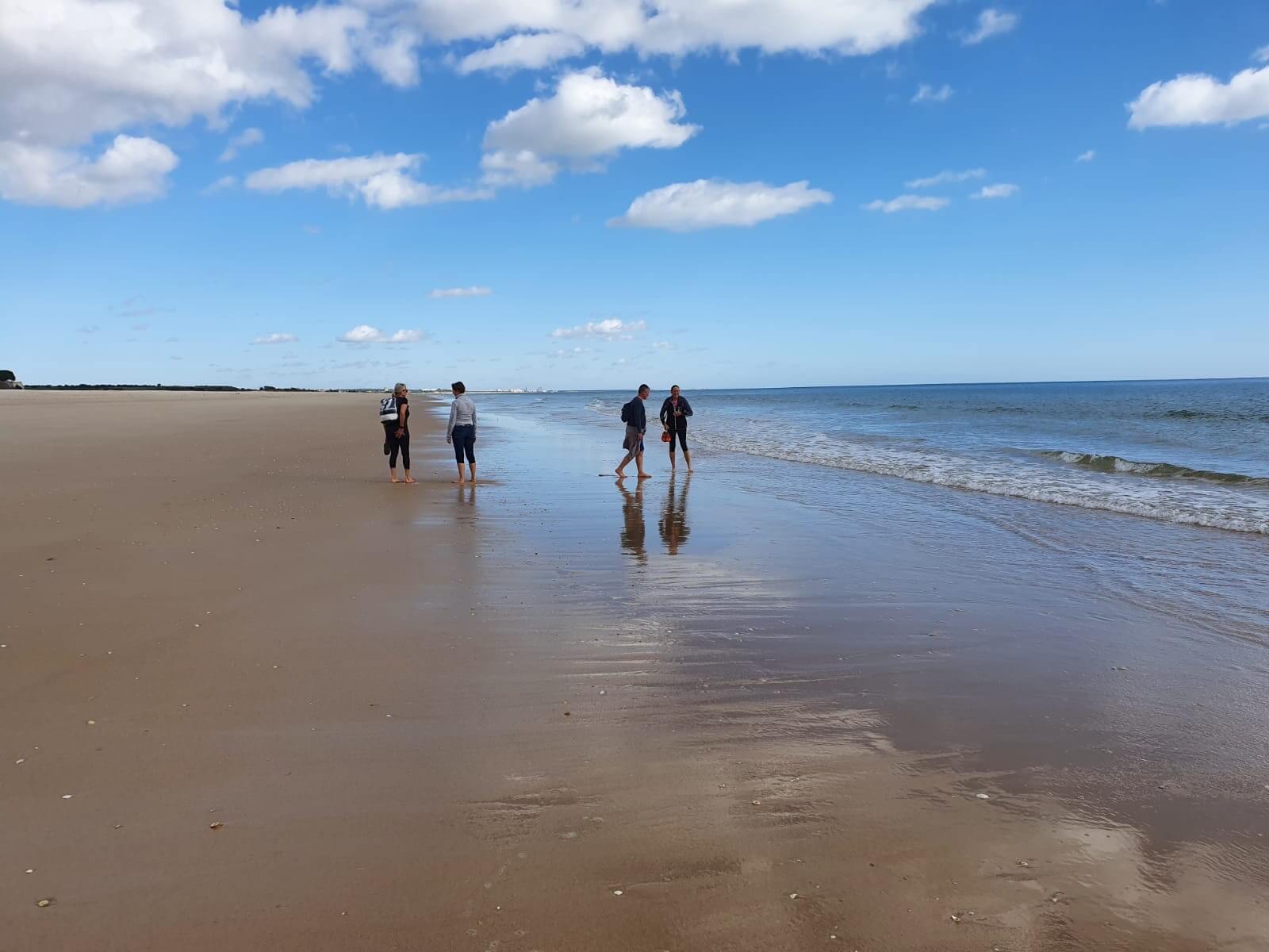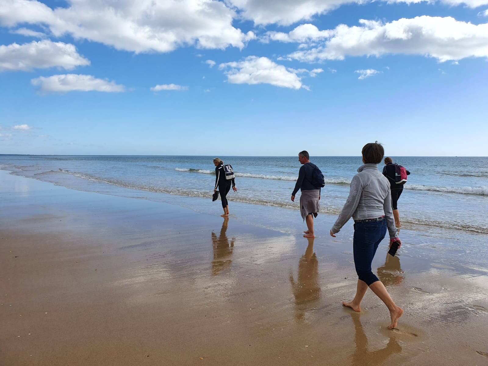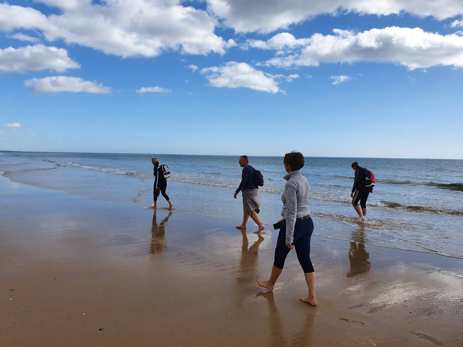 Schließlich erreichen wir die Sandbank und marschieren am Meer entlang.