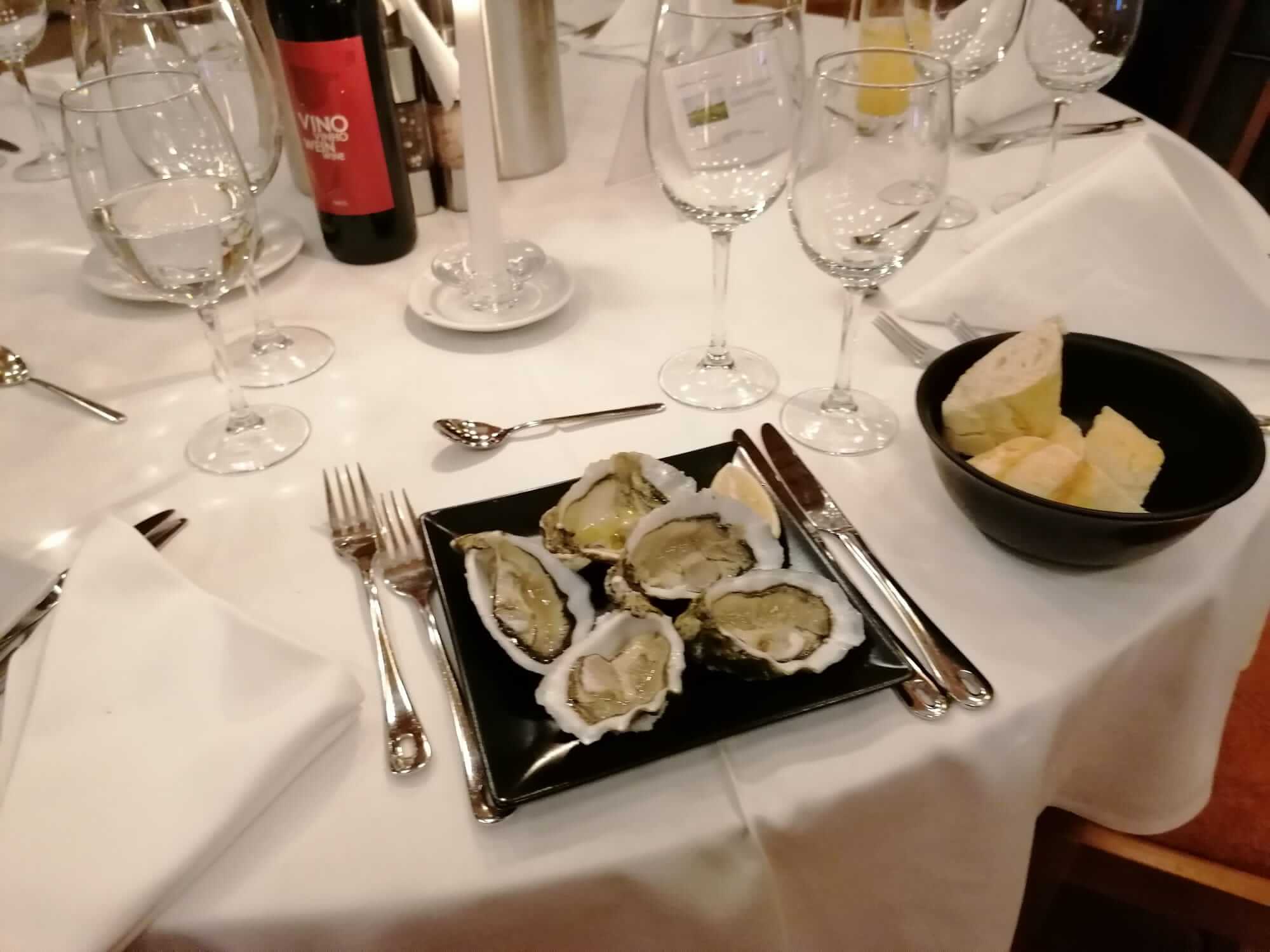 Und dann ist Galaabend. Weiß Glitzer hat niemand von uns an, aber wir geben uns redliche Mühe, eine ordentliche Erscheinung abzugeben. Marike fotografiert heute das Büffet und gefühlt alle Gänge, bis hin zum Erdbeer-Busen (unten Mitte).