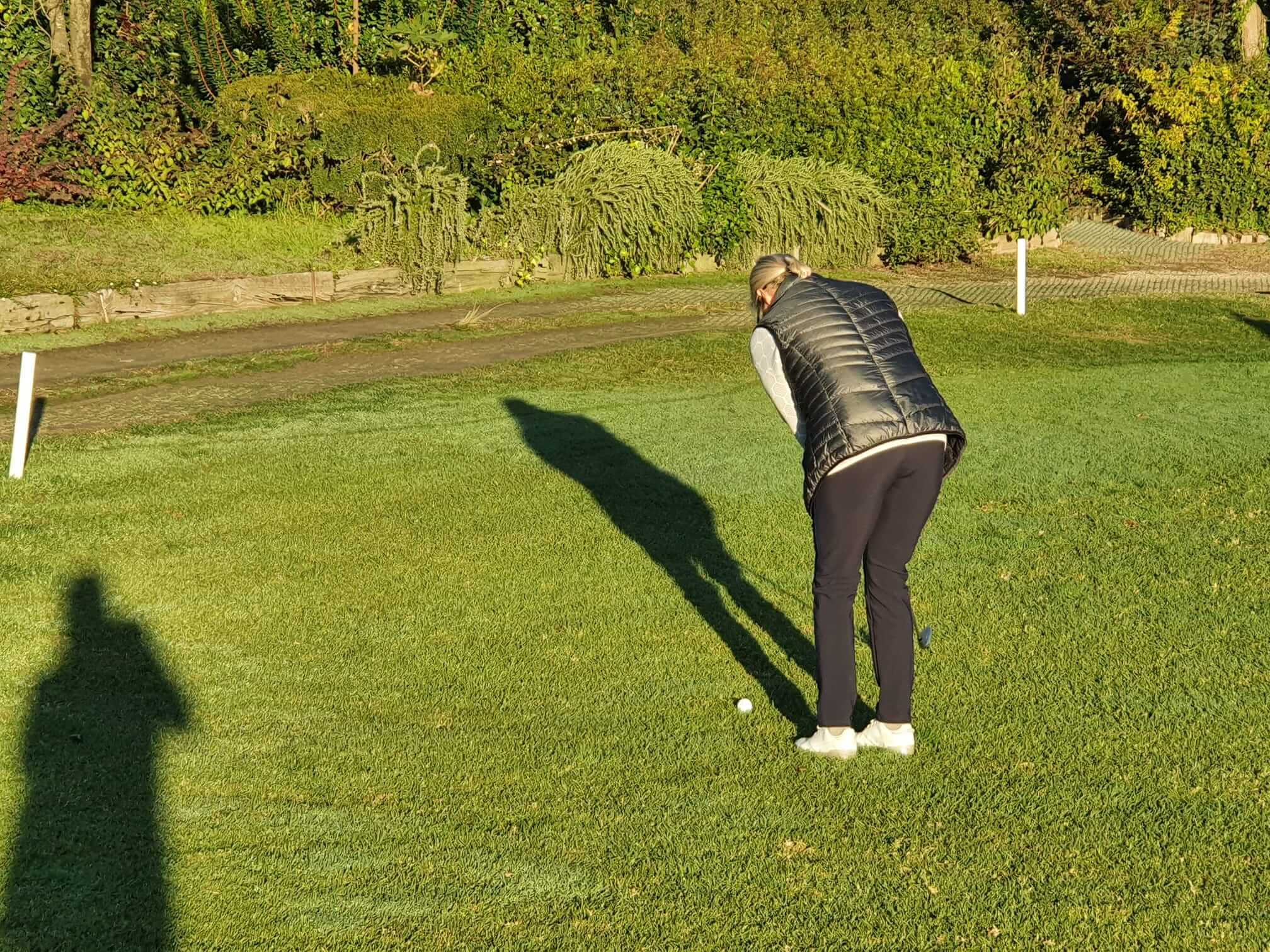 Unsere Zimmer sind mittlerweile fertig. Also können wir uns umziehen und dann auf die Range, um ein Körbchen Bälle zu schlagen. Ich möchte meine Leihschläger ausprobieren. Auf den ersten Schlag verliebe ich mich in das M6 Holz 7. Hoffentlich hält die Liebesbeziehung morgen auf dem Platz an!