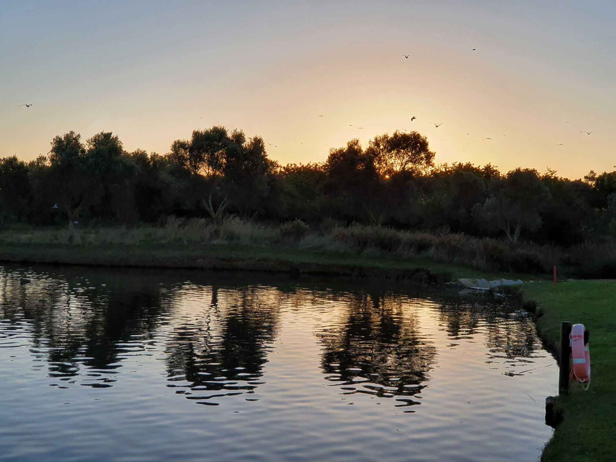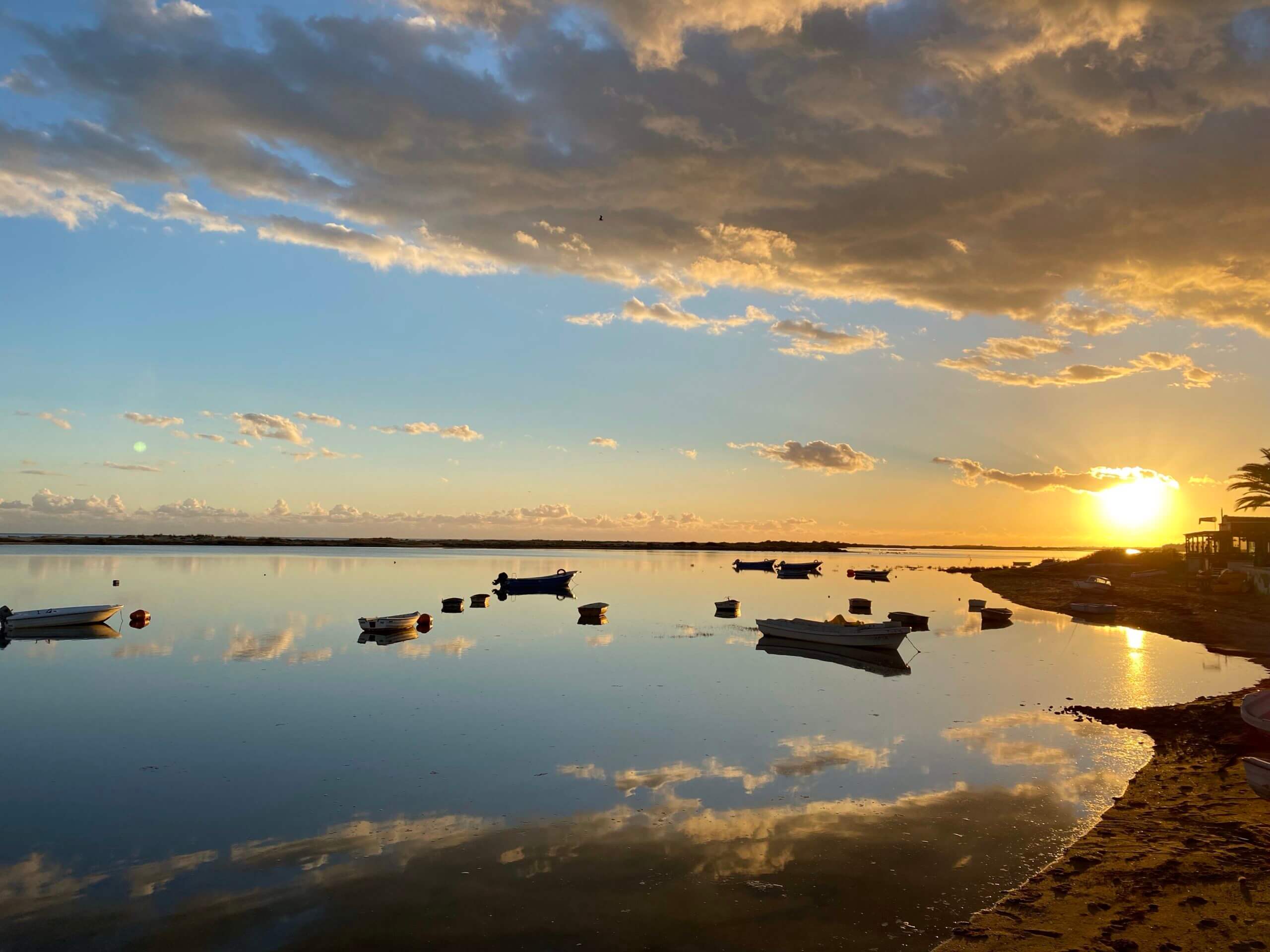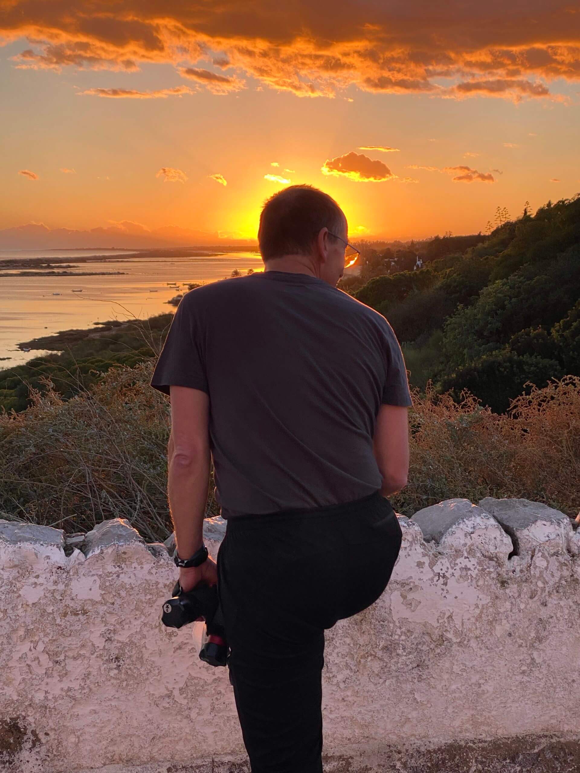 Die geplante Fahrt mit dem Solarboot treten wir nicht an, weil es inzwischen wolkig und kalt ist. Statt dessen besuchen wir mit Josef den XBC-Kurs (oder so ähnlich). Wir hatten ein leichtes Cardiotraining erwartet. Tatsächlich aber walken wir mit Gewichten in den Händen bis zum nächsten Dorf und über den Strand. Super, denke ich mir… da laufe ich vier Stunden über den Golfplatz und gehe dann noch walken… Immerhin werden wir mit einem traumhaften Sonnenuntergang über dem Meer belohnt.