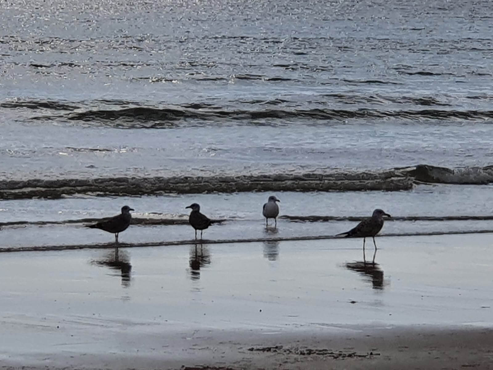 Irgendwann wird mir dann ein wenig bange. Ich möchte wieder zurück zum Festland bevor die Flut kommt und wir bis in die Nacht auf der Sandbank ausharren müssen. Also waten wir wieder zurück. Wir müssen über ziemlich ekligen Untergrund und versinken zum Teil bis über die Knöchel im Sand. Ich bin froh als wir das Festland wieder erreicht haben. Unsere Füße sind voller Teerflecken. Raupen habe ich keine gesehen. Christina allerdings schon, aber zum Glück hat sie nichts gesagt.