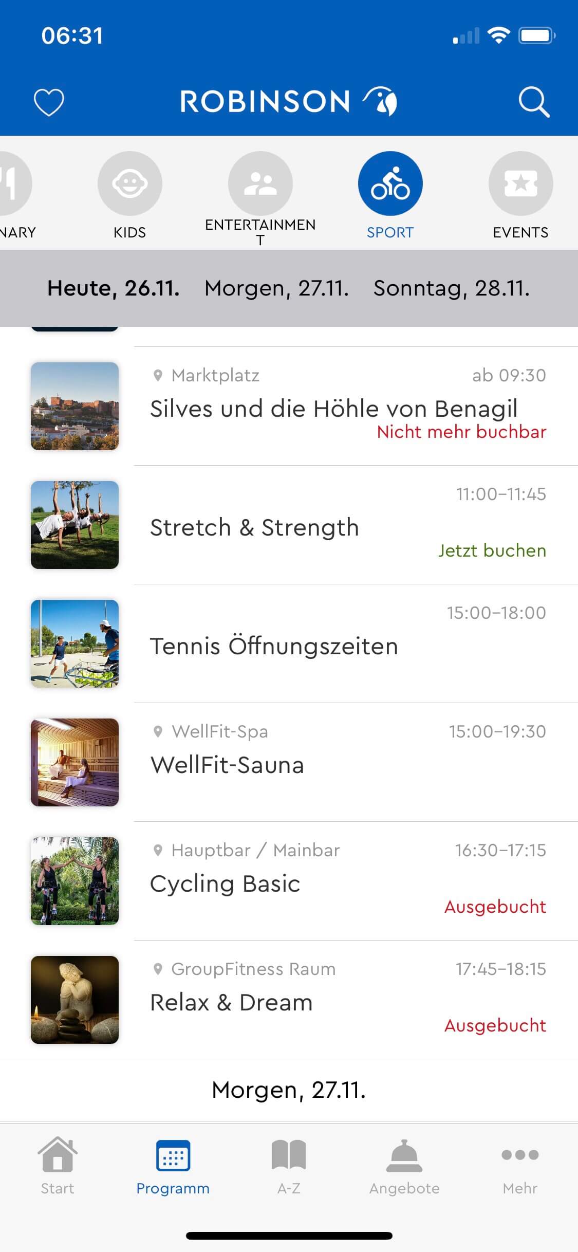 Zwischendurch müssen wir noch rasch unsere Kurse für morgen buchen sonst sind die wieder voll und unsere Faszien bleiben vernachlässigt.