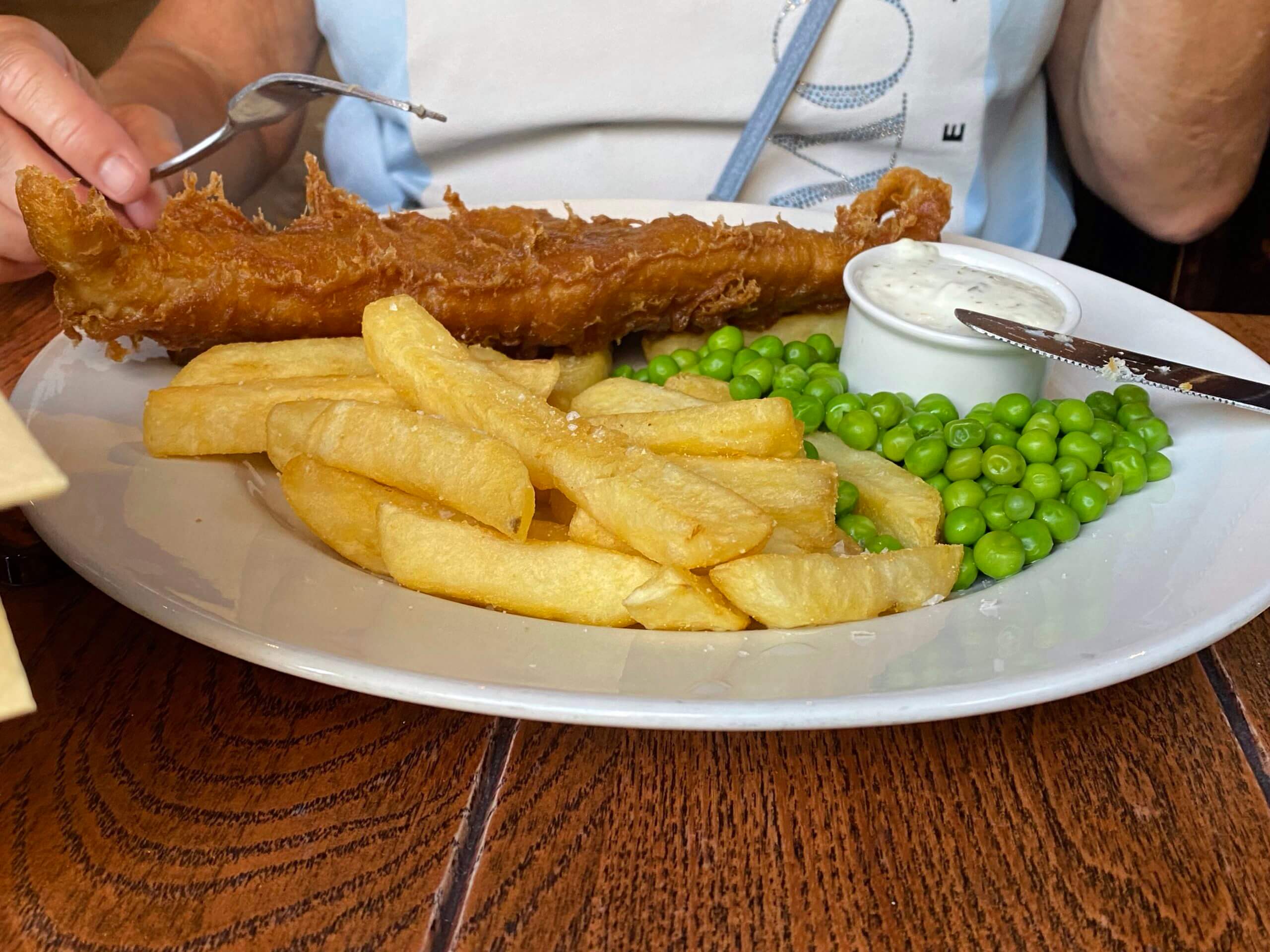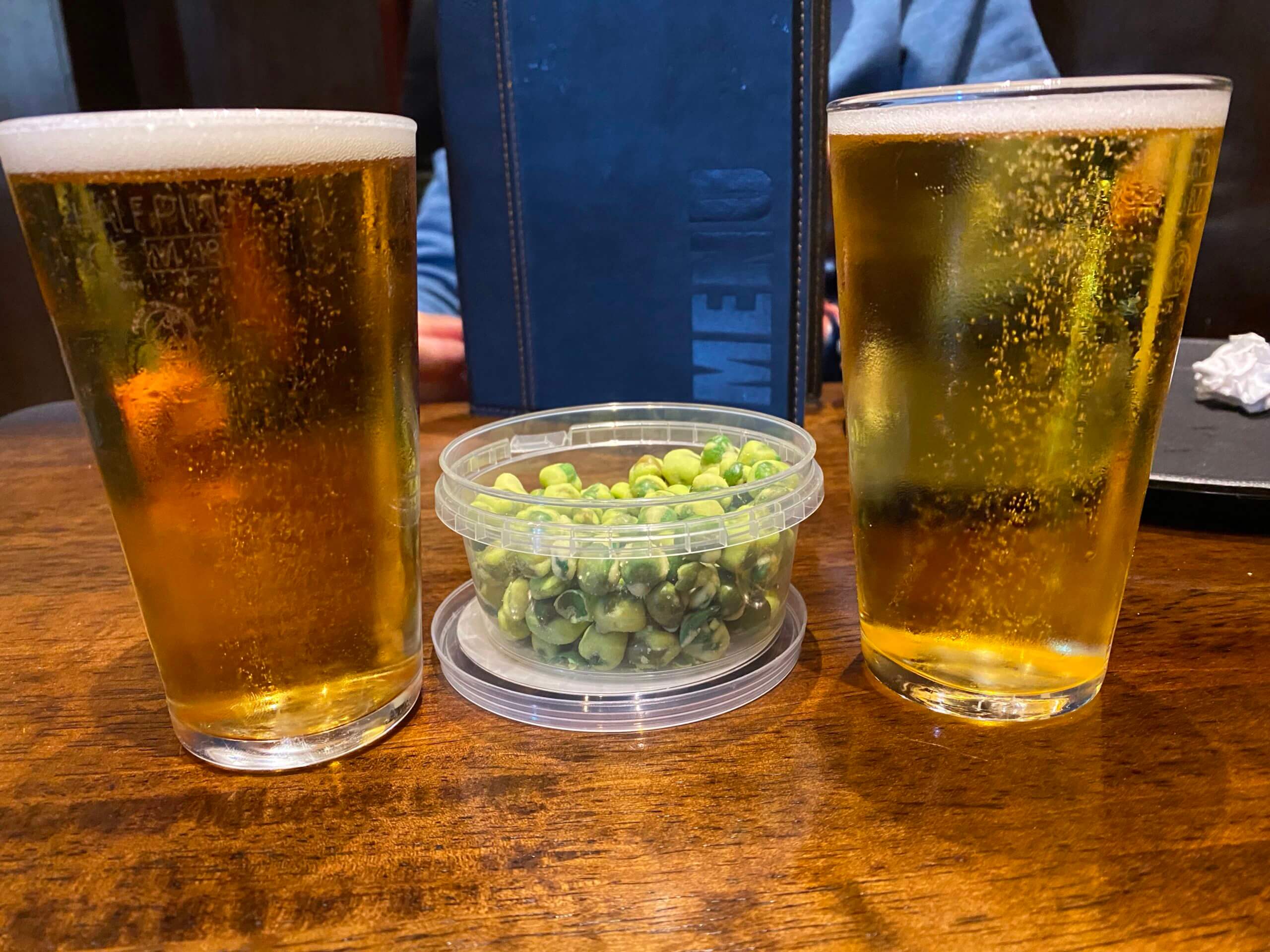 Nachdem das Problem gelöst ist, brauchen wir dringend was zu essen und zu trinken. Wir gehen Richtung Innenstadt und kehren dort in einem Pub ein.