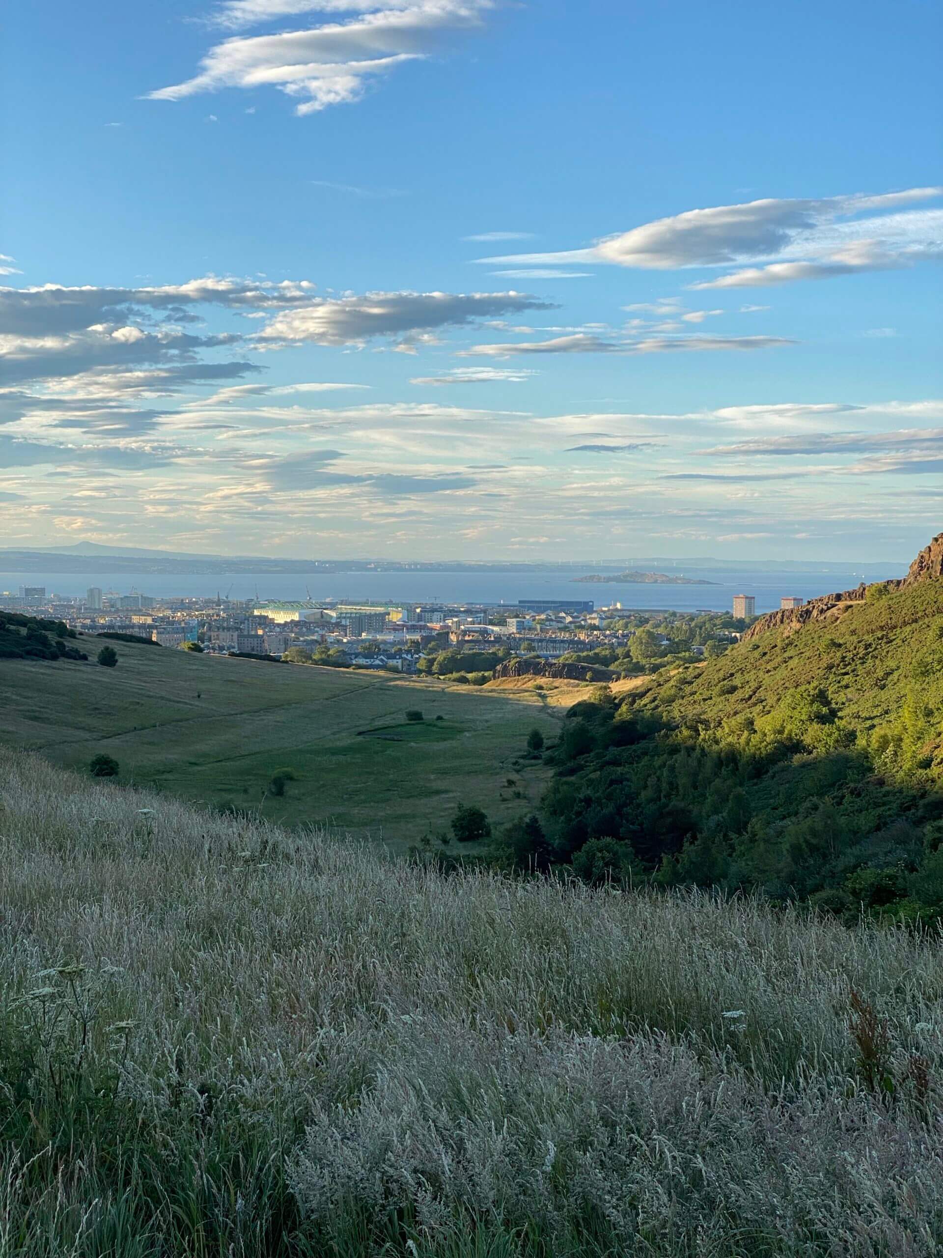 Christina erklärt sich bereit, die erste Fahrt auf der anderen Seite zu übernehmen. Wir fahren zu unserer ersten Unterkunft in einem Wohnheim der Universität Edinburgh. Einfache und zweckmäßig ausgestattete Zimmer. Christina hat einen tollen Ausblick auf Arthur‘s Seat, ich in den Garten. Meines ist zudem behindertengerecht, was unter anderem bedeutet, dass das Waschbecken auf knapp über Kniehöhe ist. Zum Glück hab ich es nicht im Kreuz.