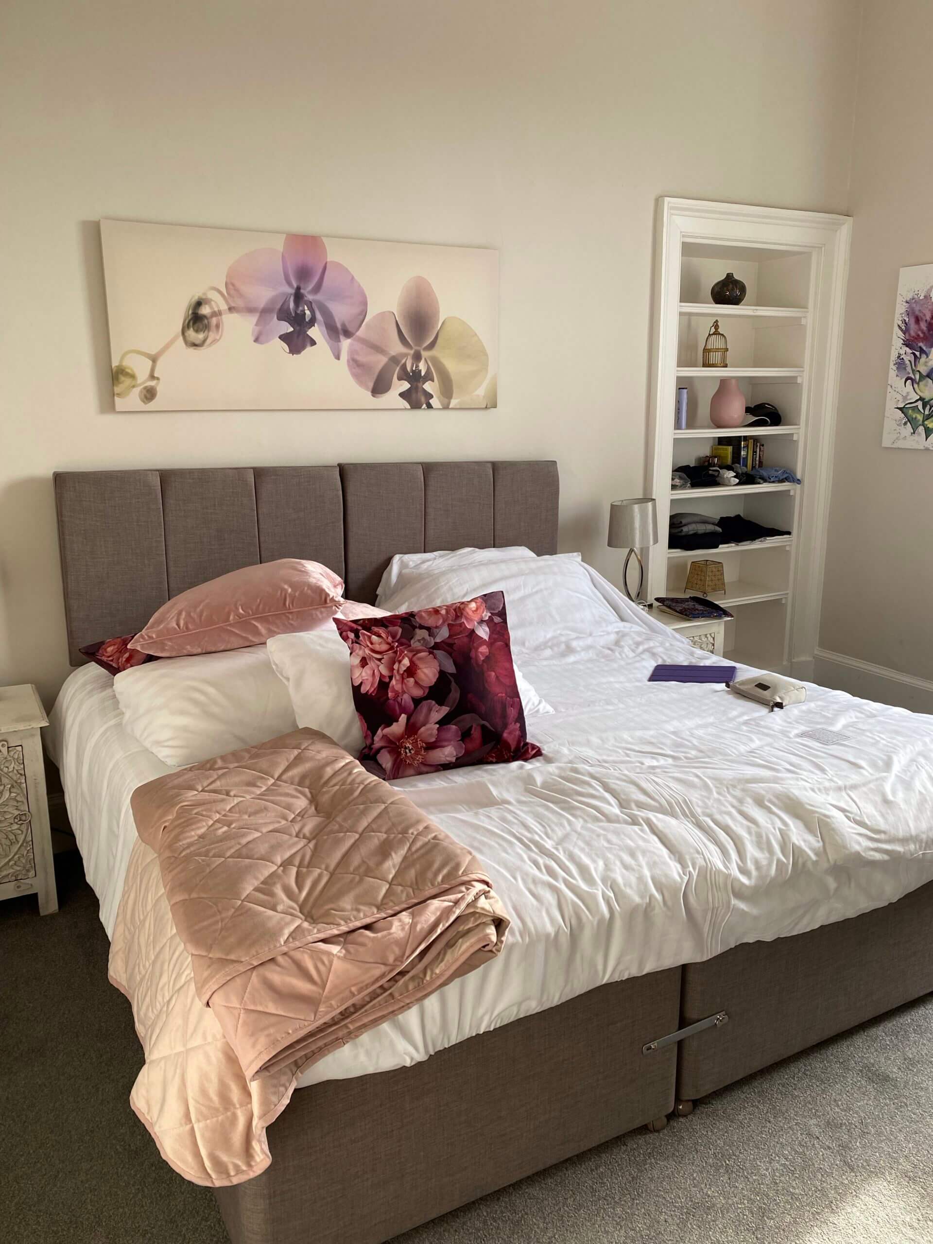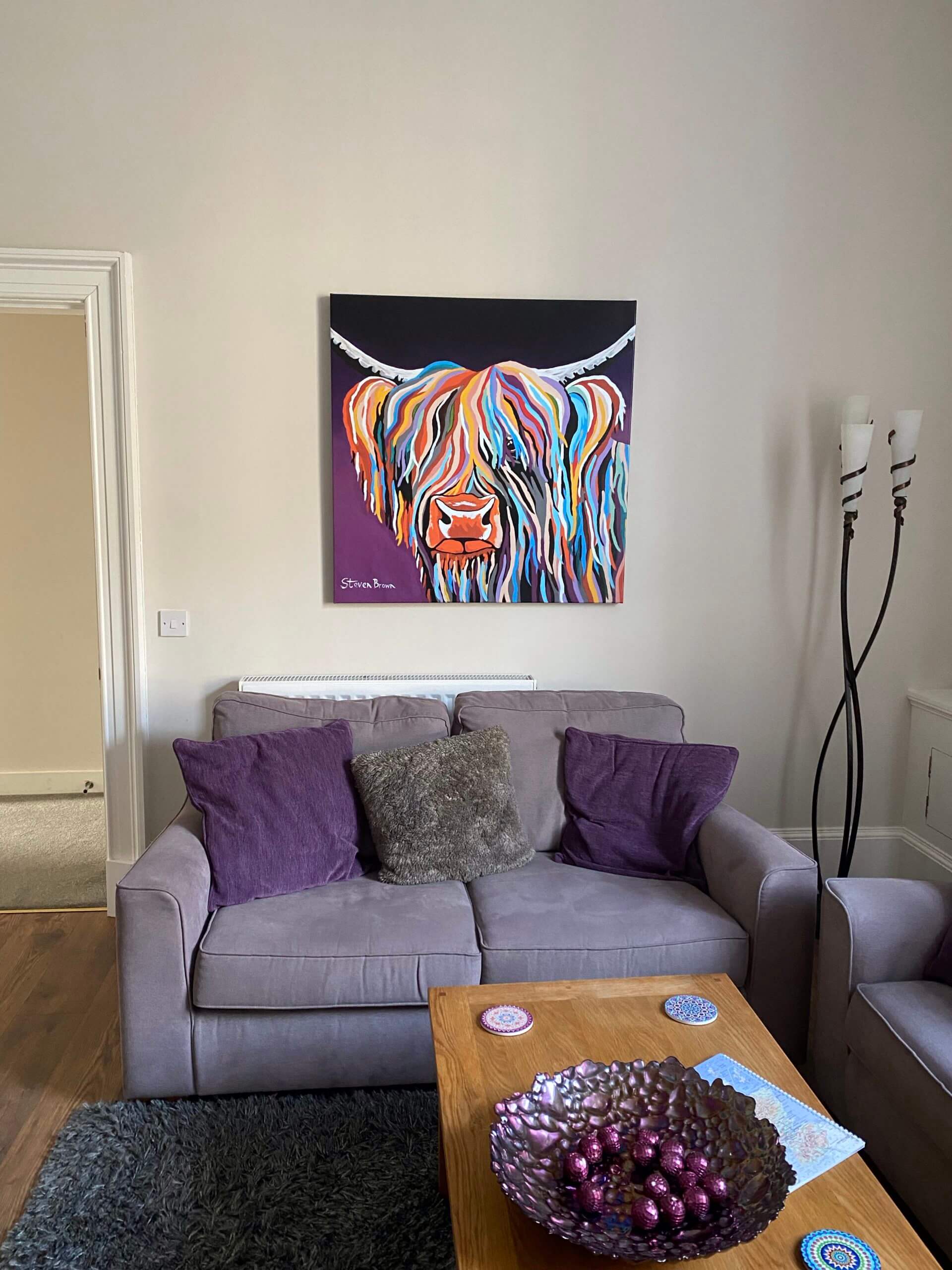 Es ist so herrlich auf dem Gelände und das Wetter ein Traum, dass wir bis fast 18 Uhr bleiben, mal an einem Abschlag, dann wieder an einem Grün und auch vor den großen Videowänden. Dann allerdings machen wir uns auf zu unserer nächsten Unterkunft in Stirling. Die Fahrt dauert dauert etwa 1,5 Stunden. Die Unterkunft zu finden ist etwas tricky. Wir fahren mehrfach am Haus vorbei ohne es als das unsere zu erkennen. Das liegt an den seltsamen Straßennamen. Aber nach zweimal fragen und mit Google Maps sind wir schließlich erfolgreich.