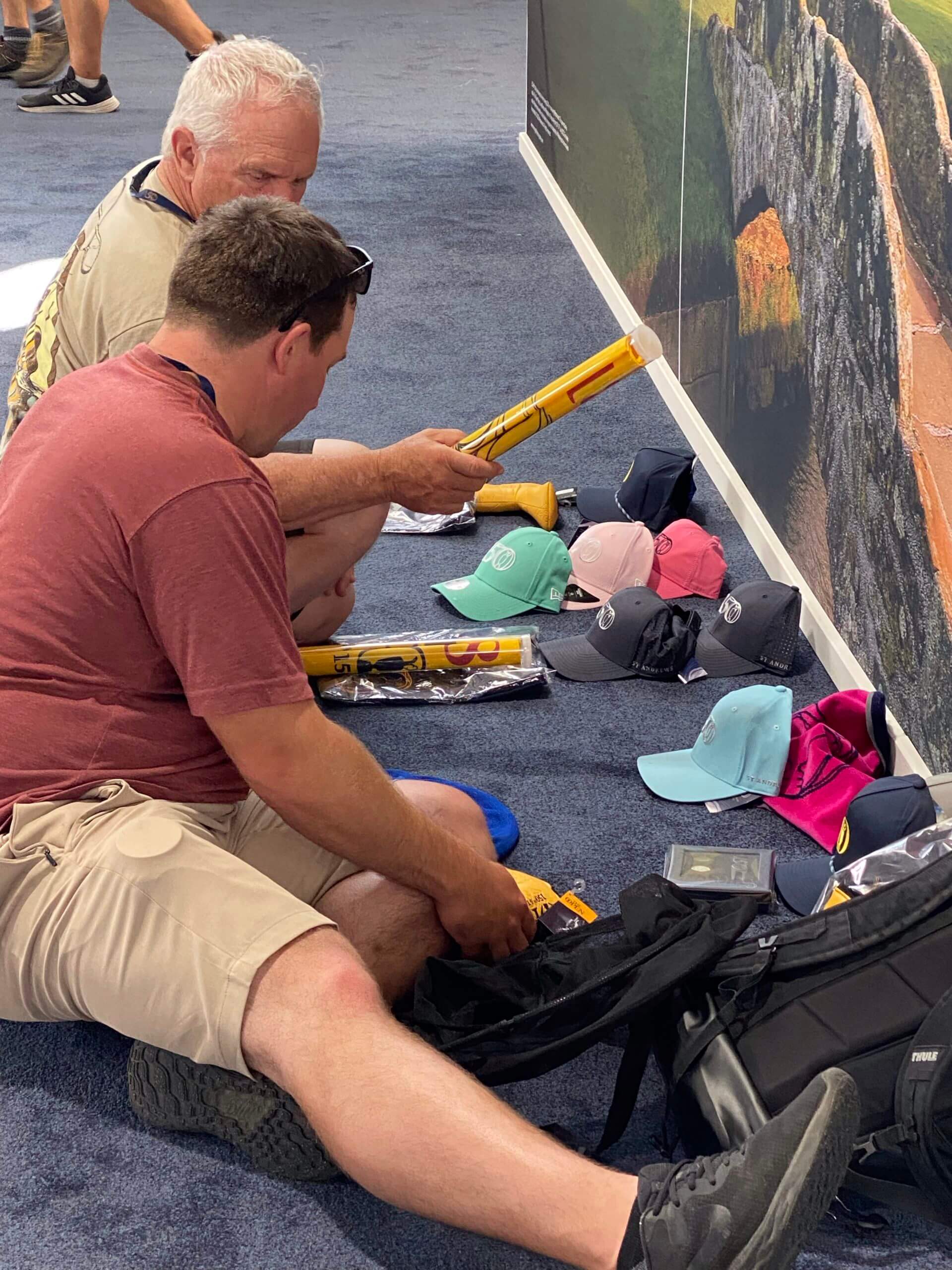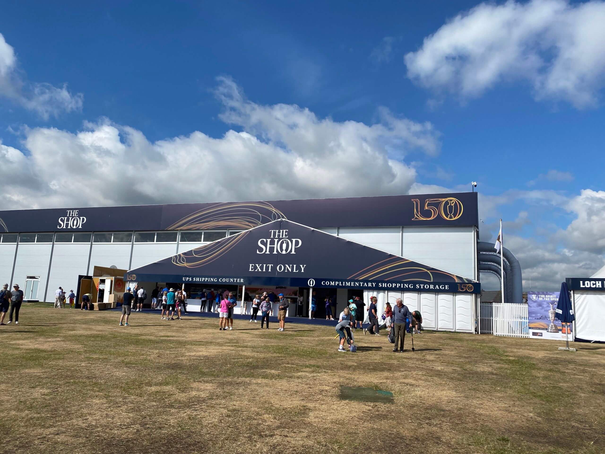 Nun kann es also aufs Gelände gehen. Neben vielen Sitzgelegenheiten mit einer großen Leinwand fällt zunächst der Shop auf. Ein ungeheuer großes provisorisches Gebäude mit Merchandise aller Art. Schon kurz nach 9 Uhr früh ist es dort proppenvoll. Ich wüsste zu gern was die am Tag umsetzen. Auch für uns gibt es natürlich je ein Polo und einen Ballmarker.