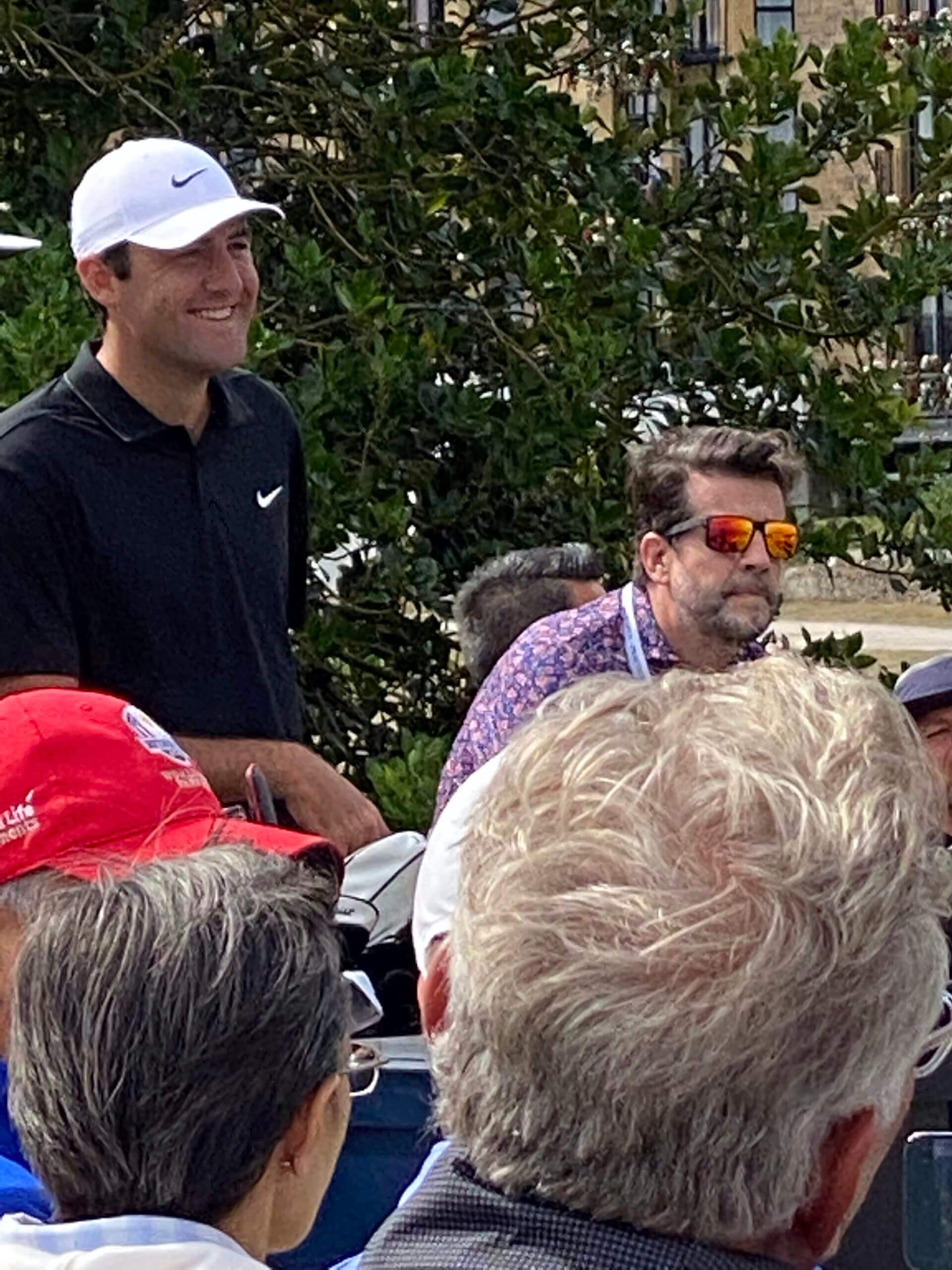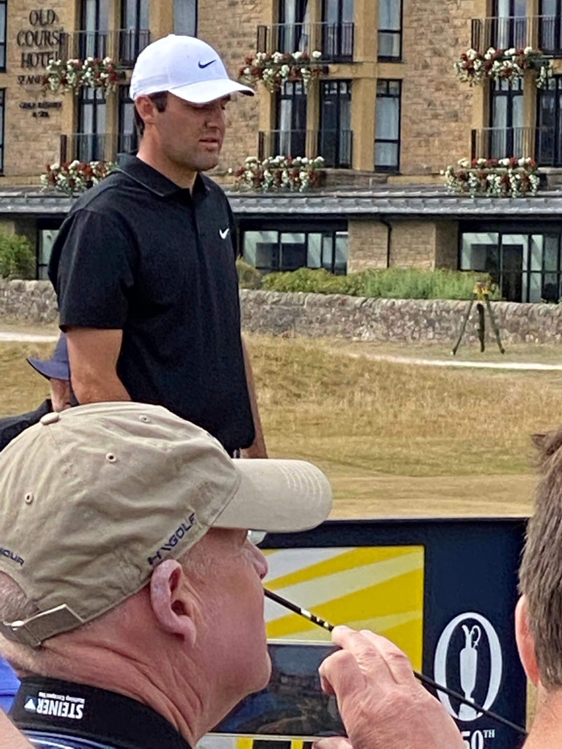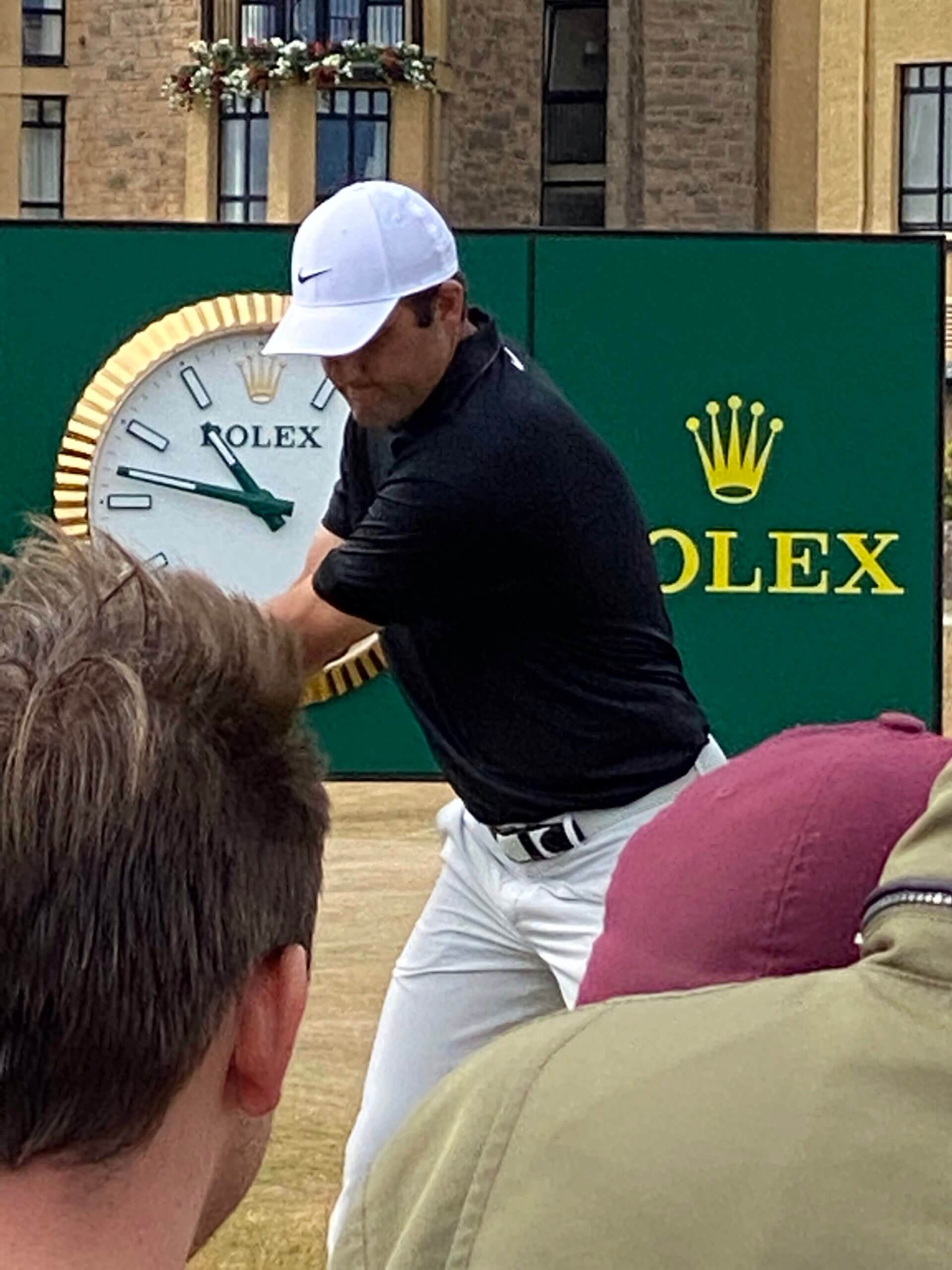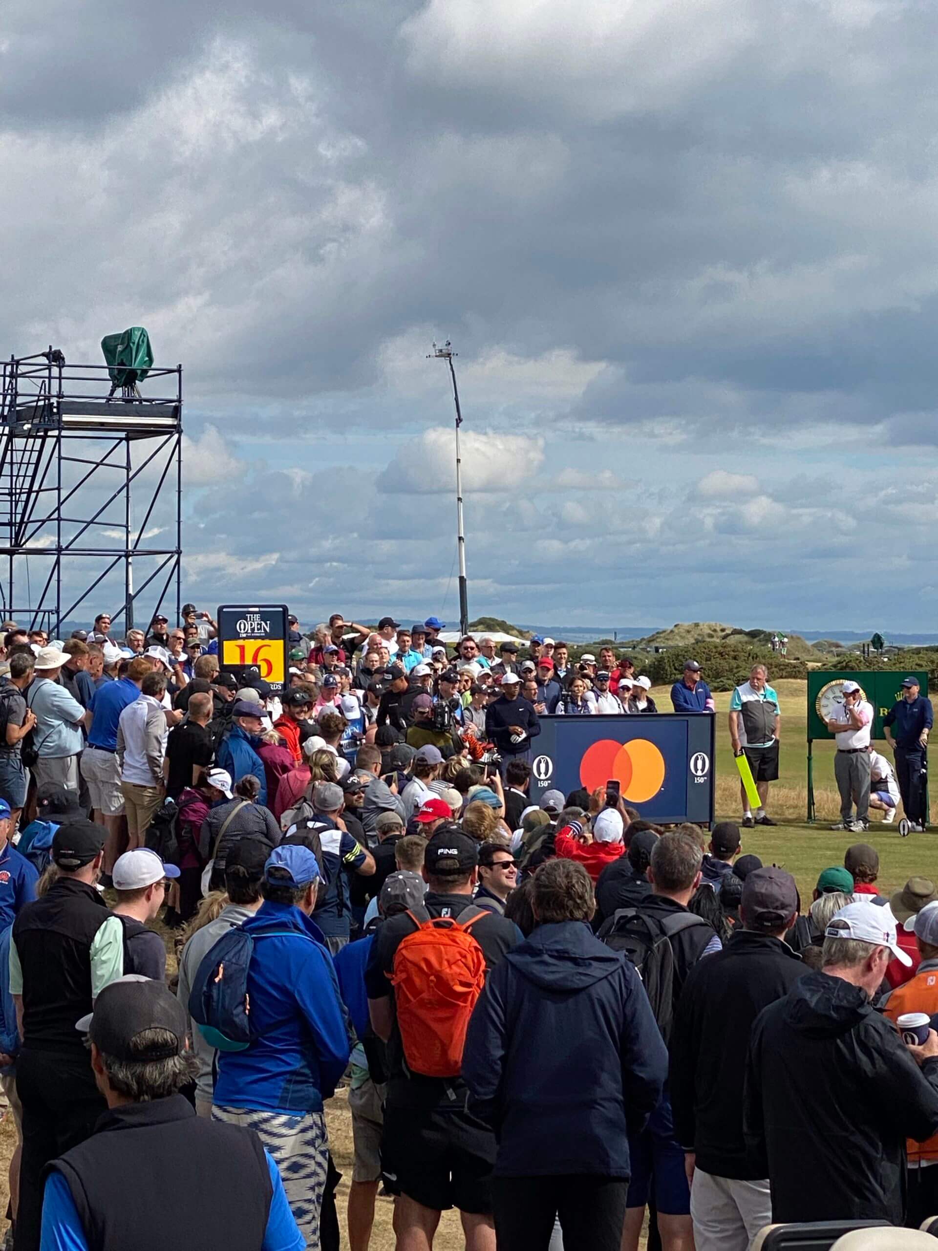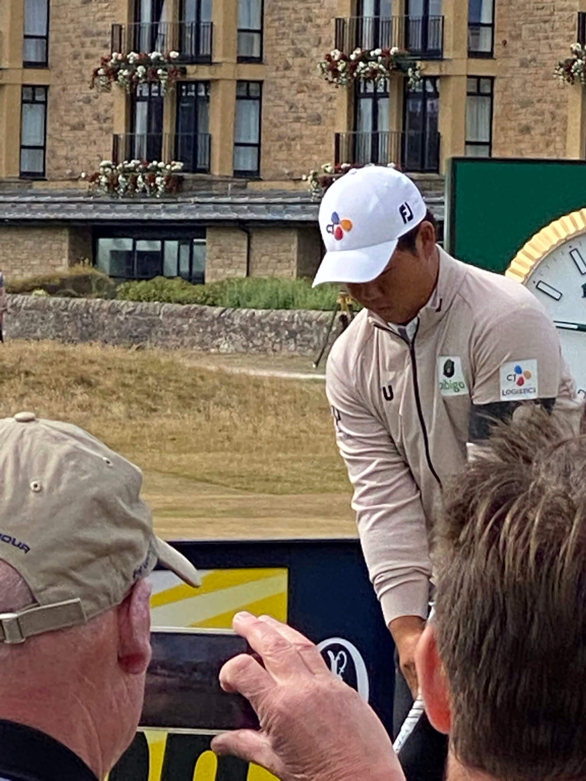 Dann orientieren wir uns auf dem Platz. Es gibt Anzeigeboards, die zeigen wer gerade auf welcher Bahn trainiert. Gleich zu Beginn finden wir Tiger. Da sind natürlich die größten Menschenmassen. Im Laufe des Tages lassen wir uns treiben, gehen mal zu dieser Bahn, mal zu jener, mal zum Putting Green und zur Driving Range, schließlich umrunden wir auch einmal den ganzen Old Course. Schließlich haben wir fast jeden interessanten Spieler mindestens einmal gesehen.