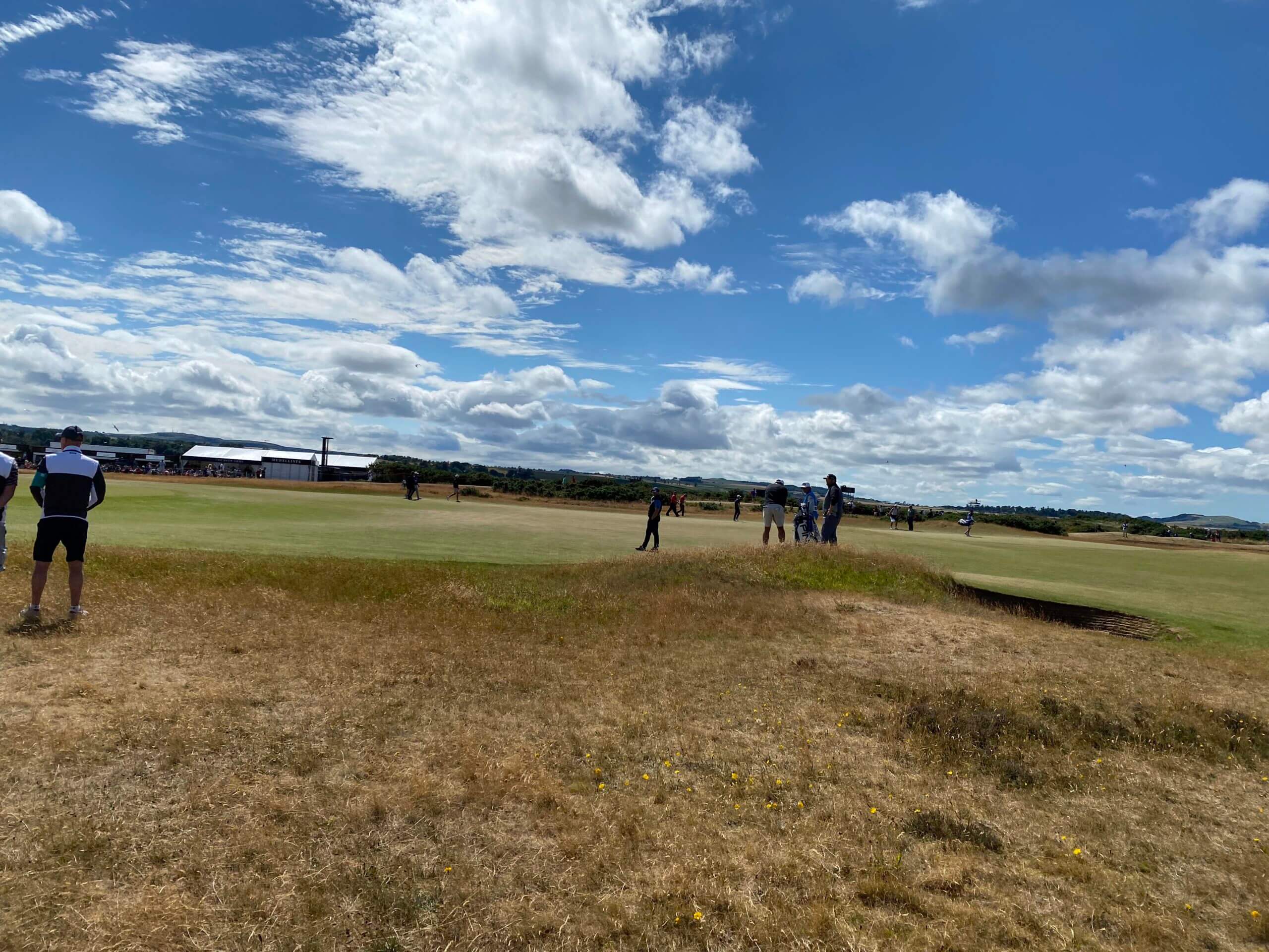 Heute ist es soweit: wir fahren nach St Andrews, denn wir haben Tickets für einen Trainingstag bei The Open Championships. Die Fahrt dauert eine gute Stunde. Ein paar Meilen vor dem Ortseingang muss man das Auto auf einem Park and Ride Parkplatz abstellen und wird von dort mit Bussen auf das Gelände gebracht. Es ist absolut gigantisch sowohl was die Abmessungen als auch die Organisation angeht.