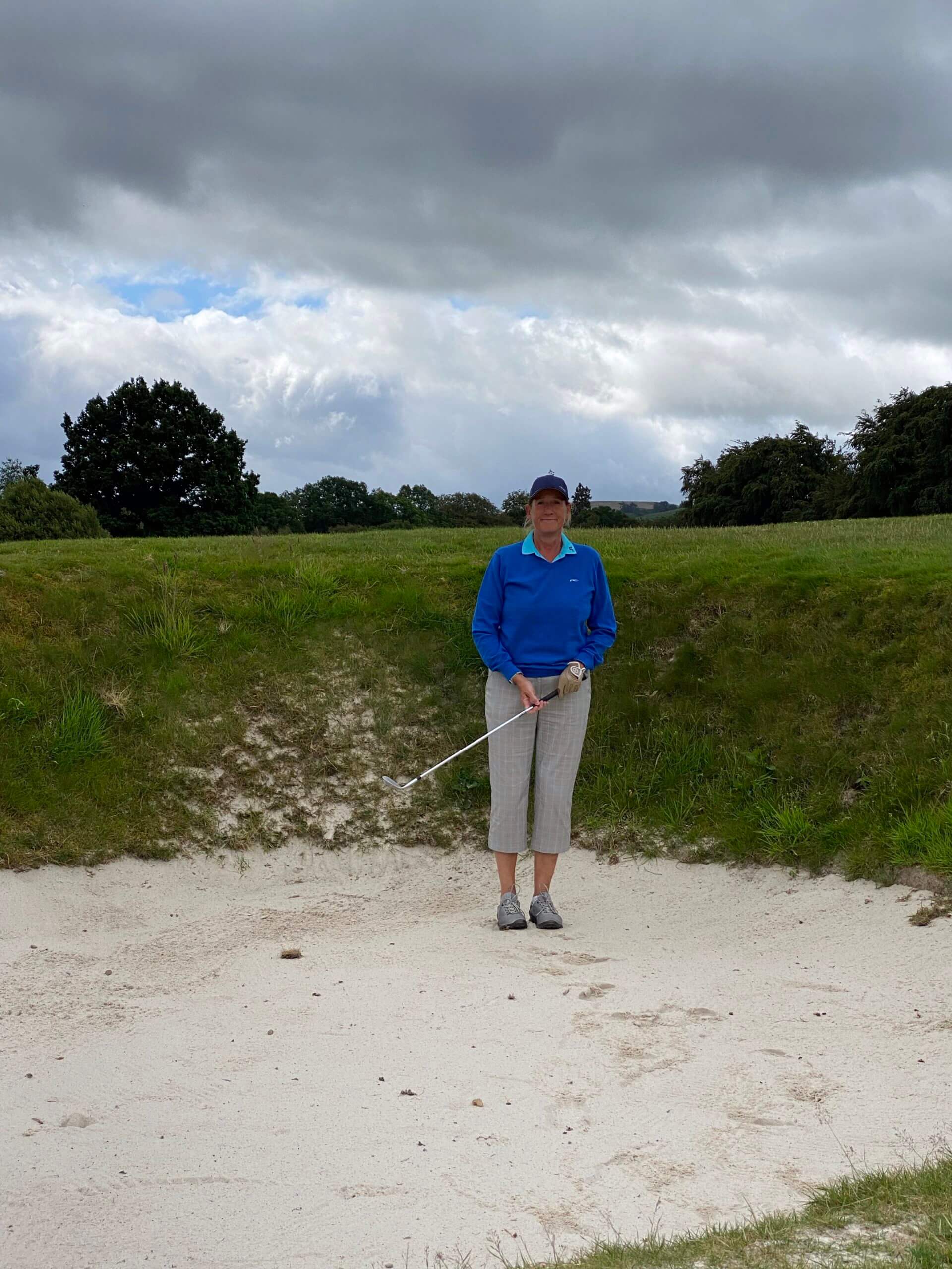 Wir orientieren uns zunächst auf dem Platz, folgenden dem einen oder anderen Spieler und kommen so auf dem ganzen Platz herum. Das Rough ist überall breit und wahnsinnig hoch. Wie man da als normaler Mensch überhaupt jemals das Fairway treffen will, ist mir ein Rätsel. Die Bunker sind zahlreich, eher klein, aber dafür fast mannshoch. Der Xander sieht gar nicht über den Rand.