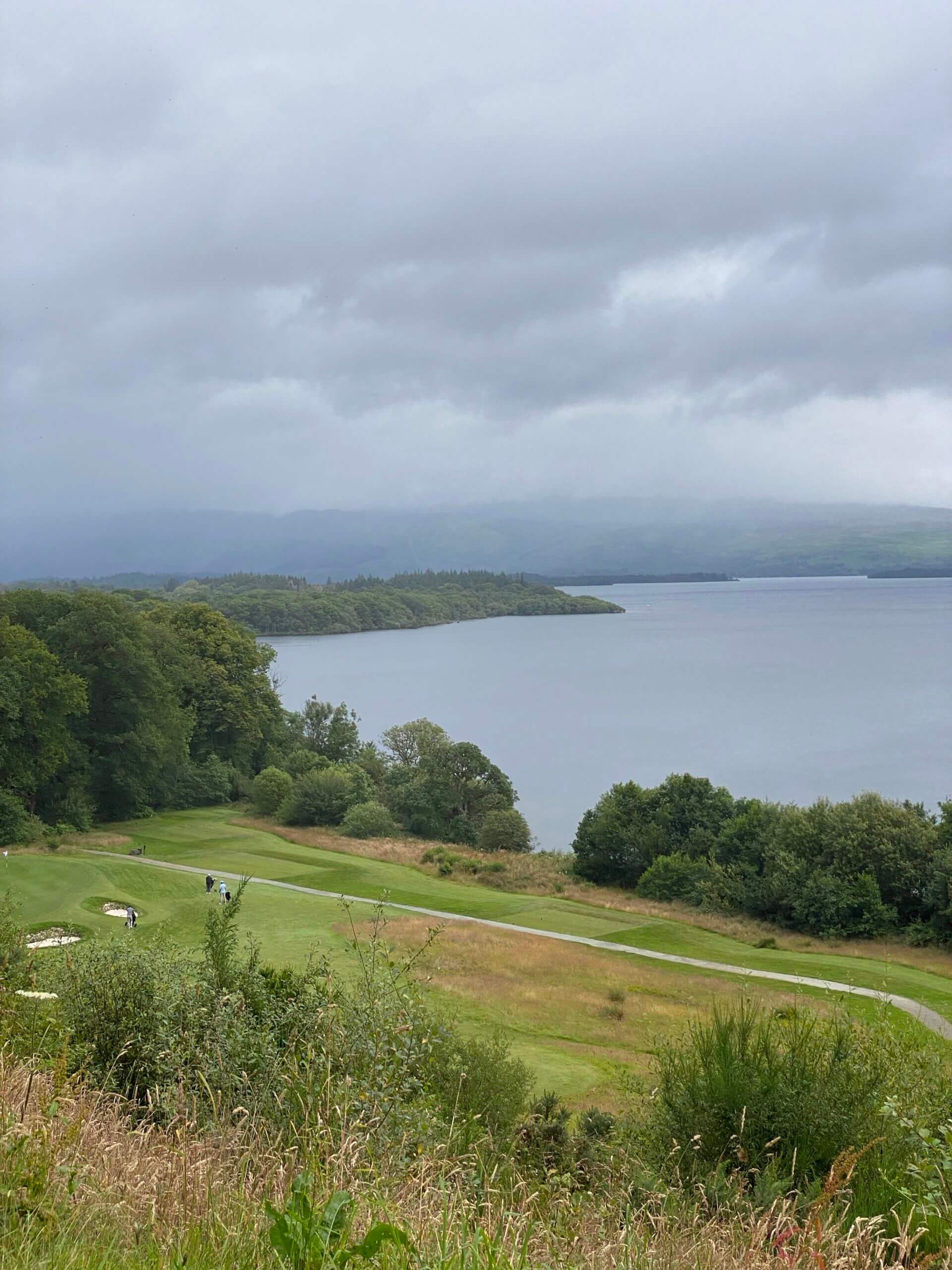 Heute spielen wir The Carrick Course am Loch Lomond. Ein wunderschöner Platz, der immer wieder herrliche Ausblicke auf den See bietet. Wie immer frage ich nach einem Logoball. Die gibt es nur in Dreiersleeves. Das möchte ich erst nach der Runde kaufen. 5 Minuten später spricht mich auf dem Parkplatz ein Mann an und schenkt mir einen Logoball, den er auf dem Platz gefunden hat. Die Leute sind wirklich sagenhaft freundlich.