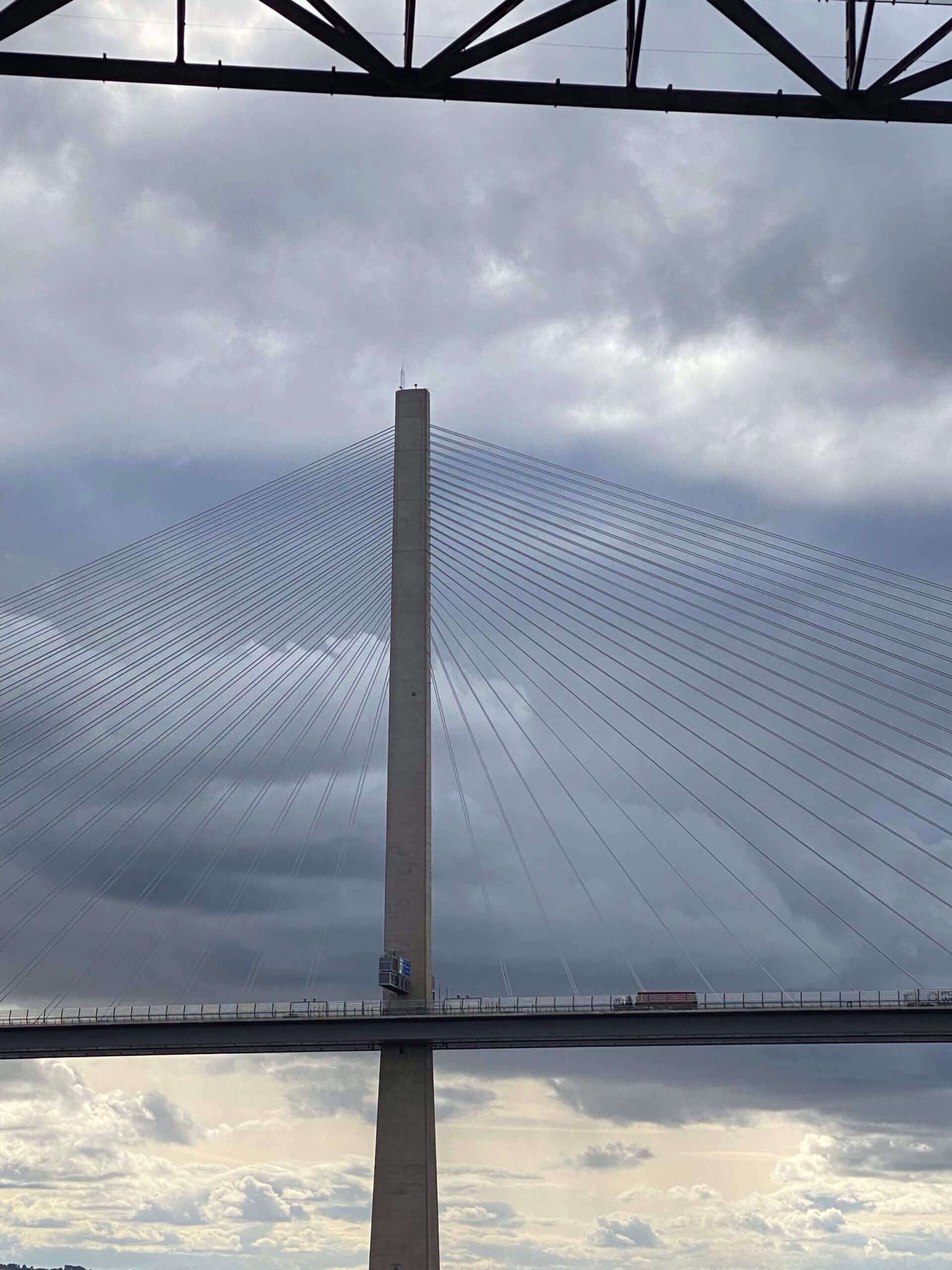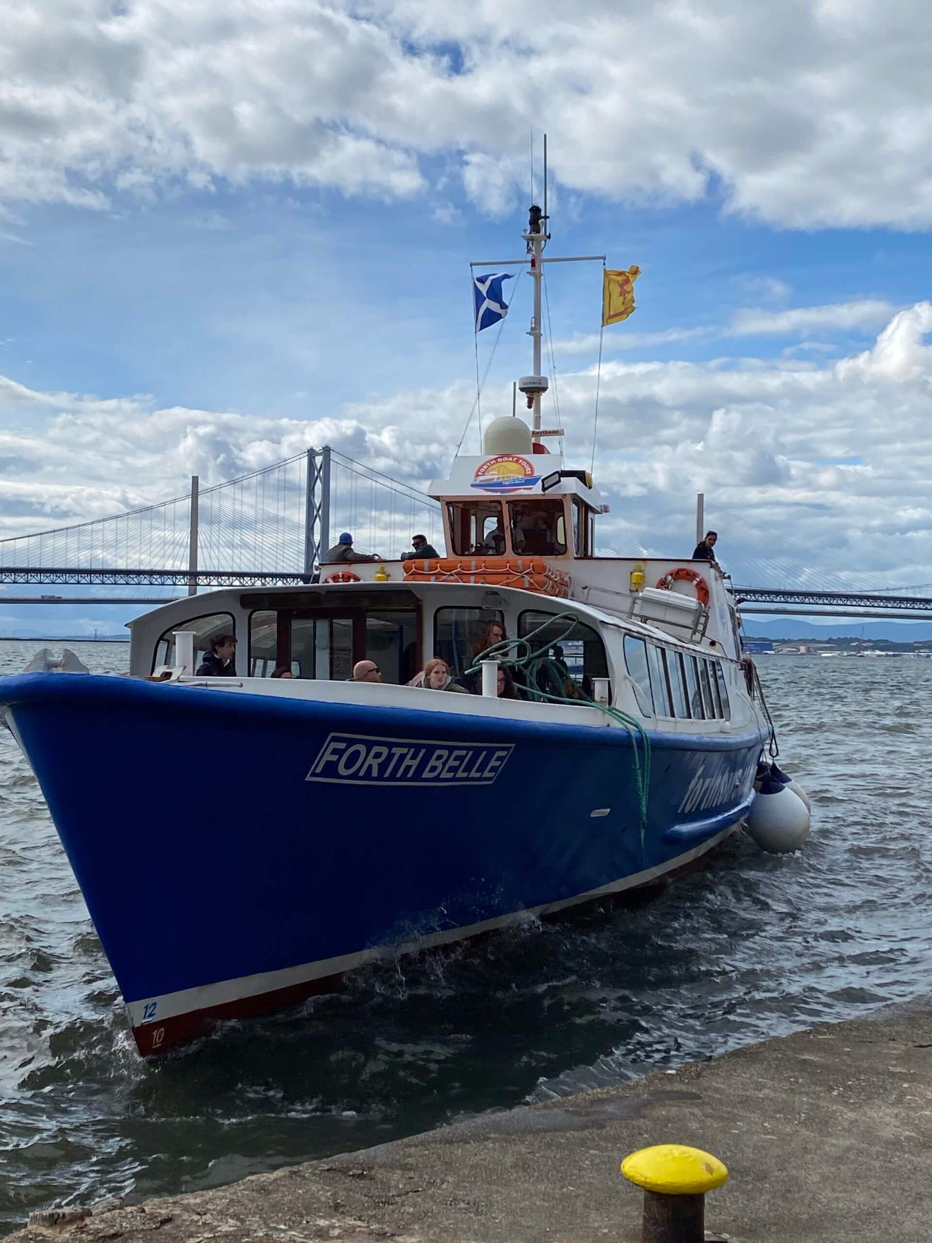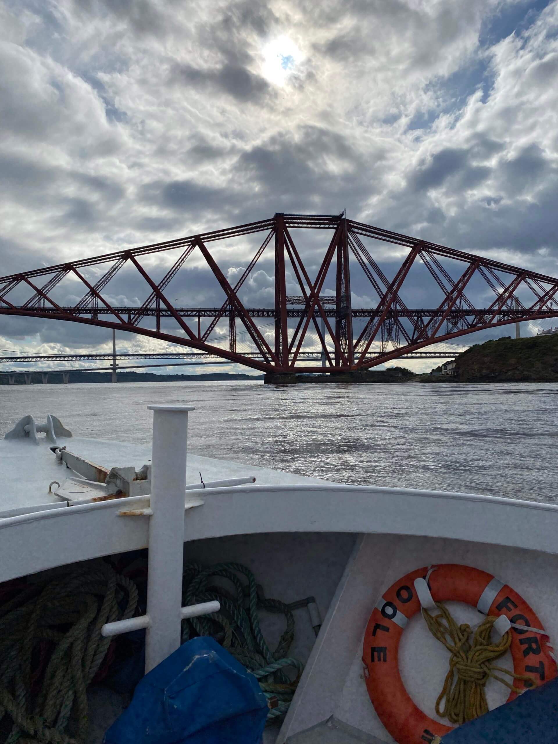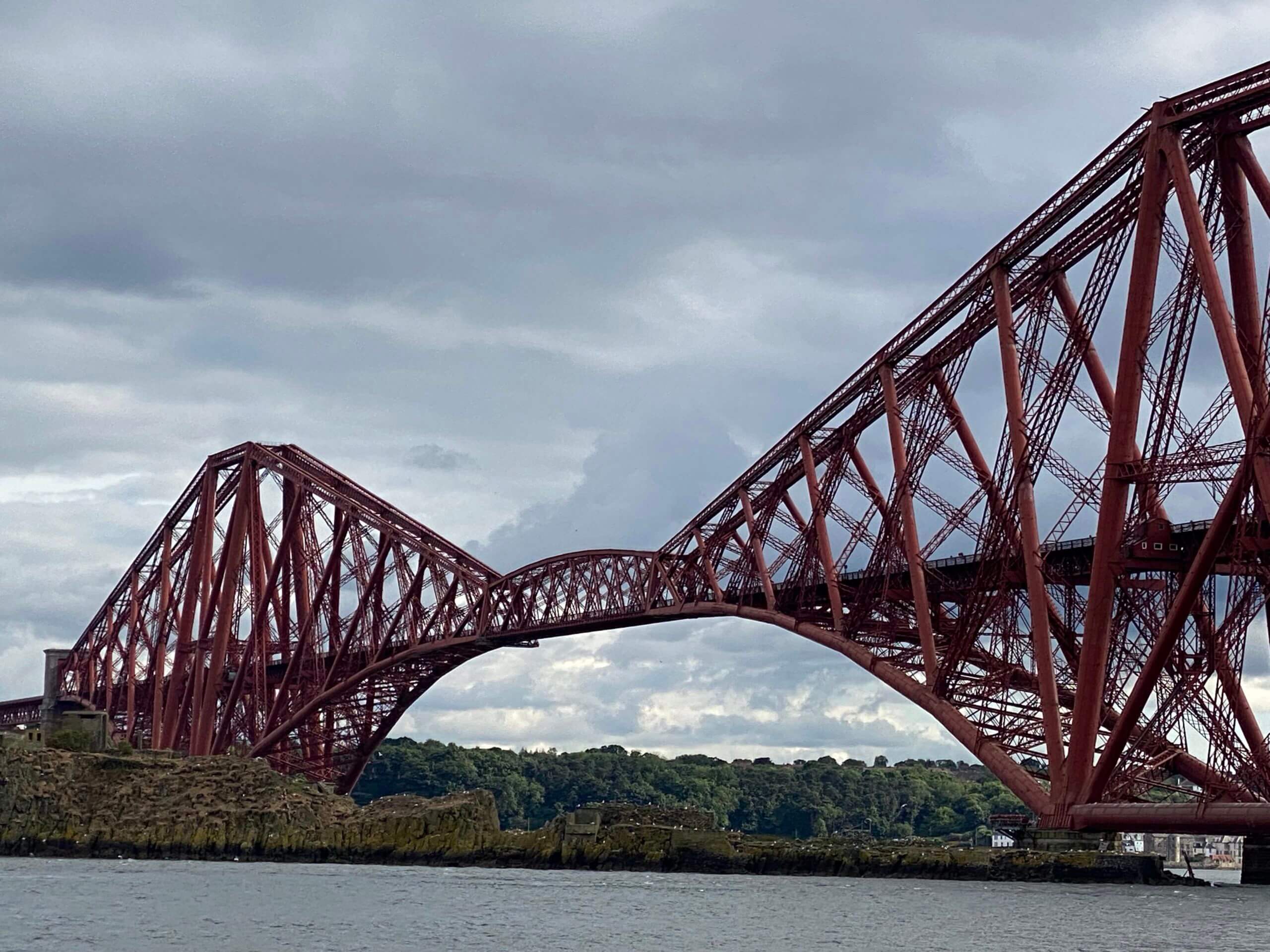Nach der Runde gibt es einen schnellen Drink und eine halbe Stunde The Open im Fernsehen. Dann geht es weiter nach South Queensferry. Von dort aus startet unsere Bootstour auf dem Firth of Forth. Es gibt viele interessante Infos zur schottischen Geschichte, zu den drei Brücken über den Firth of Forth – Forth Bridge, Forth Road Bridge und Queensferry Crossing und zur jüngeren Geschichte. Sogar Seehunde sehen wir, die sich auf einer schwimmenden Insel sonnen. Ja, es ist wieder meist sonnig.
