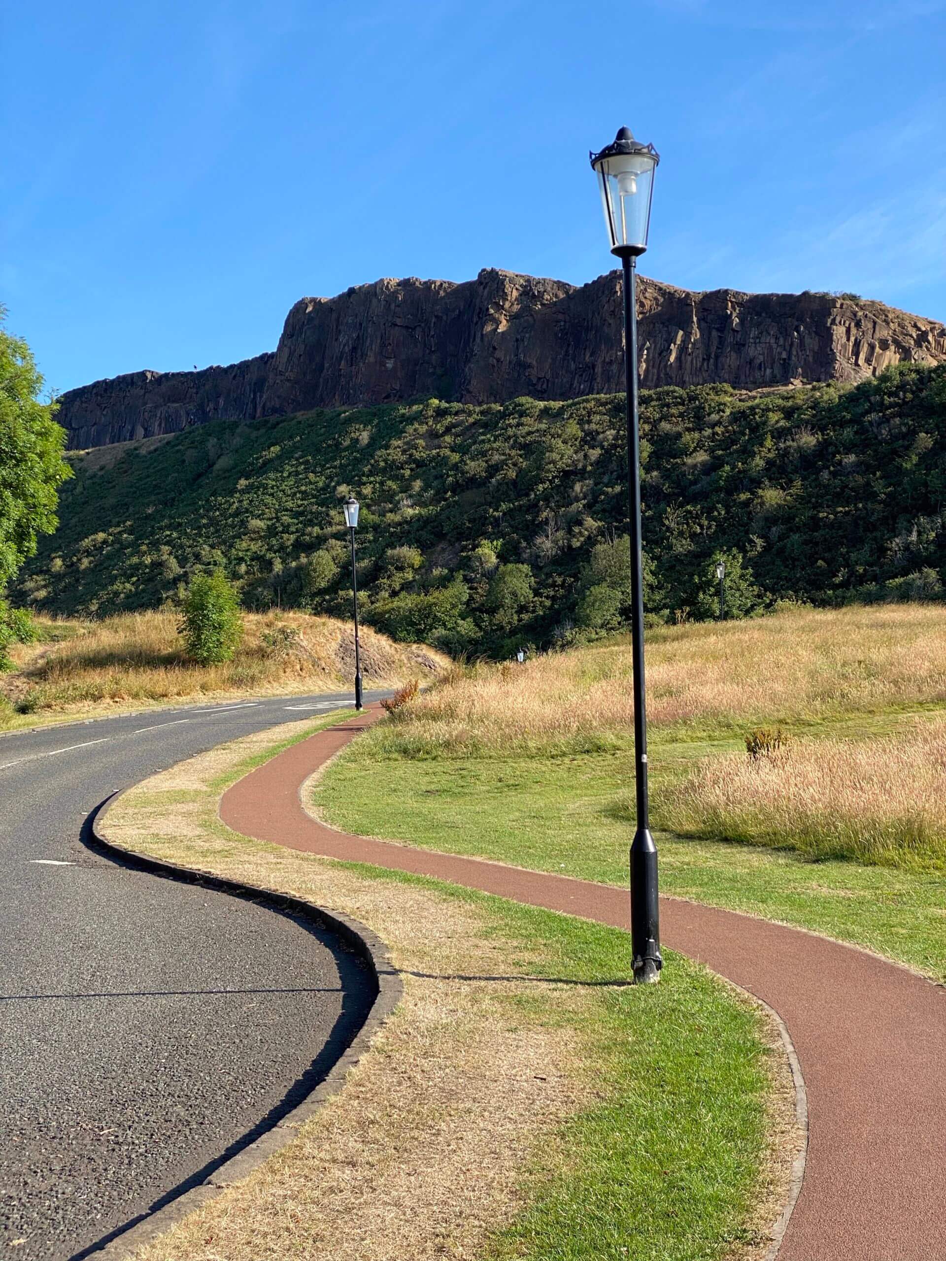 Und später geht es noch in den Holyrood Park. Den Hausberg erklimmen wir allerdings nicht mehr bis zum Gipfel.