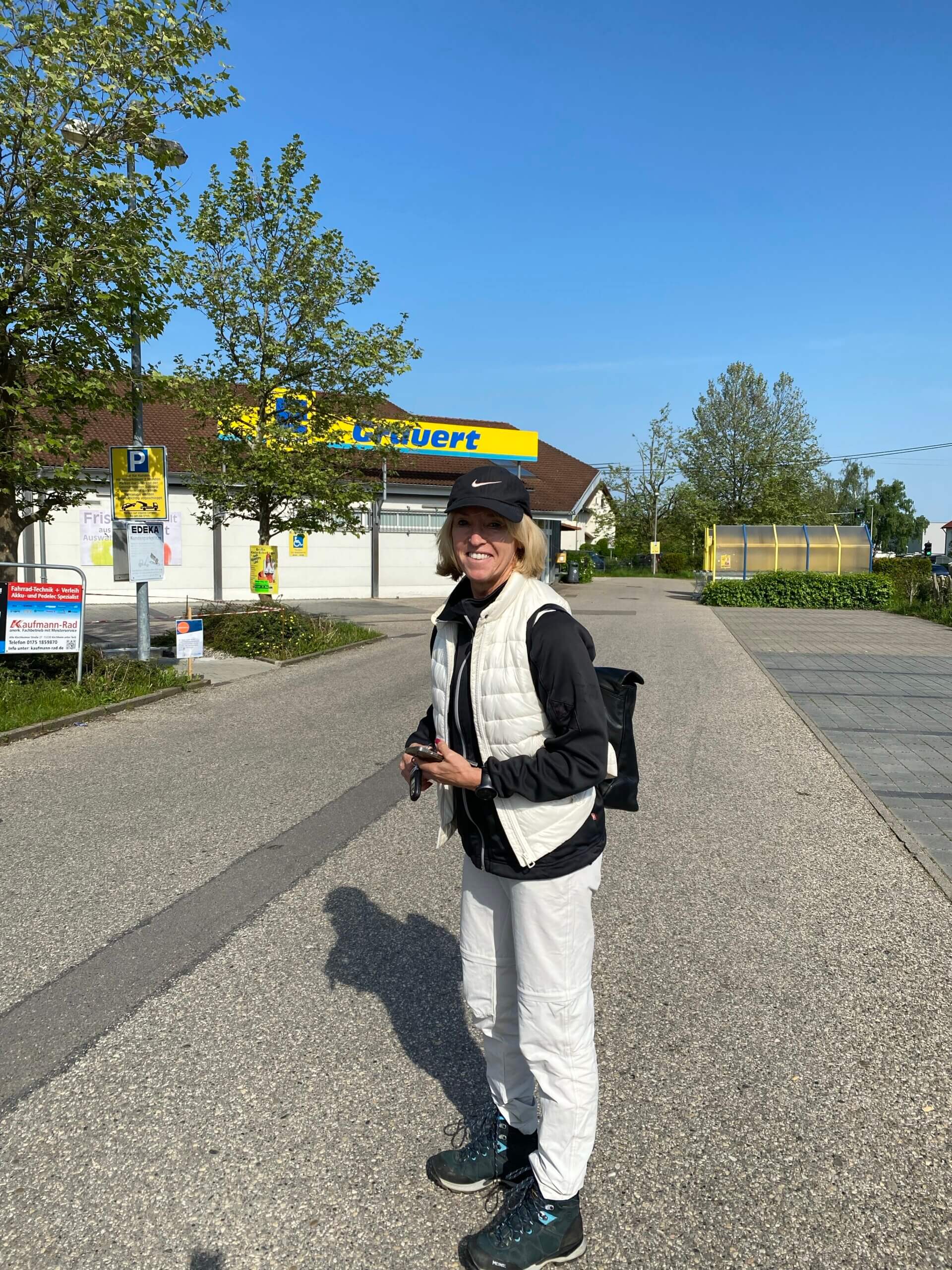 Coni und ich gehen Probewandern. Pünktlich um 9:00 Uhr machen wir uns auf Richtung Kirchheim Nabern. Wir stellen das Auto auf dem Edeka Parkplatz ab und finden den Einstieg in die geplante Tour nicht, die Coni über Komoot herausgesucht hat.