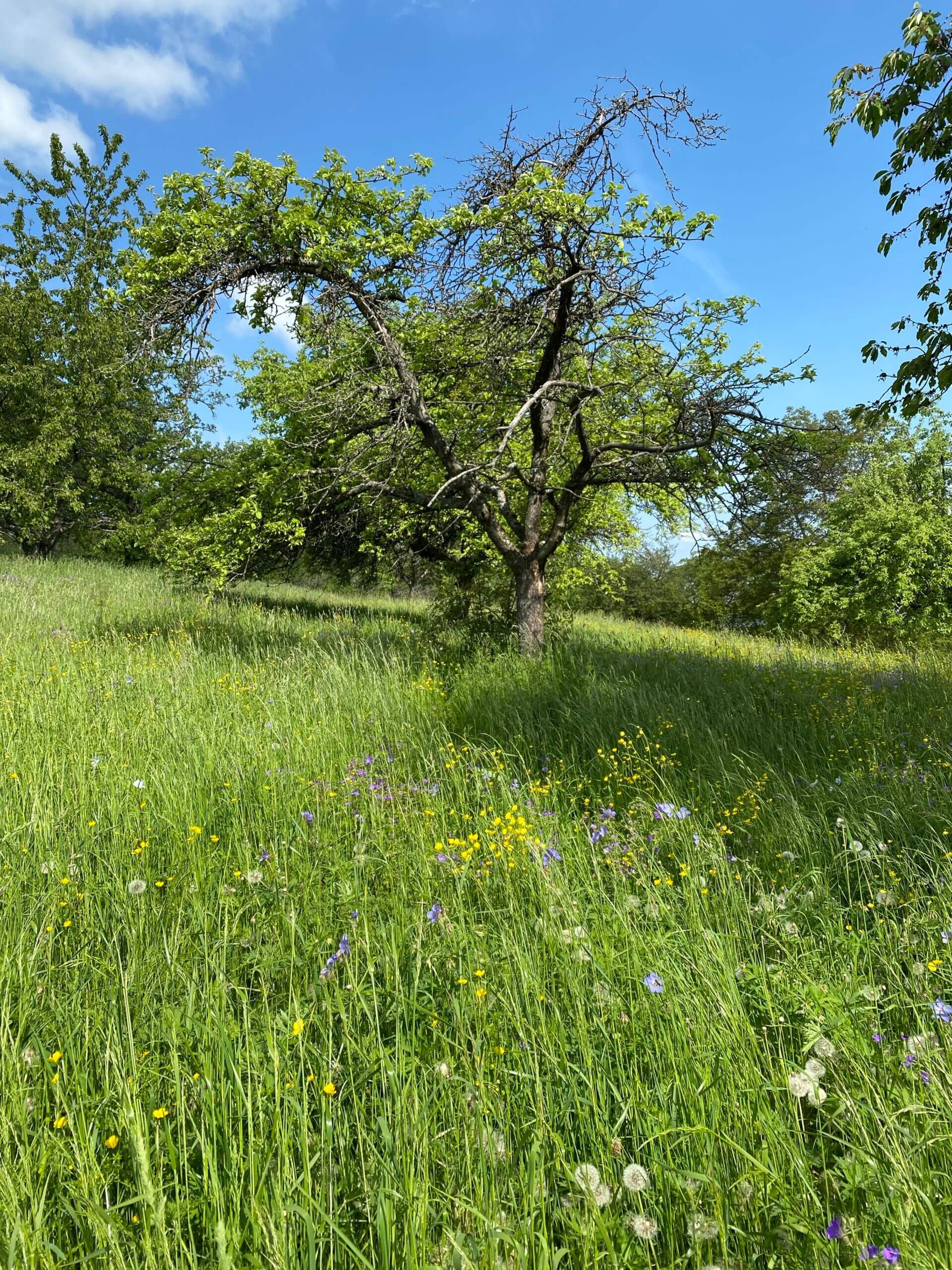 Auf dem Rückweg lassen wir dann die offiziellen Wege komplett hinter uns und gehen die Direttissima bergab. Zeitweise durch hüfthohes Gras. Ich finde das schon außerordentlich eklig, aber ich beherrsche mich.