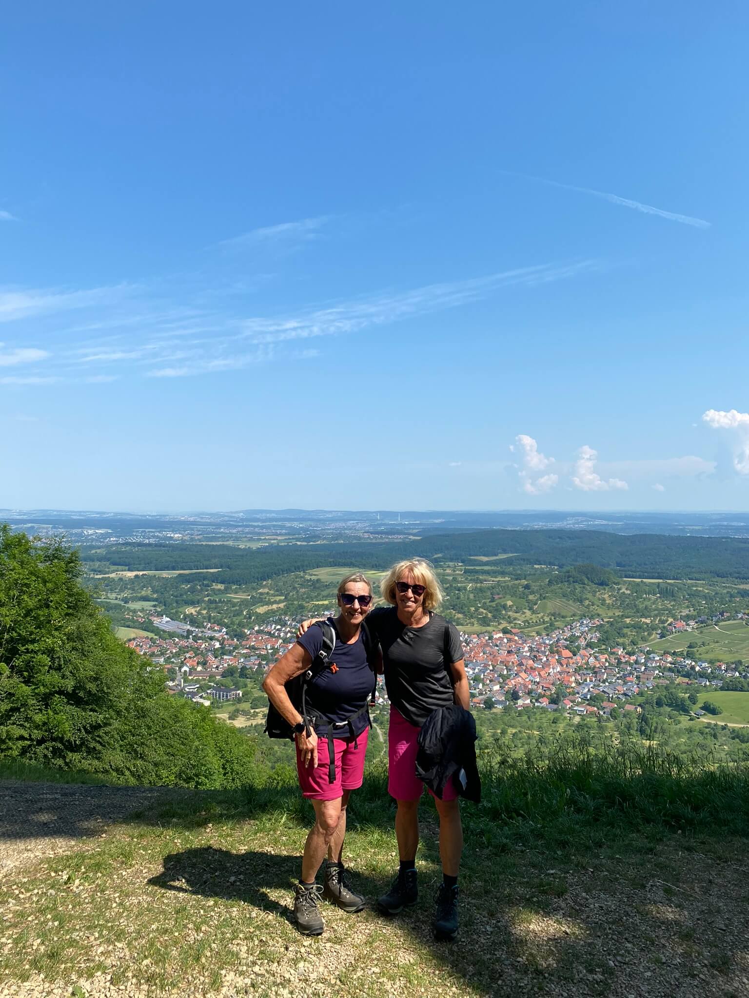 Unsere letzte Übungswanderung führt wie immer an die Teck. Es ist kochend heiß und zum Glück findet Coni unseren Weg vom letzten Mal wieder, der ein gutes Stück im Schatten verläuft.