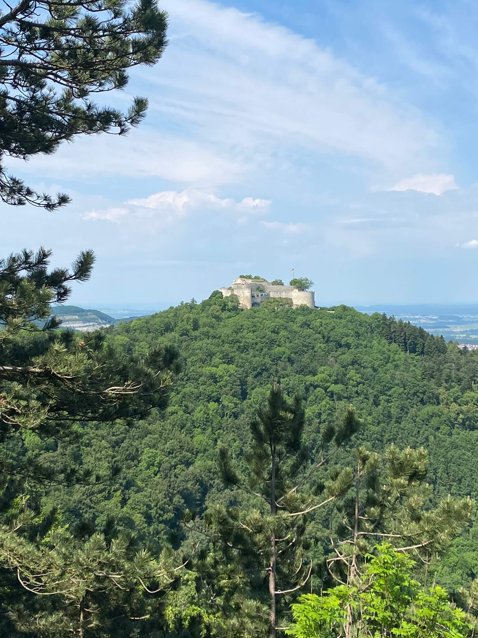 Dadurch lassen wir uns natürlich nicht entmutigen. Wir starten querfeldein in Richtung einer Burg, die auf einem Berg gelegen ist und vermutlich die Teck ist.