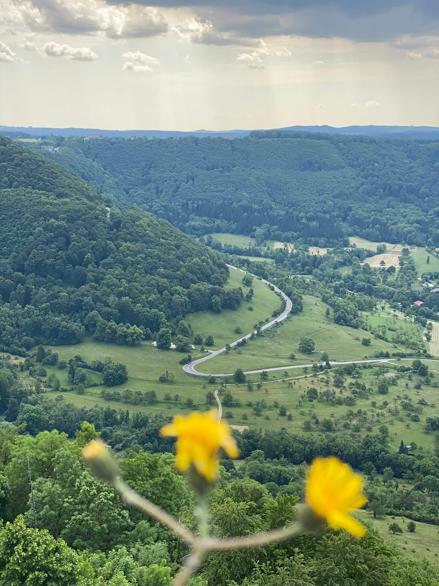 Als wir auf dem Hohenneuffen Rast machen, beginnt es zu donnern. Deshalb kürzen wir unsere Tour etwas ab und eilen zum Auto. In dem Moment, wo wir drin sitzen, beginnt es zu regnen – Glück gehabt!