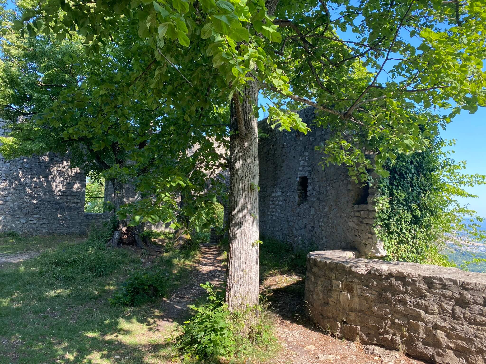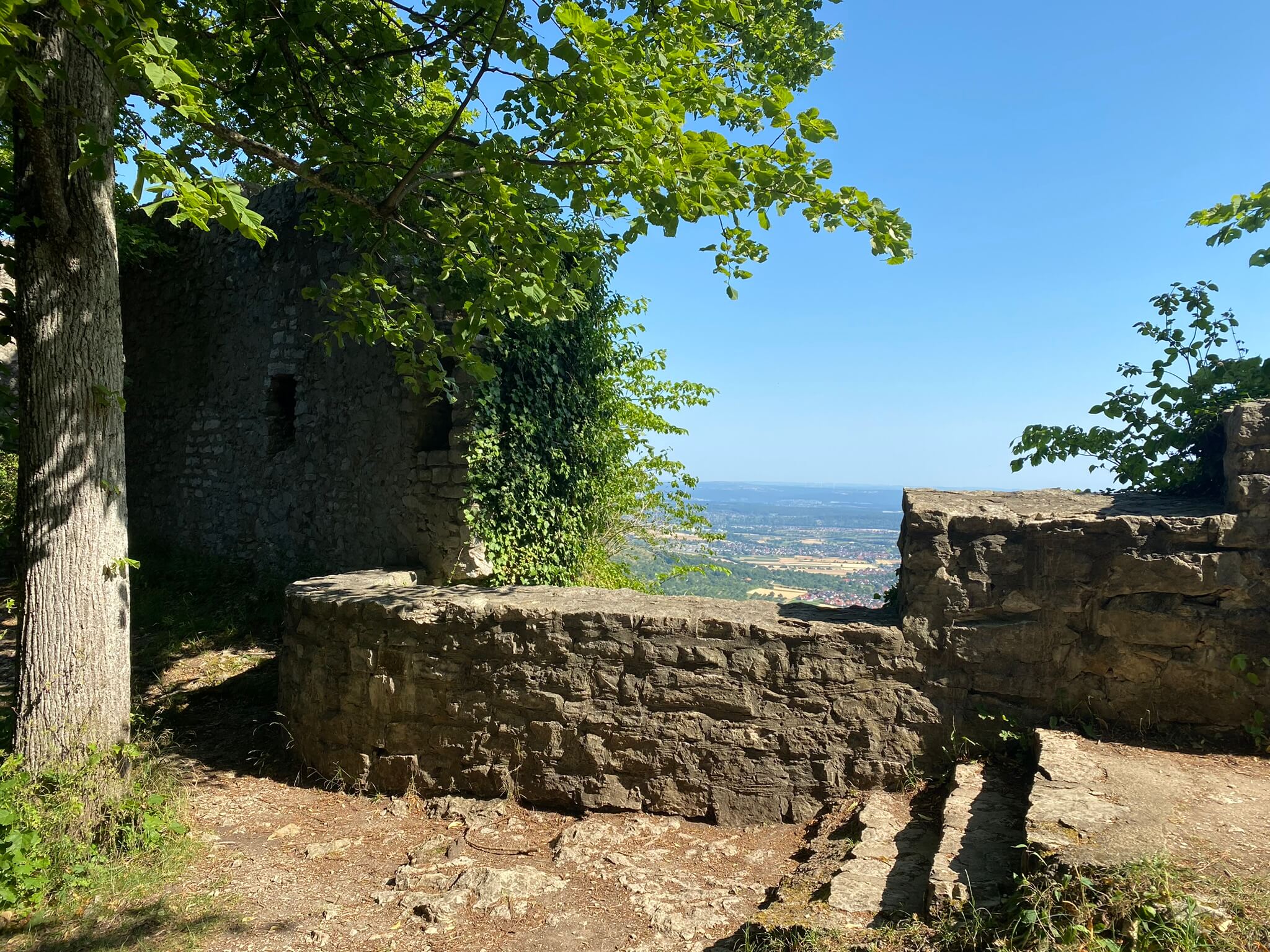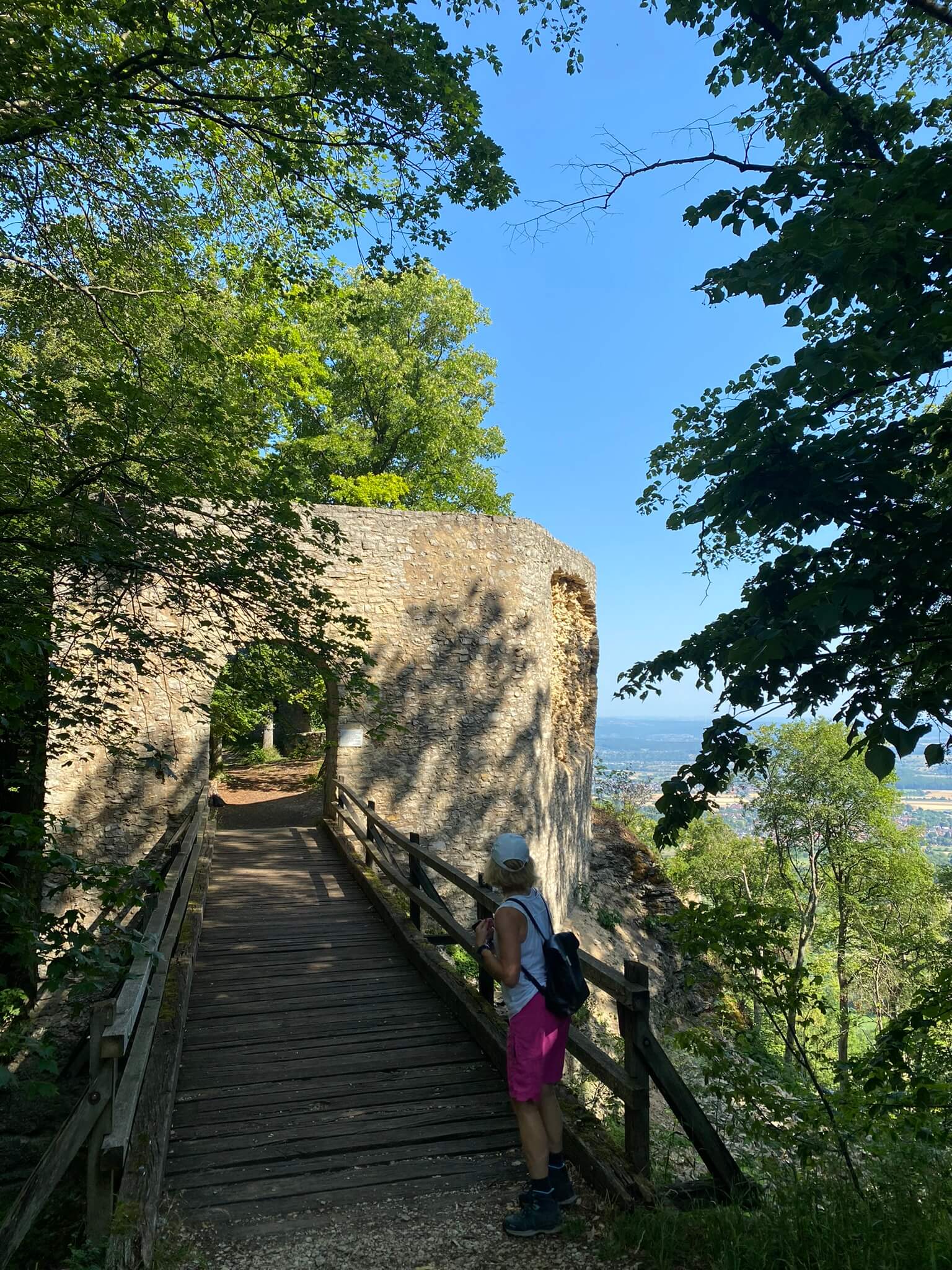Nach einem kurzen, knackigen Aufstieg erreichen wir die Burg Teck und nehmen unser wohlverdientes Vesper ein. Coni macht noch ihr Mittagsschläfchen und dann steigen wir wieder ab.