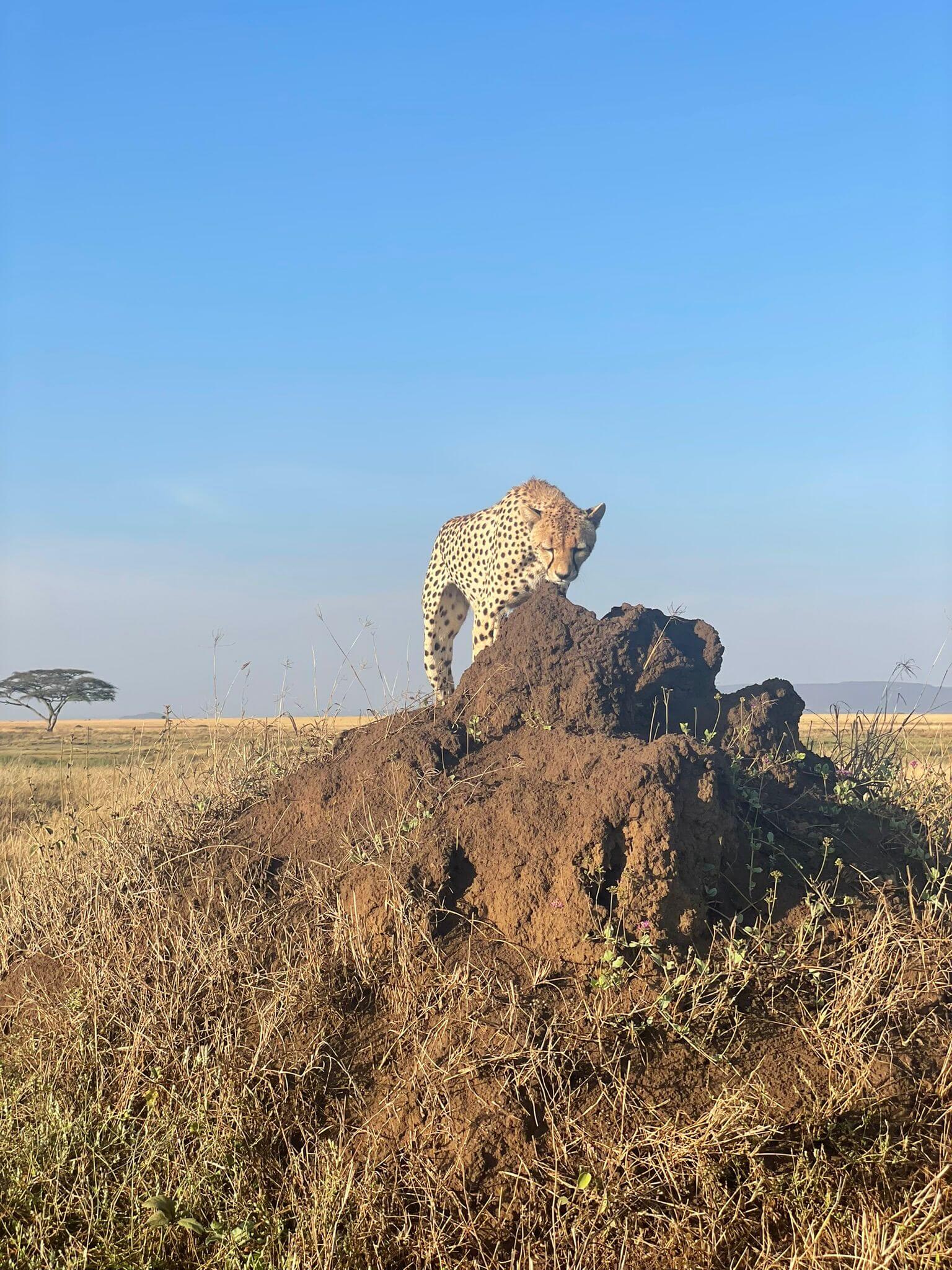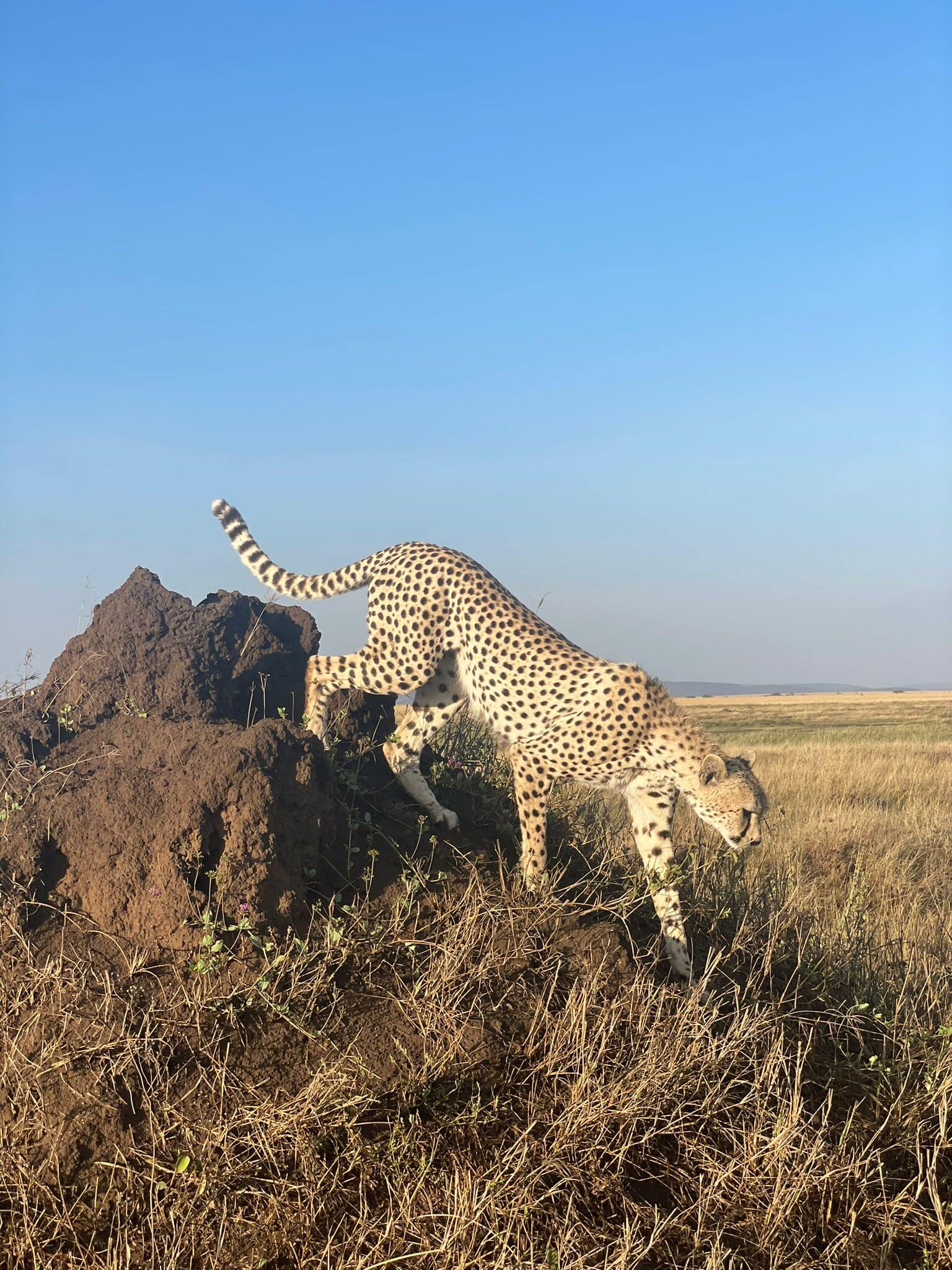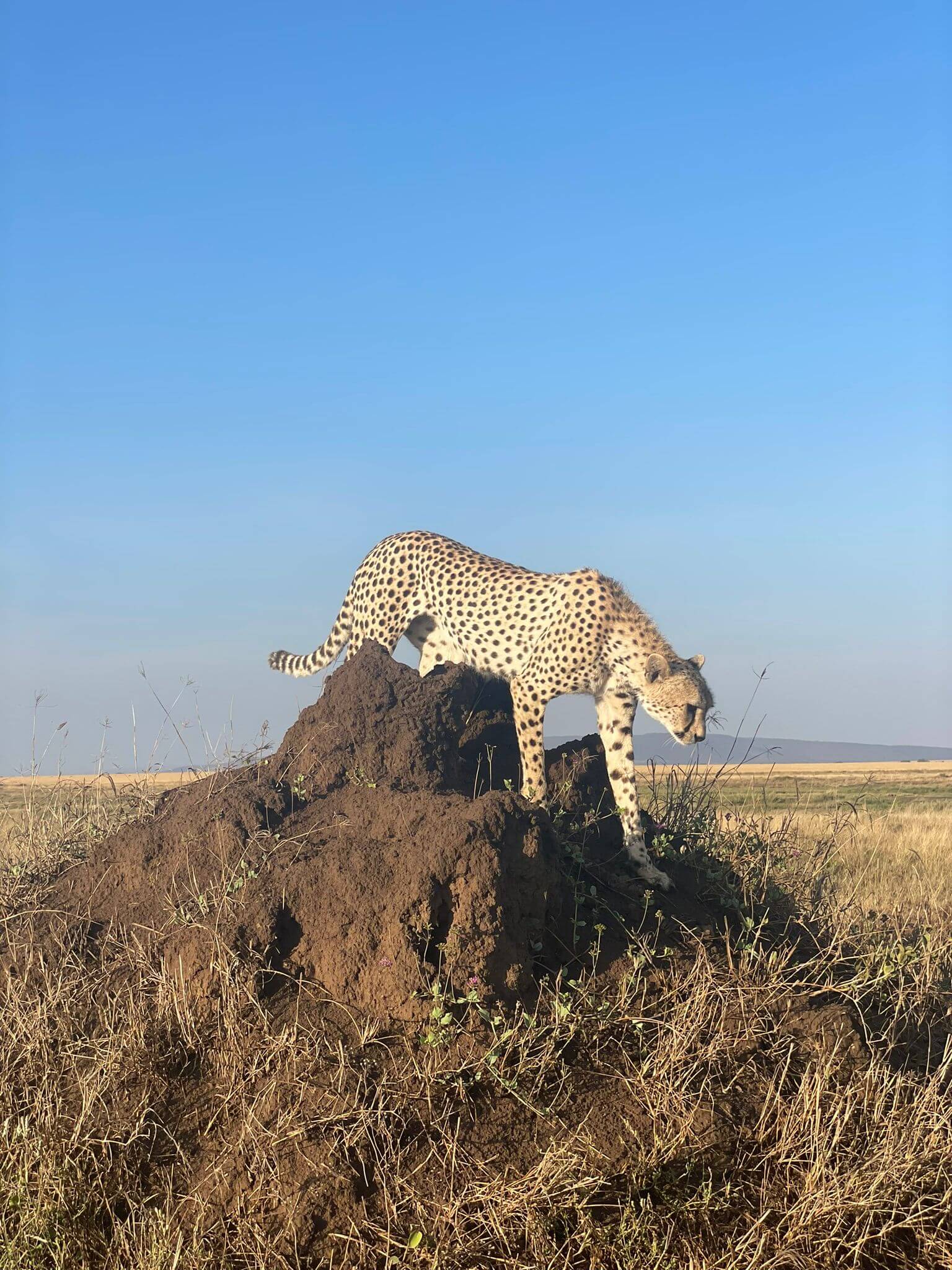 Heute sind wir schon sehr früh unterwegs und wir sehen tatsächlich direkt am Straßenrand einen Geparden sitzen. Coni gelingen ein paar tolle Fotos.