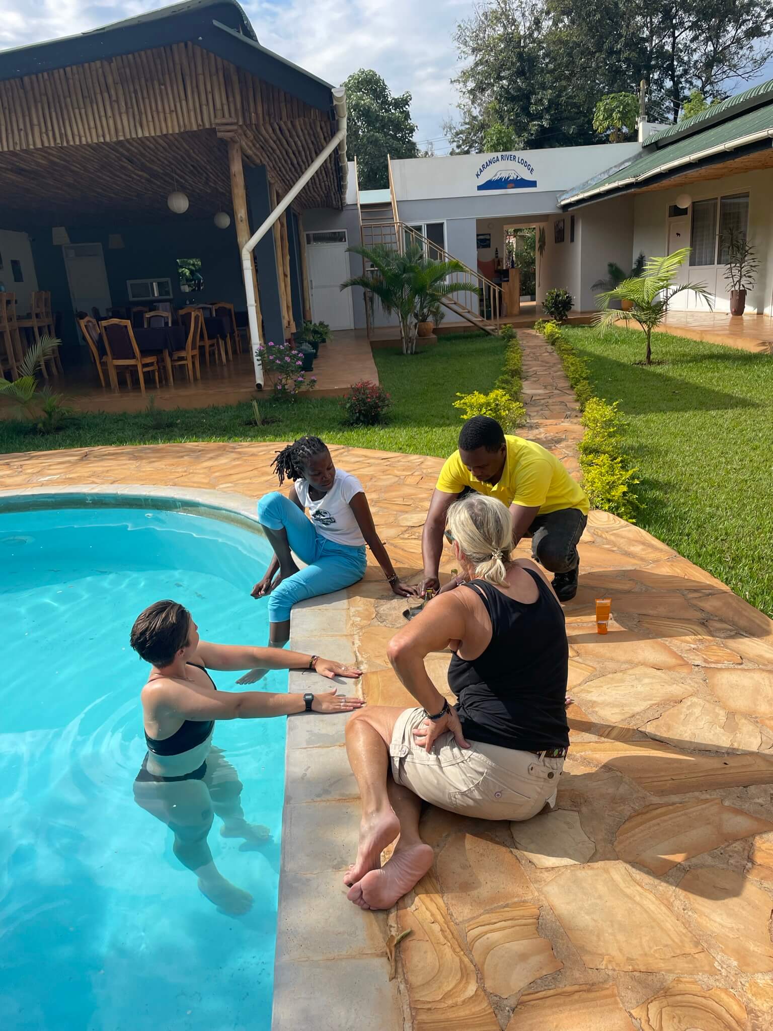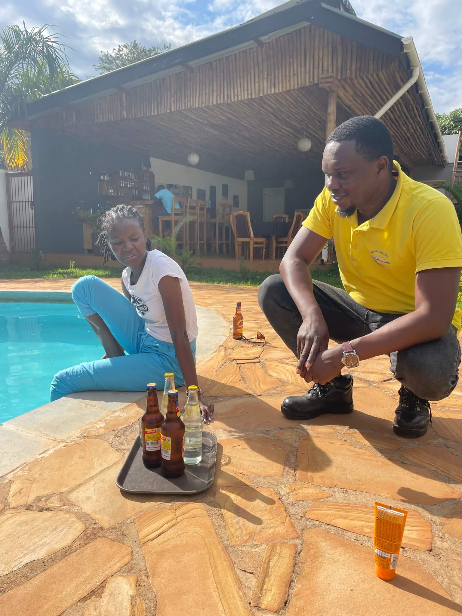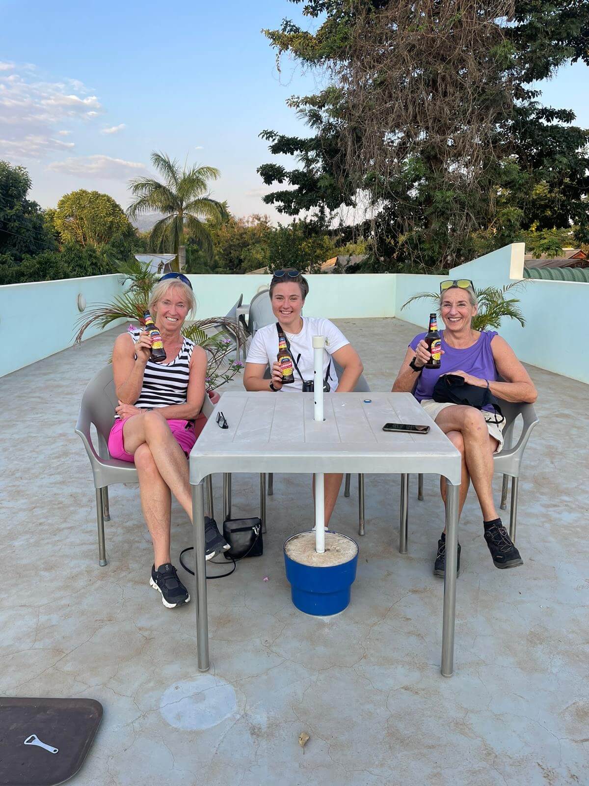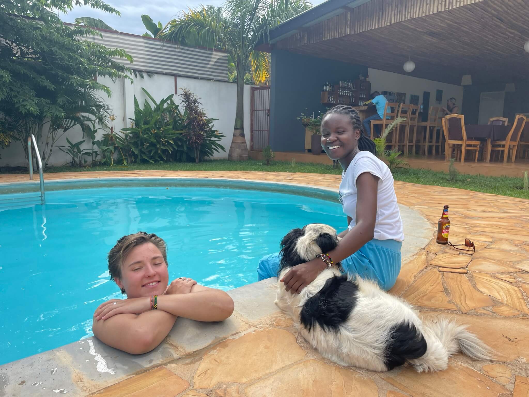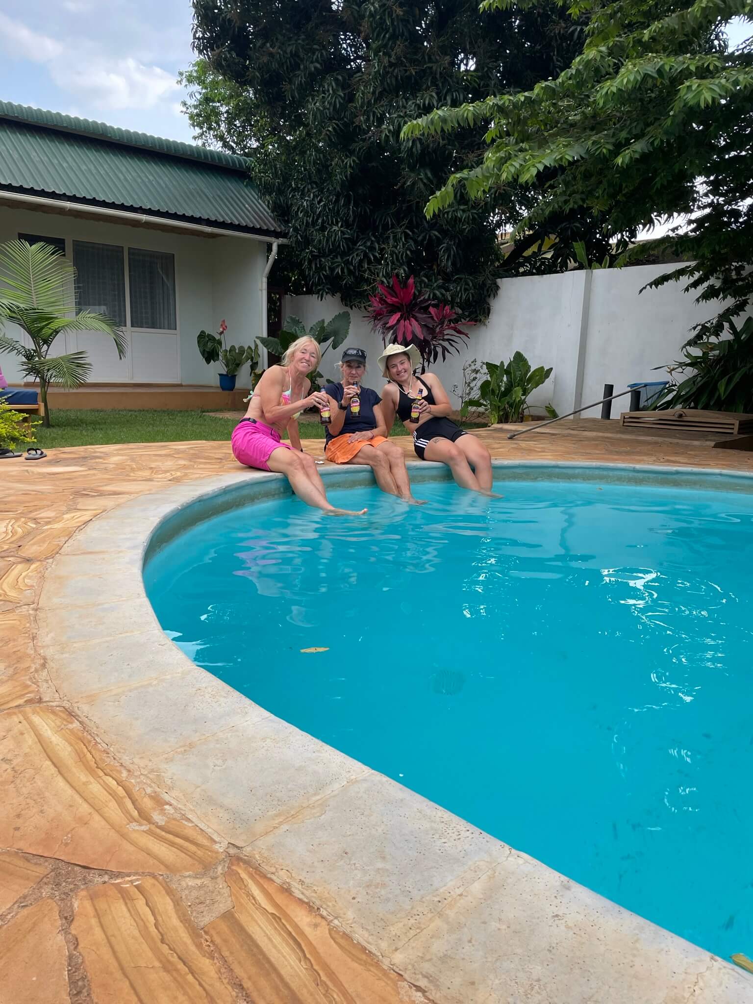 Die Freude über das Wiedersehen mit Agnes, David und den anderen ist groß, und wir hängen den Nachmittag mit Agnes, Otto, Kilimanjaro Bier und Gin Tonic am Pool ab.