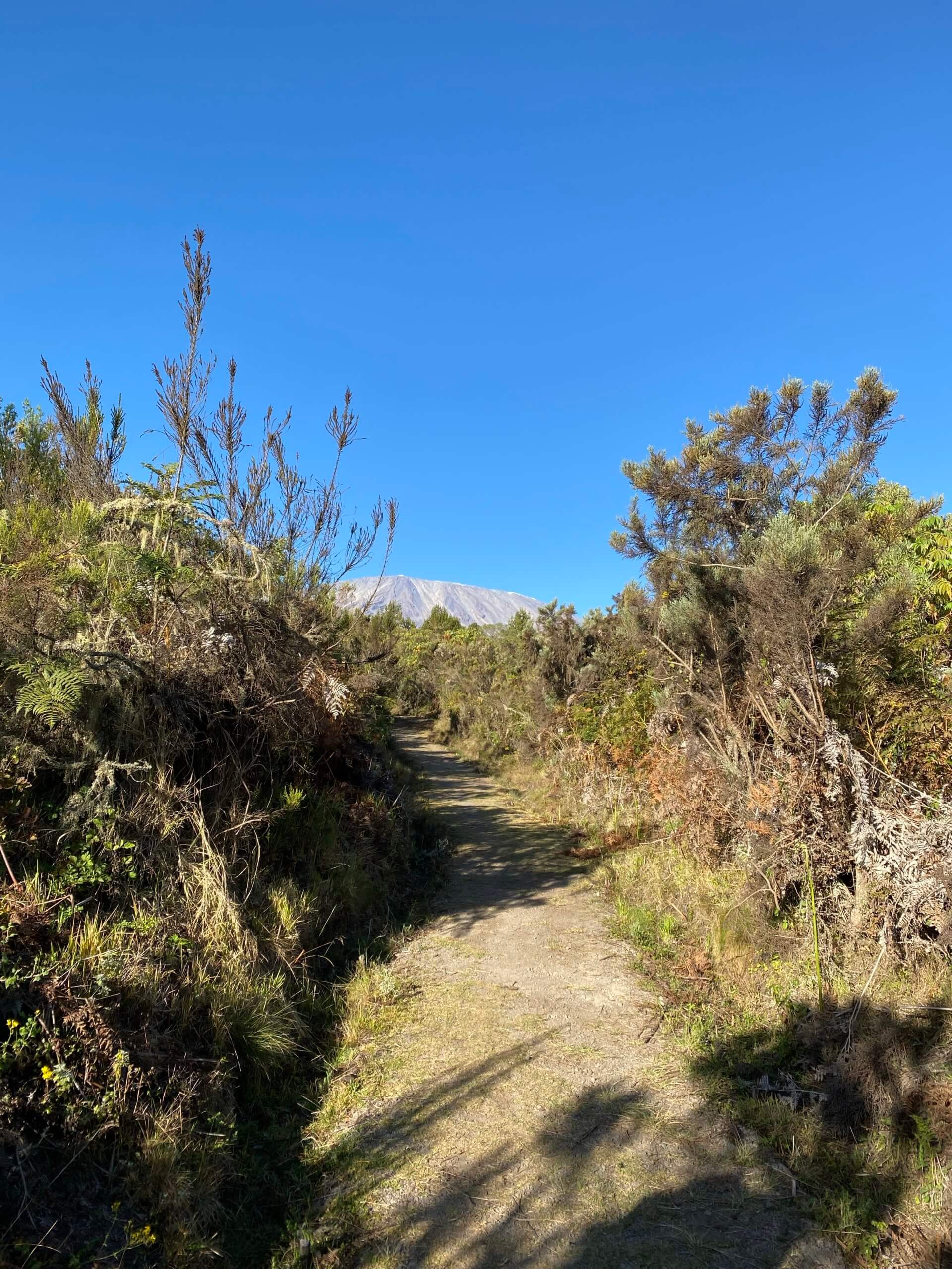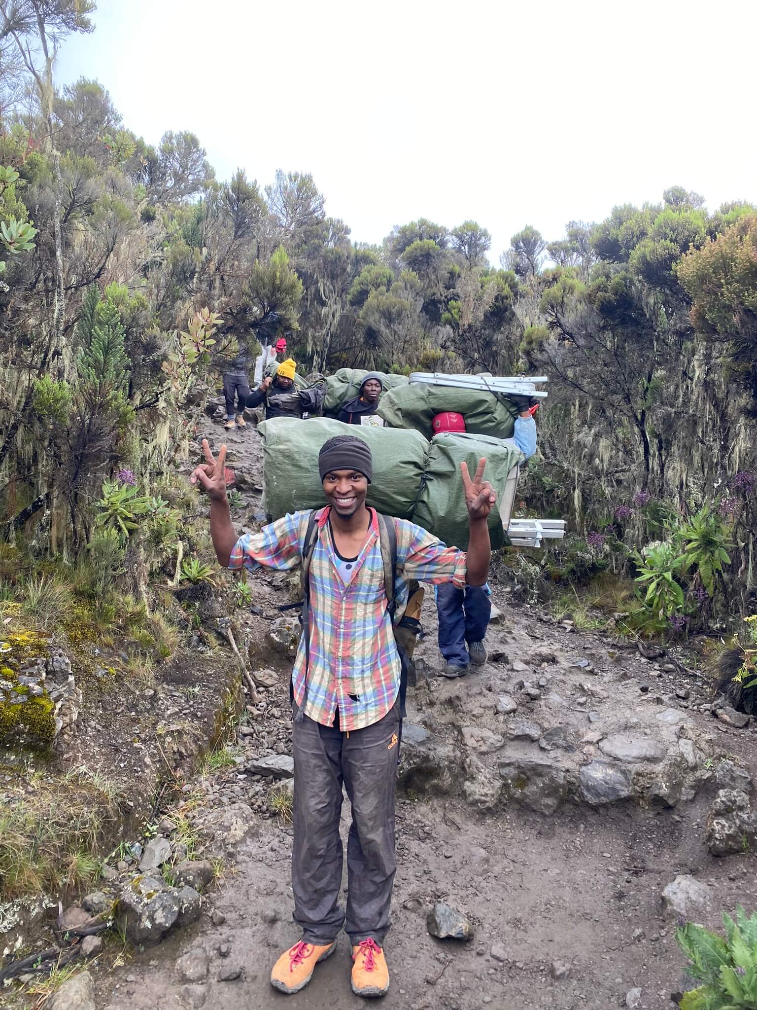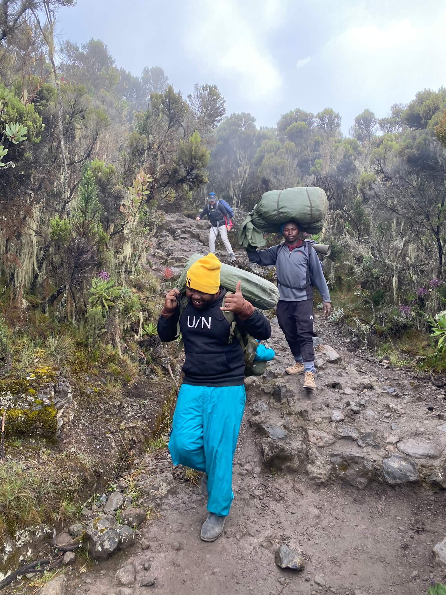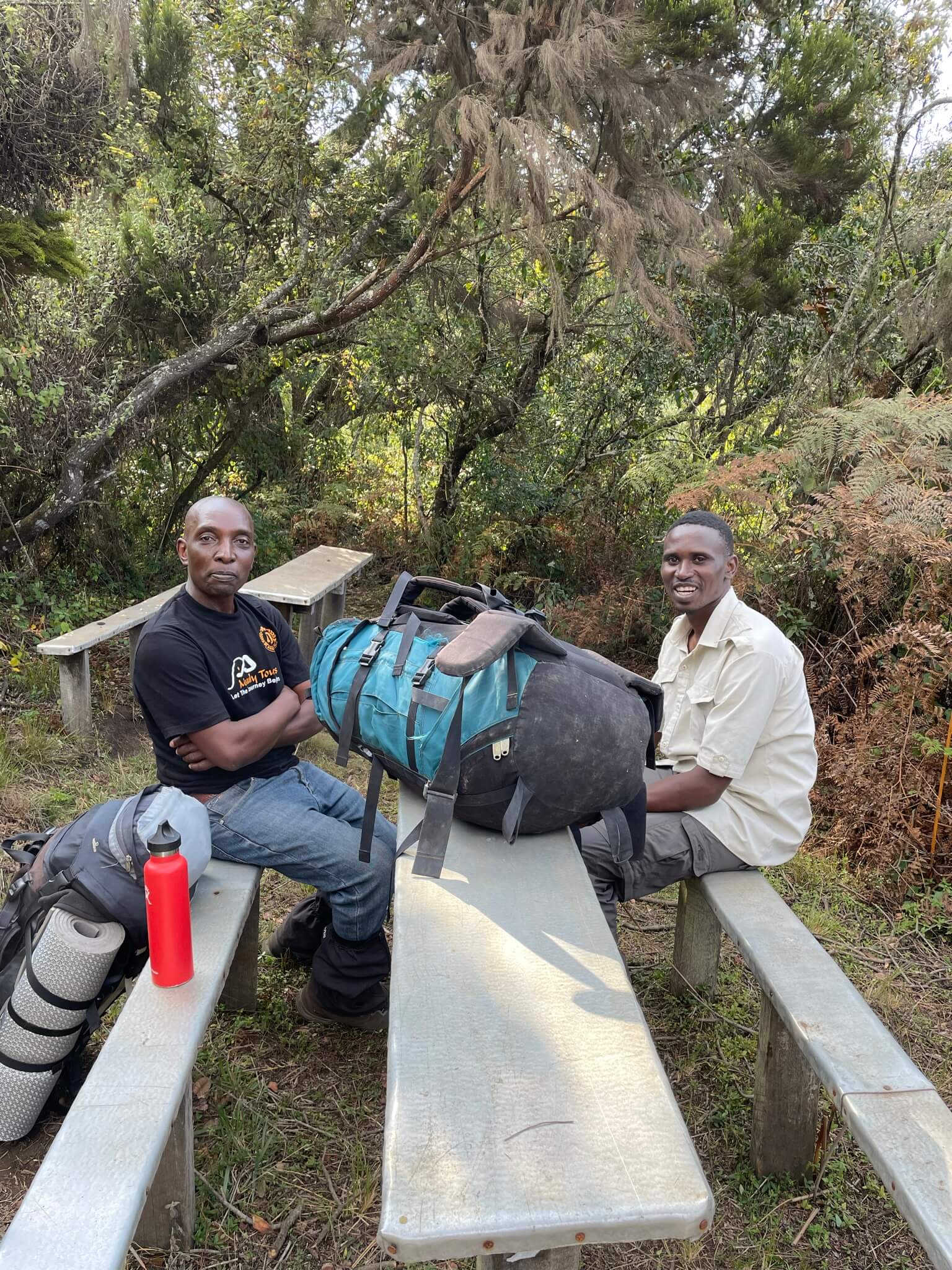 Erst gegen 15:00 Uhr machen wir uns auf den Weg. Die Träger, der Koch, und der Kellner sind schon vorausgegangen. Die heutige Etappe ist sehr kurz und dauert nur ungefähr zwei Stunden. Und immer gilt pole pole – langsam gehen.