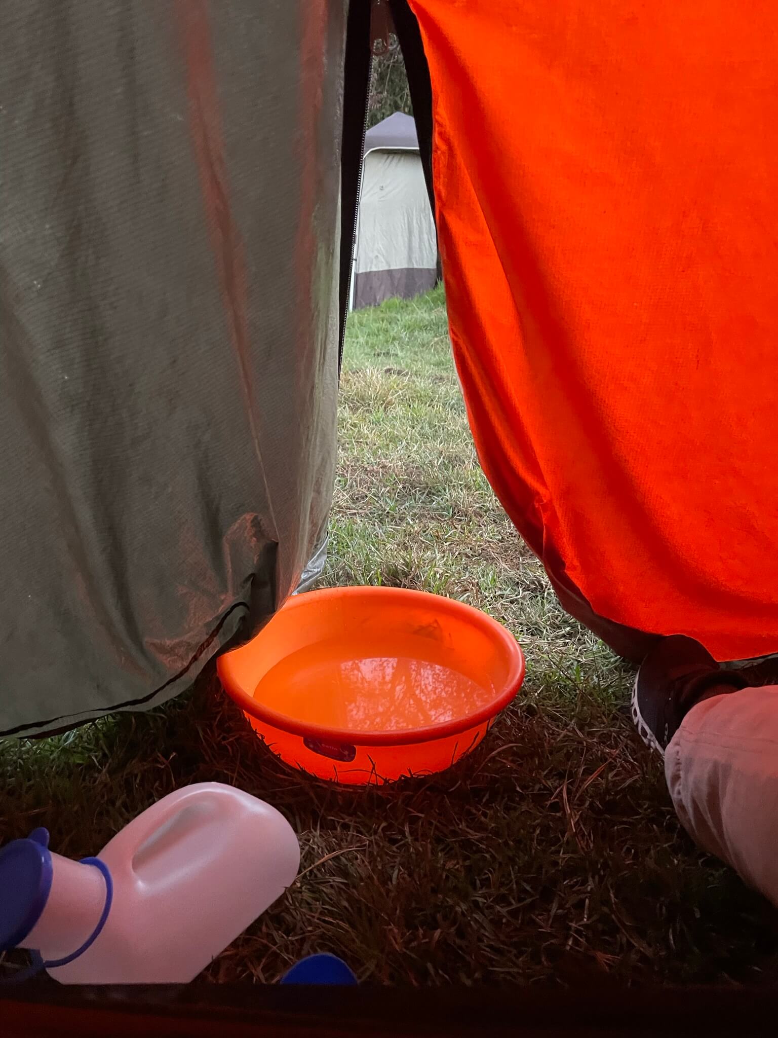 Ich beziehe mein Domizil für die nächsten fünf Tage. Was soll ich sagen… die öffentlichen Toilettenhäuschen, sofern man das so nennen kann, sind unsäglich und wir sind sehr froh an unseren Pinkelflaschen.