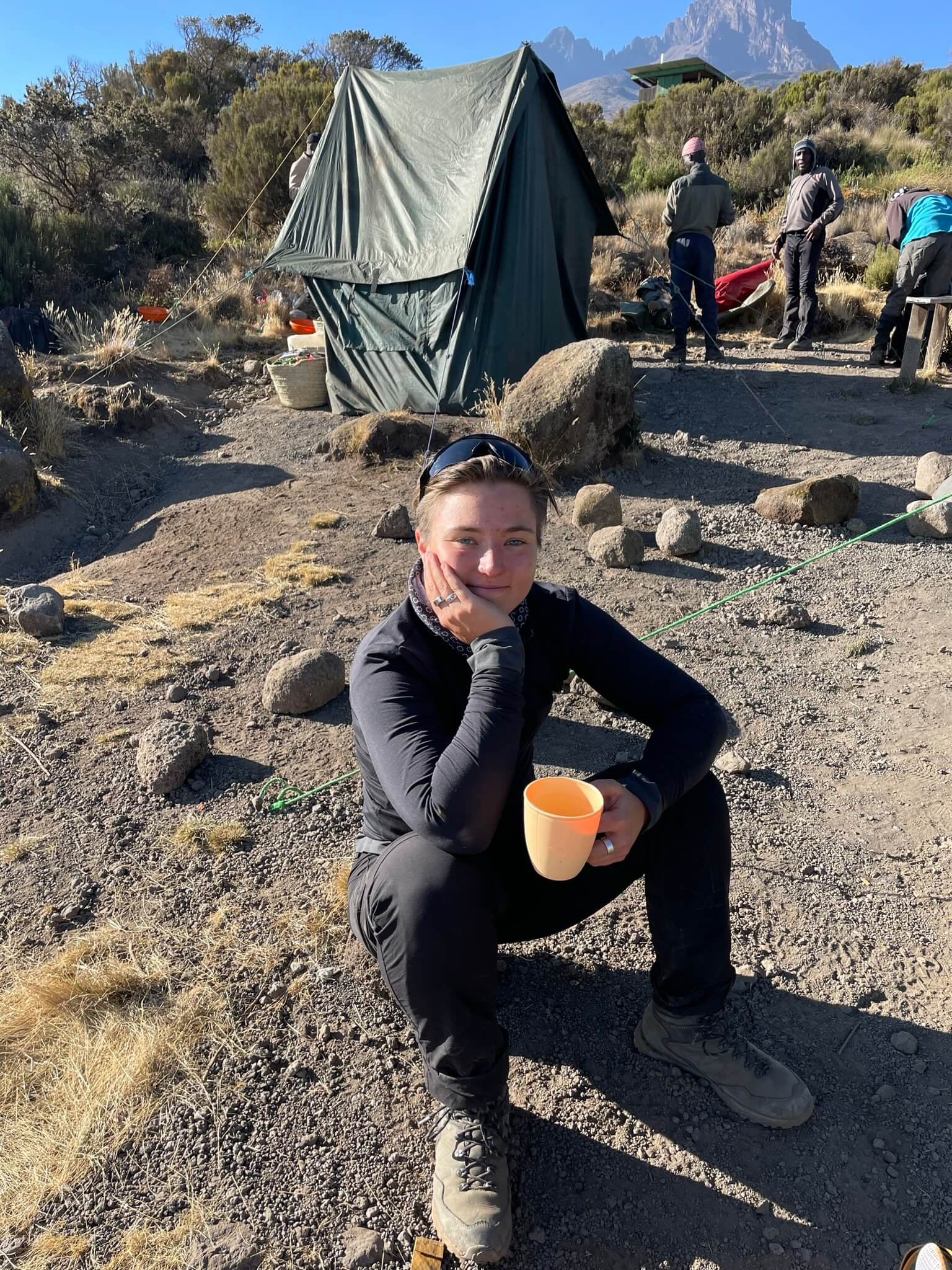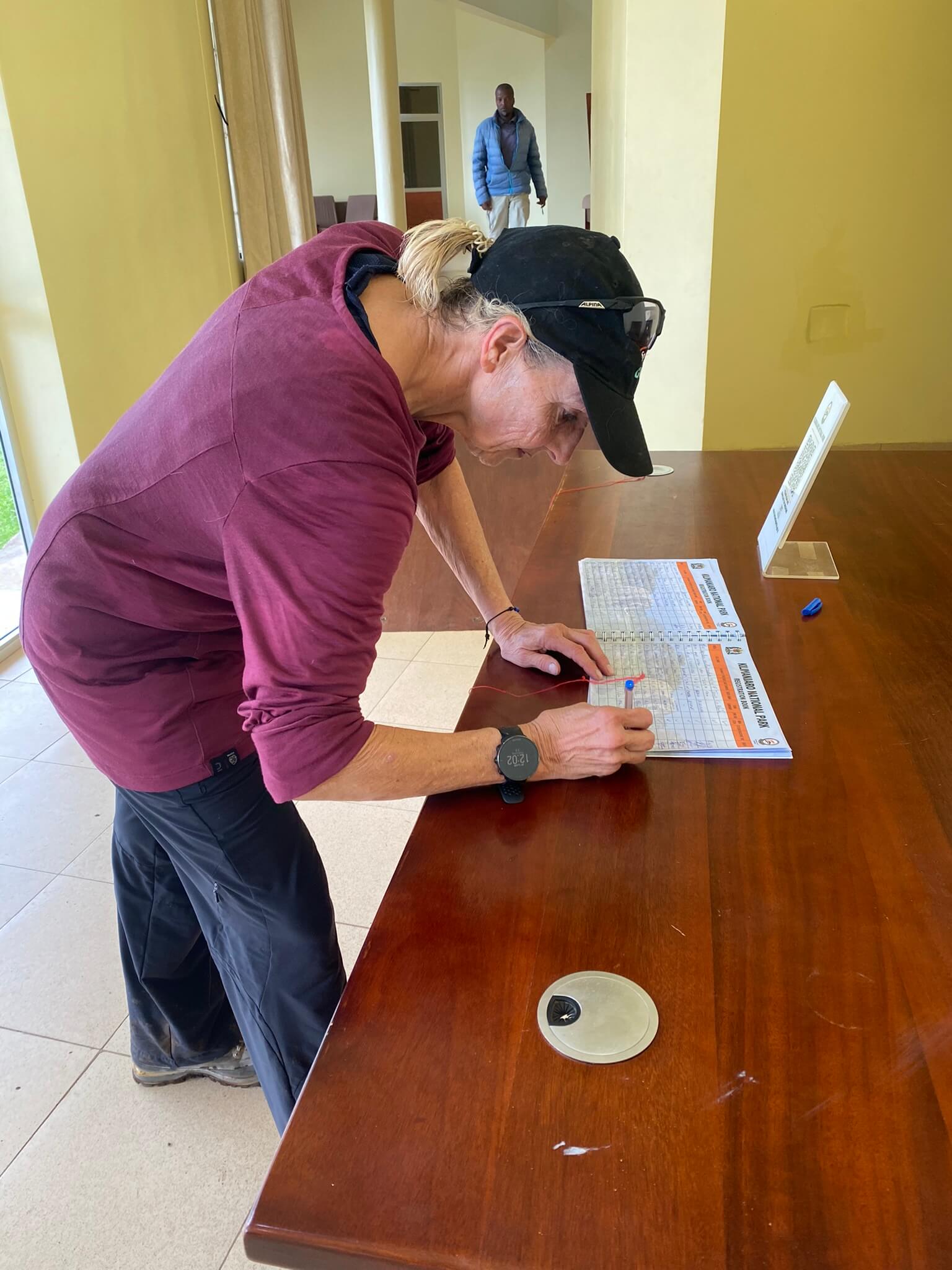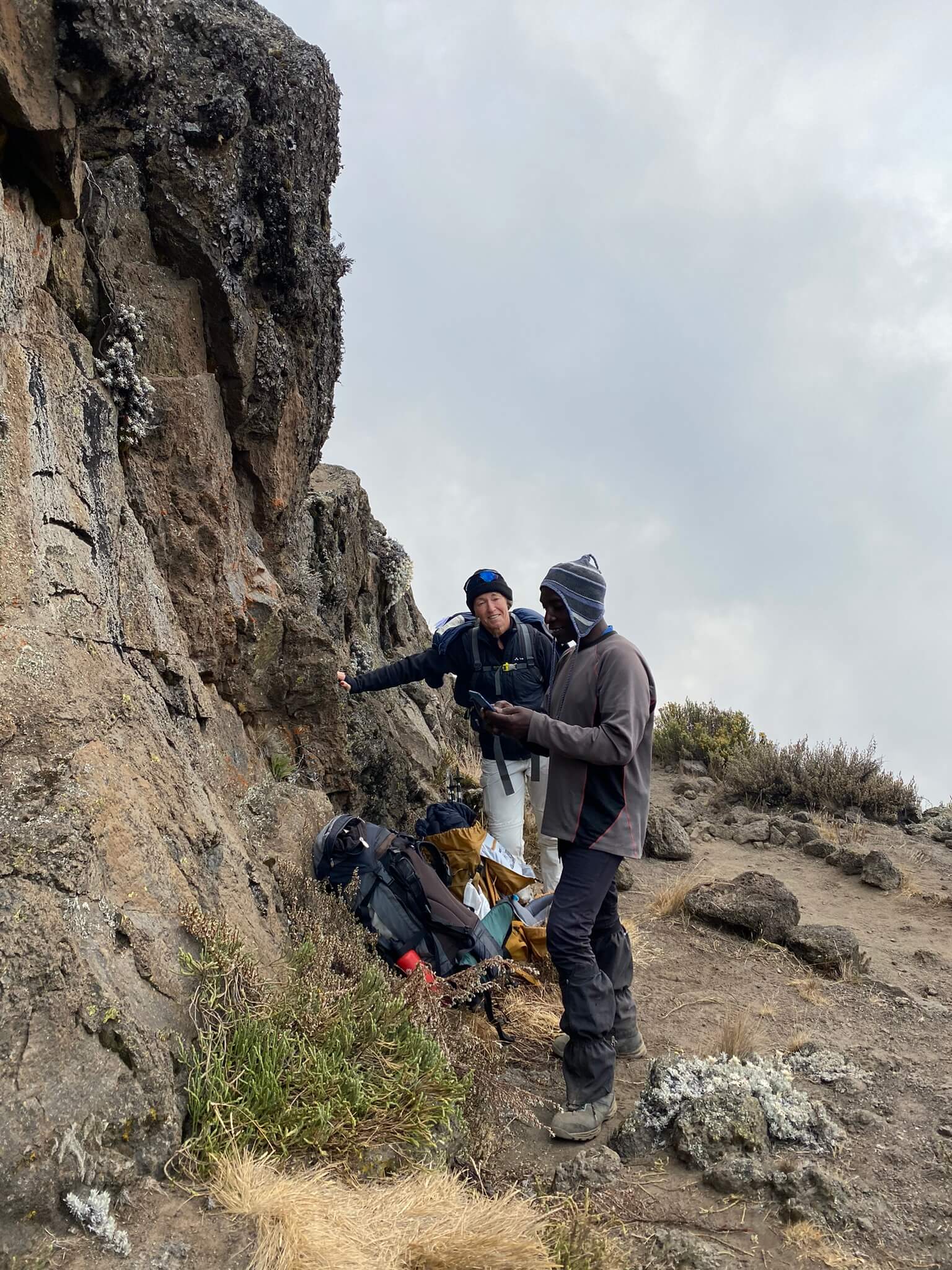 Am späten Nachmittag kommen wir im Kikelelwa-Camp an. John muss nun unsere Sauerstoffsättigung prüfen. Wir sind alle so aufgeregt, dass wir einen viel zu hohen Puls haben. Dafür sind die Sauerstoffsättigungswerte in unserem Blut sehr gut. Bisher weist auch niemand von uns Anzeichen von Höhenkrankheit auf.