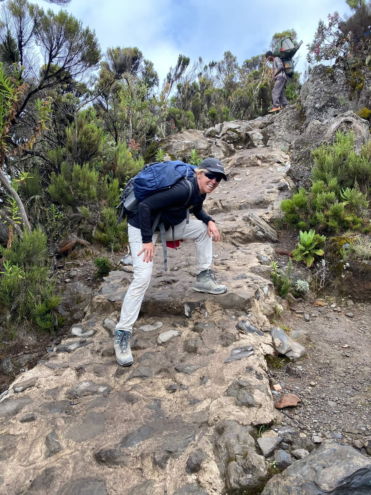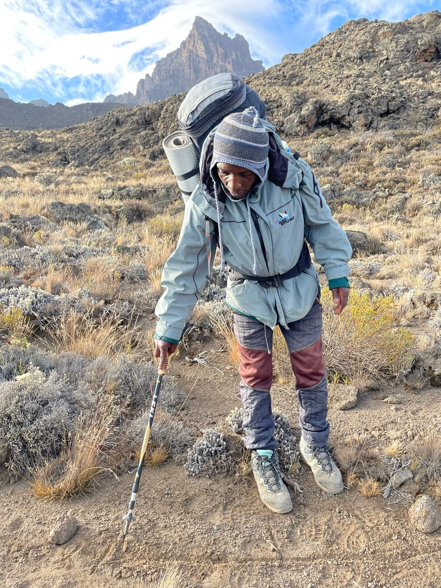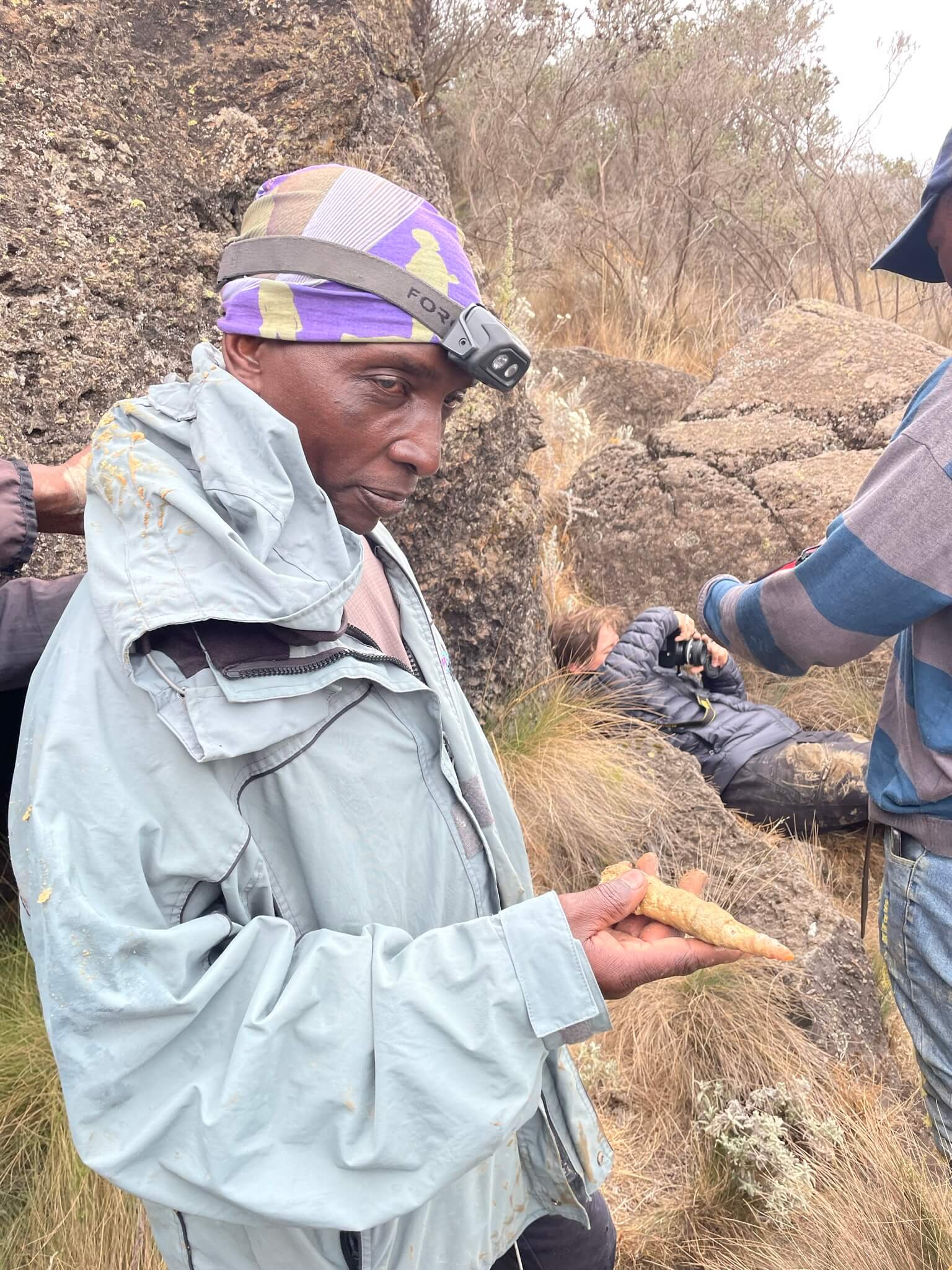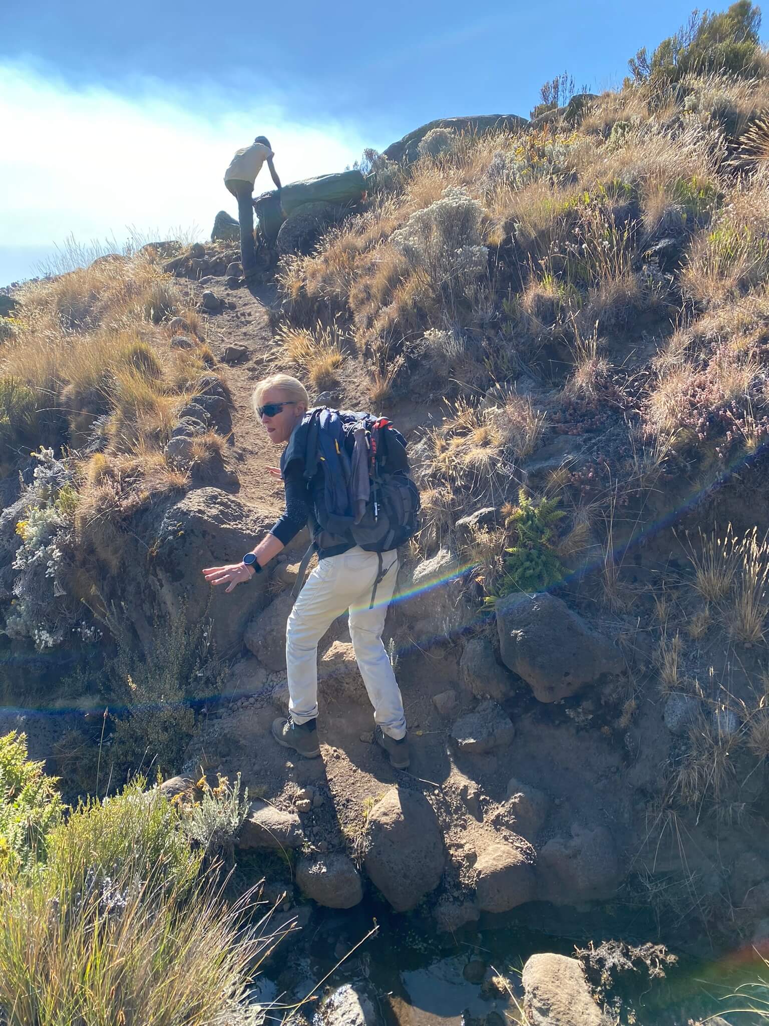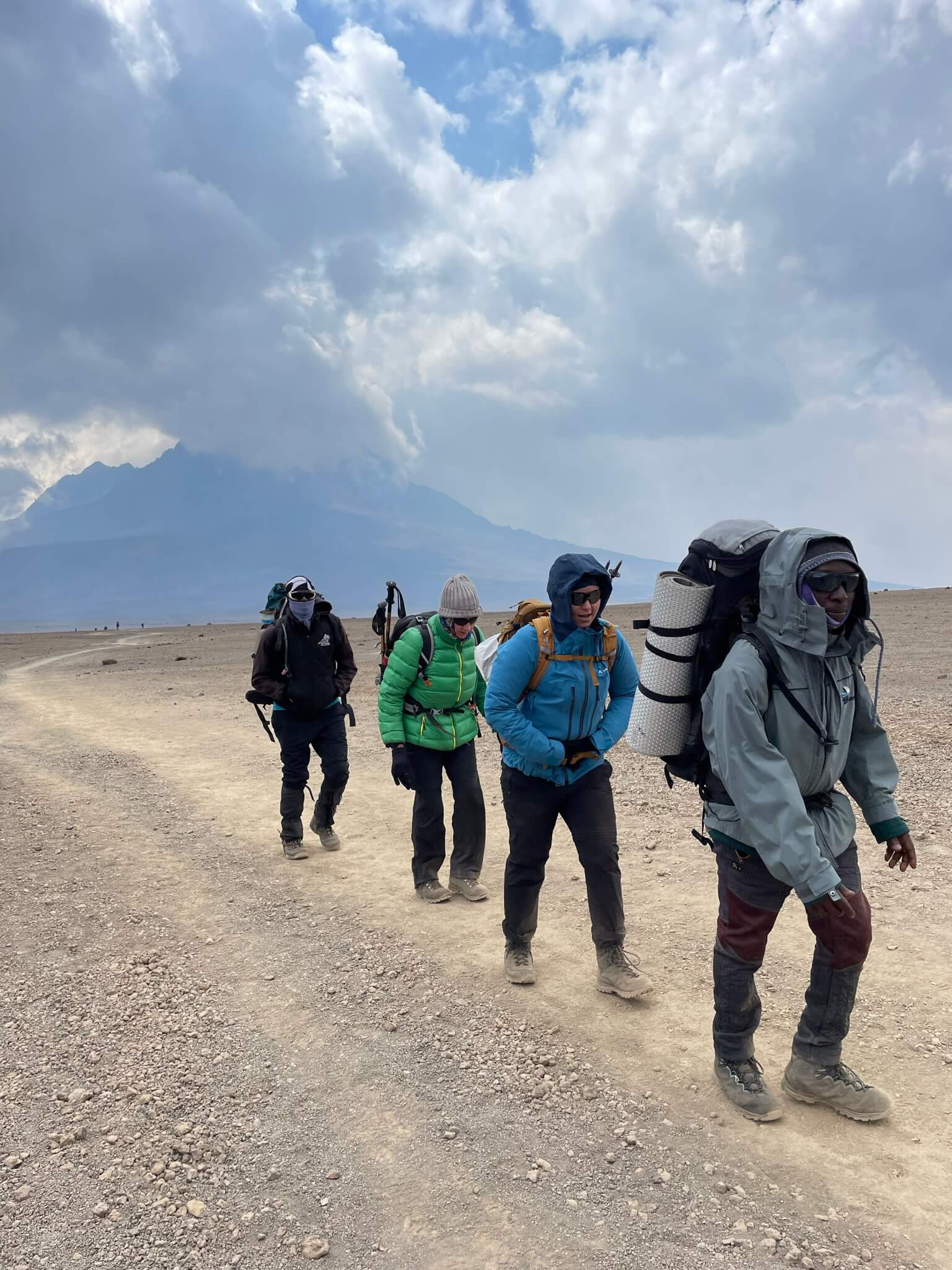 Der Tag ist gekommen – wir müssen unseren wunderbaren Berg verlassen. Auf der einen Seite mit Glücksgefühlen, auf der anderen Seite aber mit ein bisschen Trauer. Es ist bei uns allen ein besonderes Hochgefühl vorhanden. Durch den Regen der Nacht sind die Steine des Abstiegsweges glitschig, was mich nicht davon abhielt , unsere Begleiter mit deutschen Liedern zu beglücken- leider ohne weitere Unterstützung meiner Mitreisenden… Wir treffen auf ein Zweierpärchen – eine ungewöhnliche Konstellation: Ein Guide mit einen sehr markenbetont begleiteten Gast. Die Fendi Skibrille und ein offensichtlich Hippies Shirt mit Nazisymbolen waren mehr als auffällig. Unser Kontaktgarant Anna wurde sofort auf seine Notlage aufmerksam – der Arme hatte kein Taschentuch. Pragmatisch wurde eine Lösung gefunden und in Kürze hatten wir die wesentlichen privaten Informationen. Ein wohlbetuchter Sprössling aus den Emiraten – der weitere Arbeitstitel war Prinz Feisal. Feisal hatte Probleme mit unserer Gehgeschwindigkeit, um nicht zu sagen mit dem Umstand, dass er uns nicht überholen konnte. Irgendwann setzte er auf dem glatten Untergrund zum Sprint an und joggte den Berg runter. Es war eine Frage der Zeit, bis er ausrutschte. Und wir haben nicht wirklich offen gelacht.