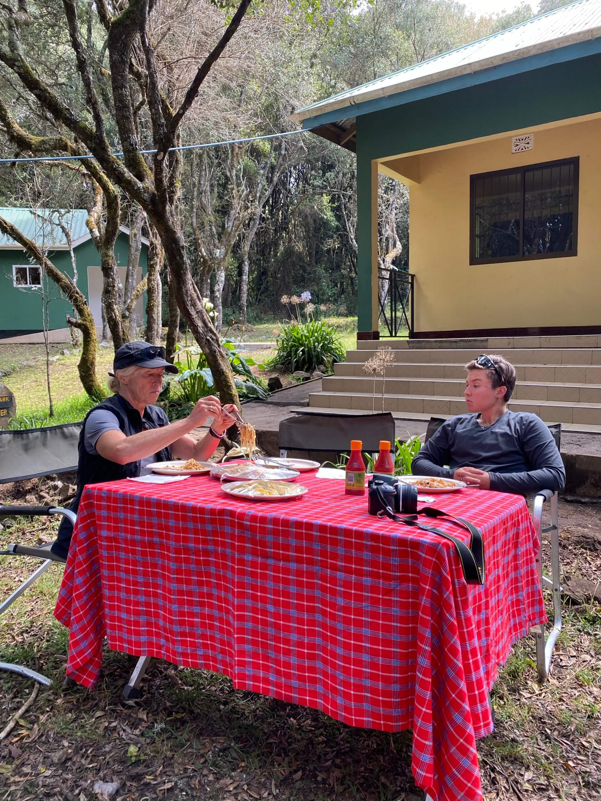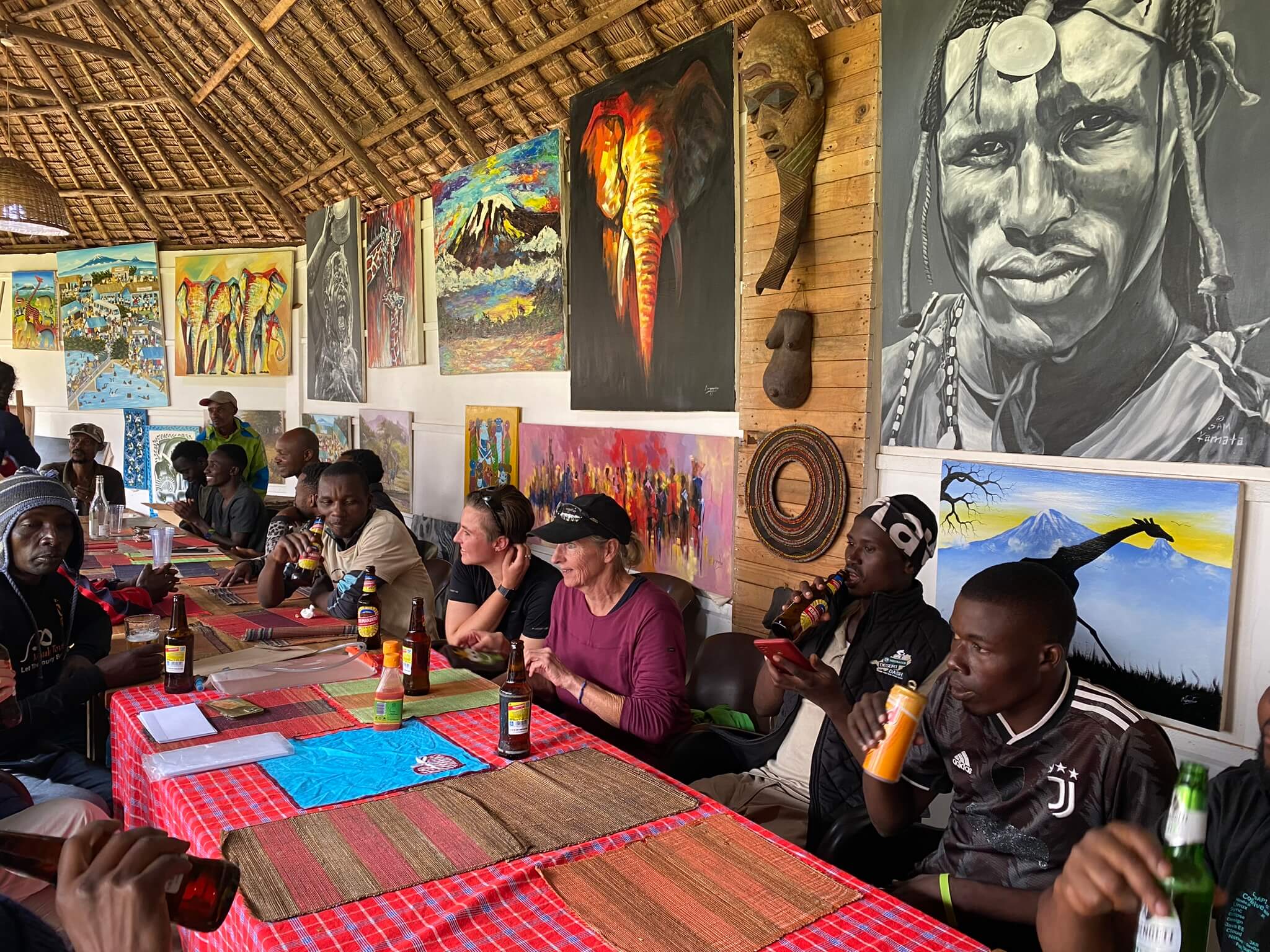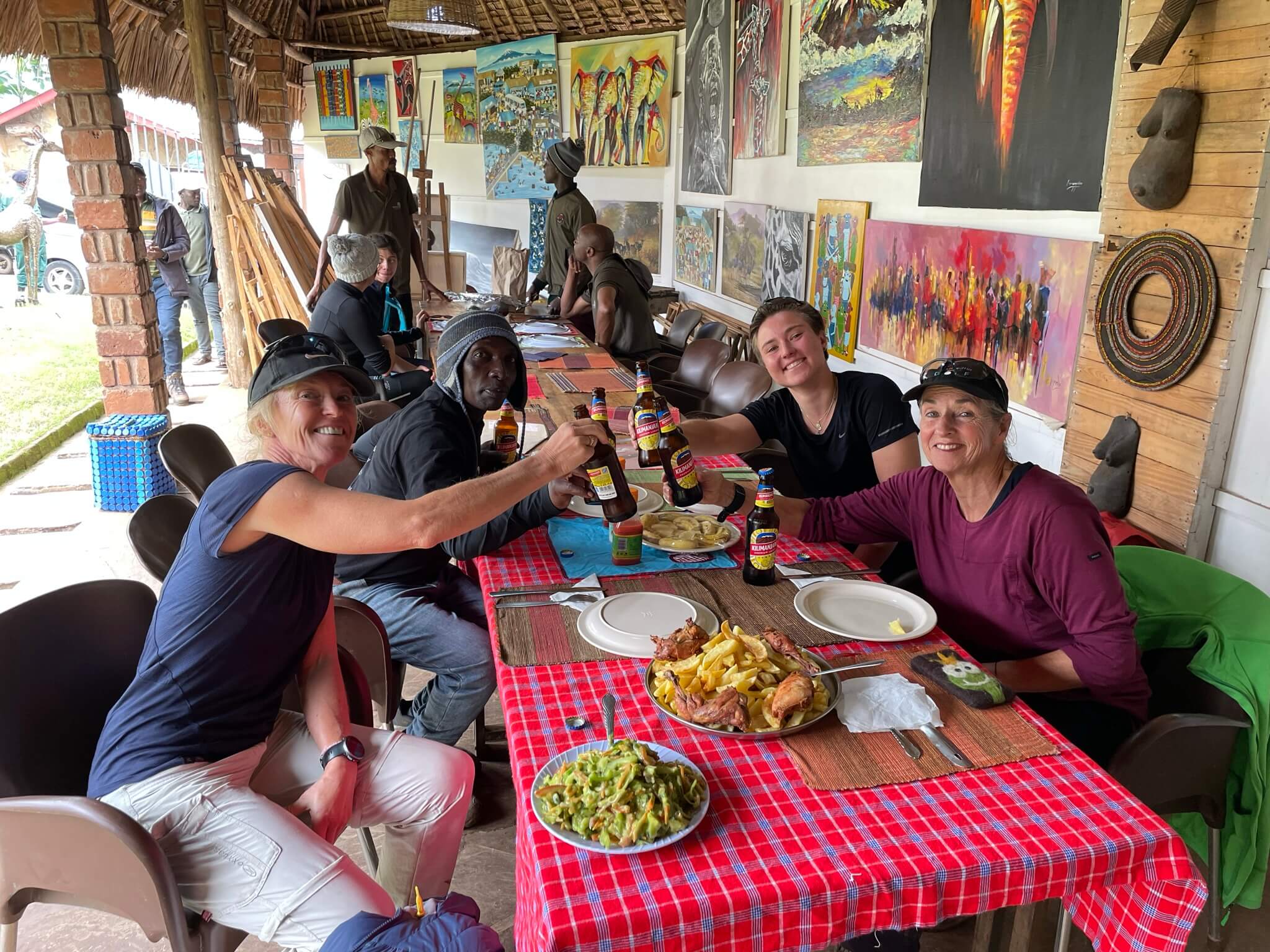 Wir essen zusammen mit Dingi und genießen ein köstliches Kilimanjaro-Bier. Anschließend stößt die gesamte Mannschaft hinzu für die Abschiedsreden, die Trinkgeldübergabe und die Übergabe der Geschenke. Damit sind Artikel gemeint, die wir übrig haben. Und wir bekommen unsere Besteigungszertifikate!