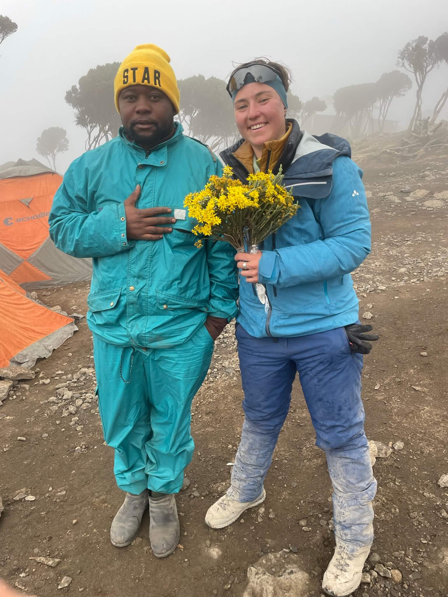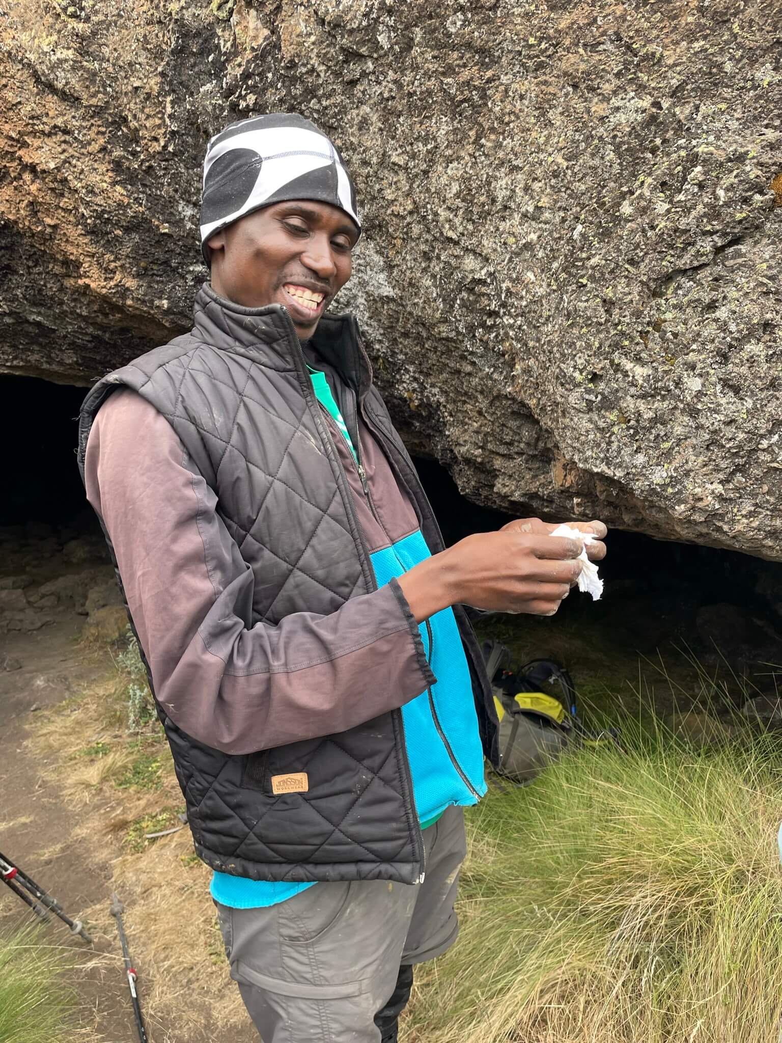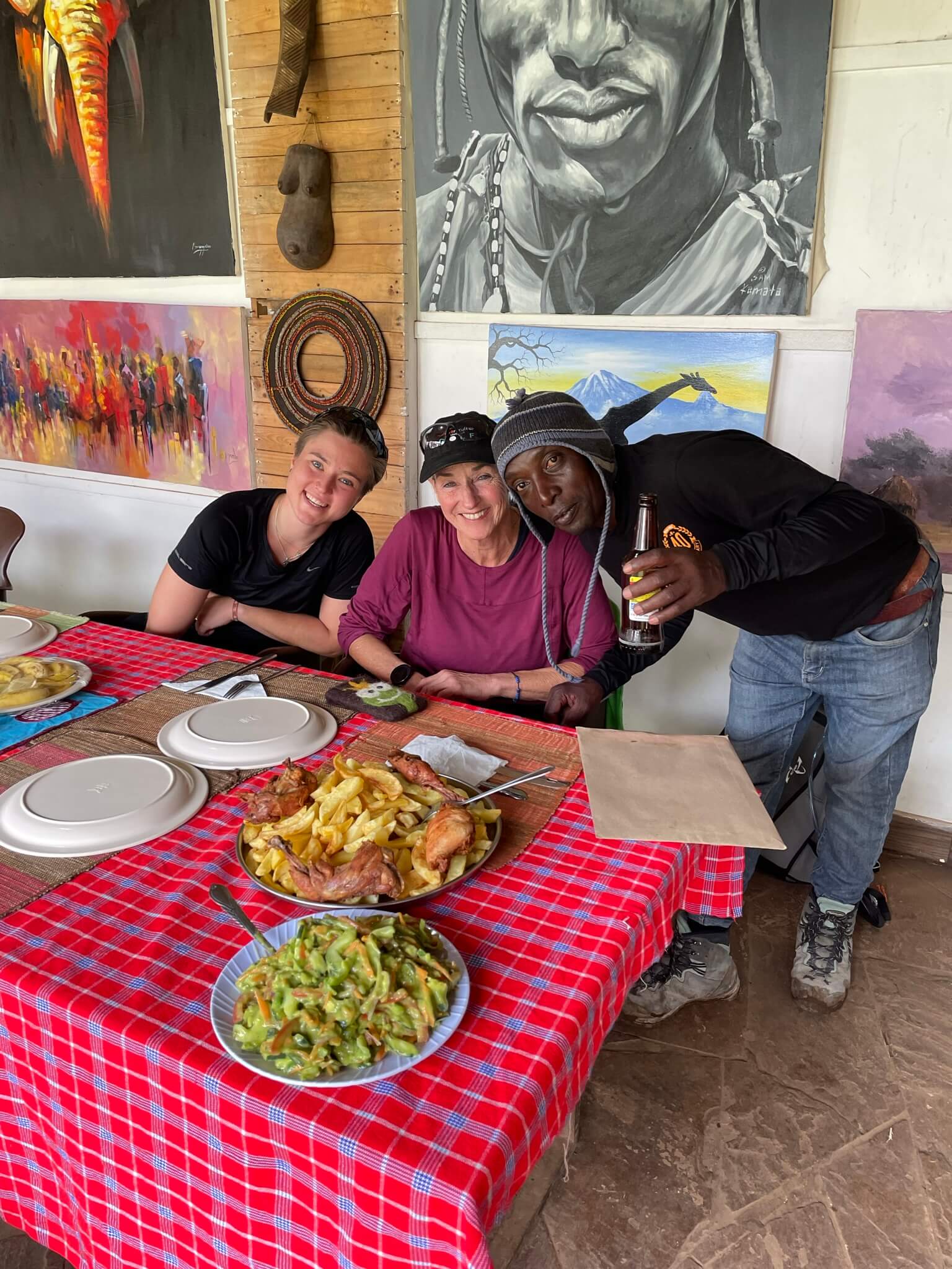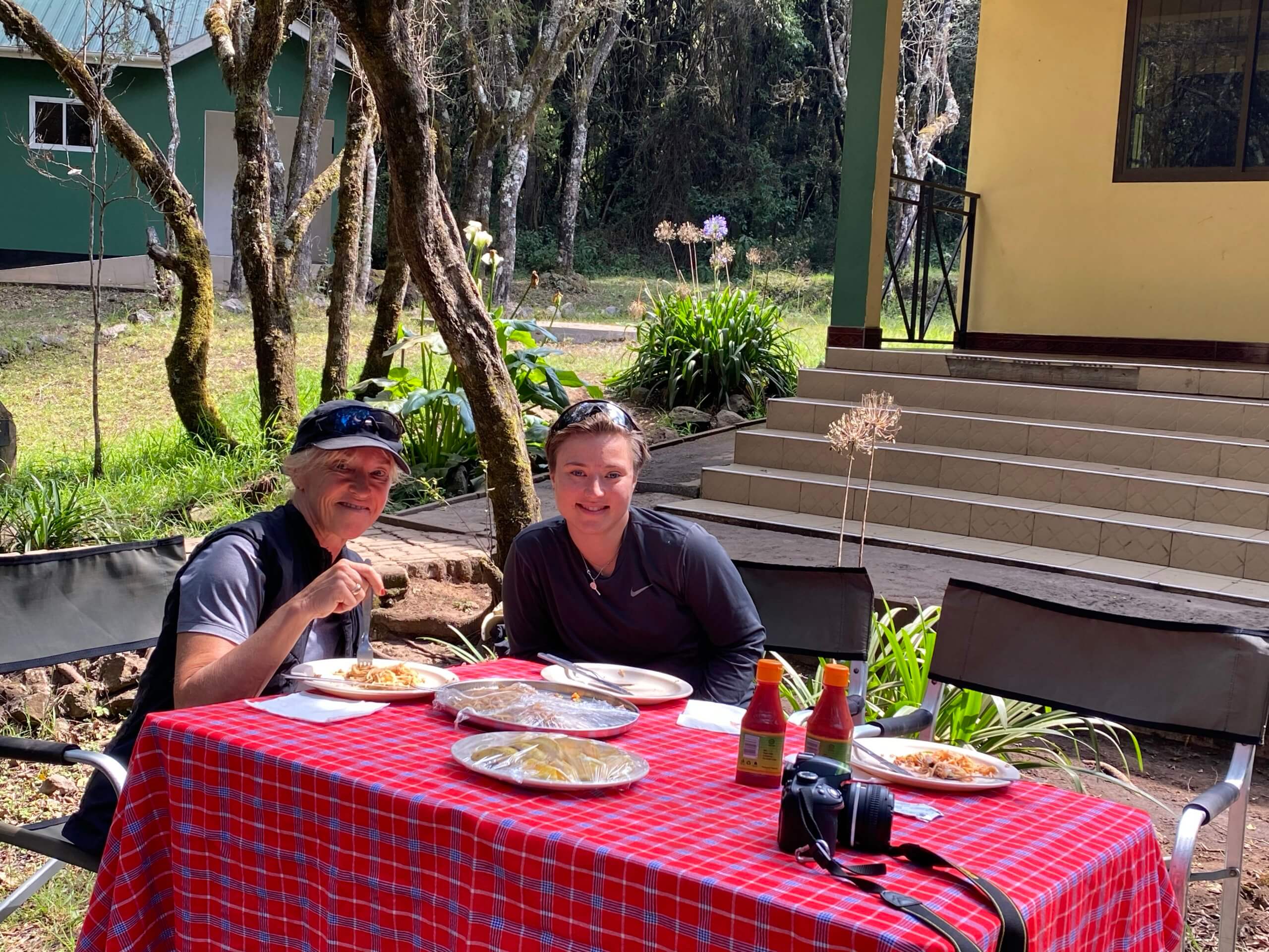 Wir essen zusammen mit Dingi und genießen ein köstliches Kilimanjaro-Bier. Anschließend stößt die gesamte Mannschaft hinzu für die Abschiedsreden, die Trinkgeldübergabe und die Übergabe der Geschenke. Damit sind Artikel gemeint, die wir übrig haben. Und wir bekommen unsere Besteigungszertifikate!