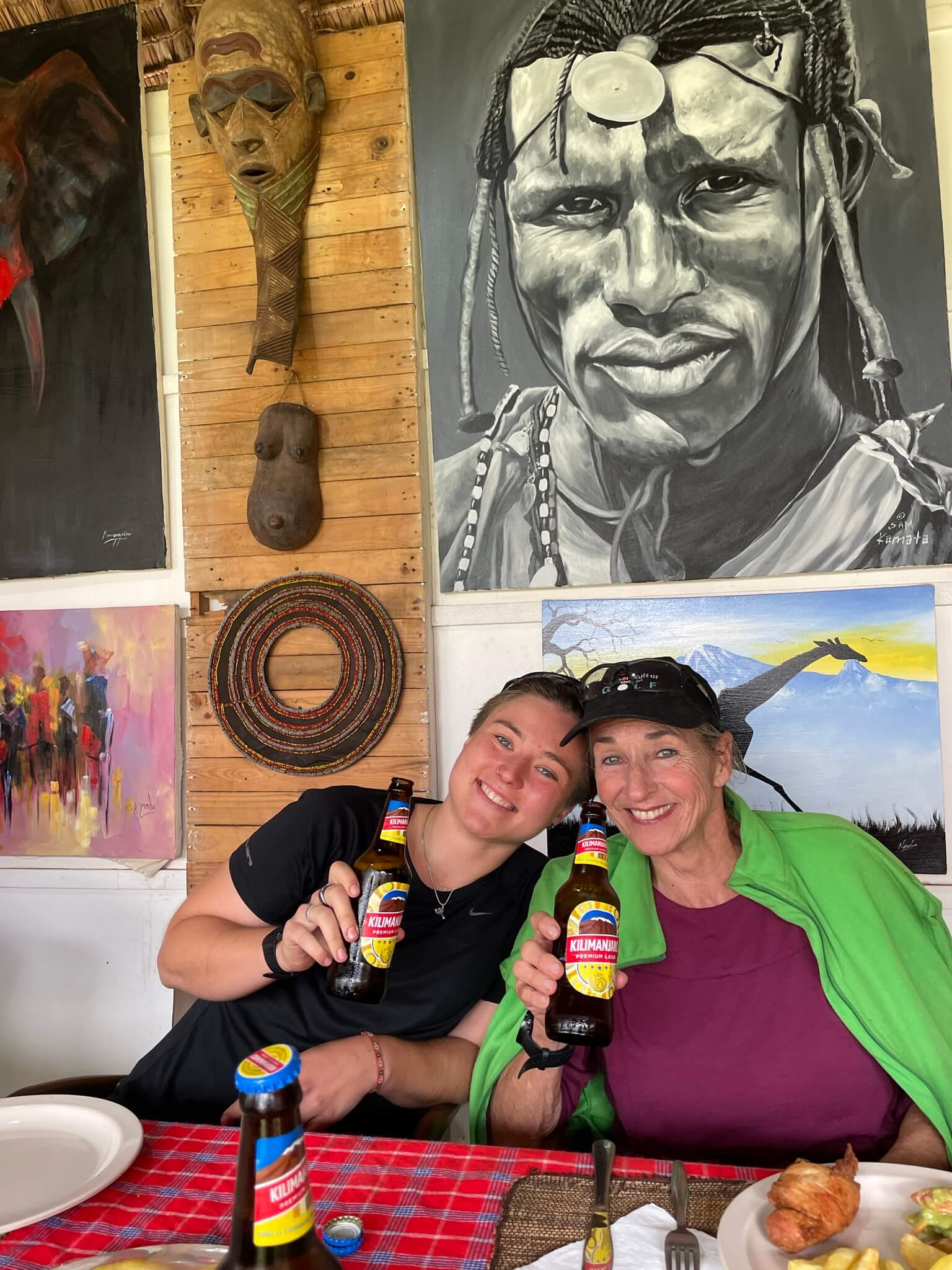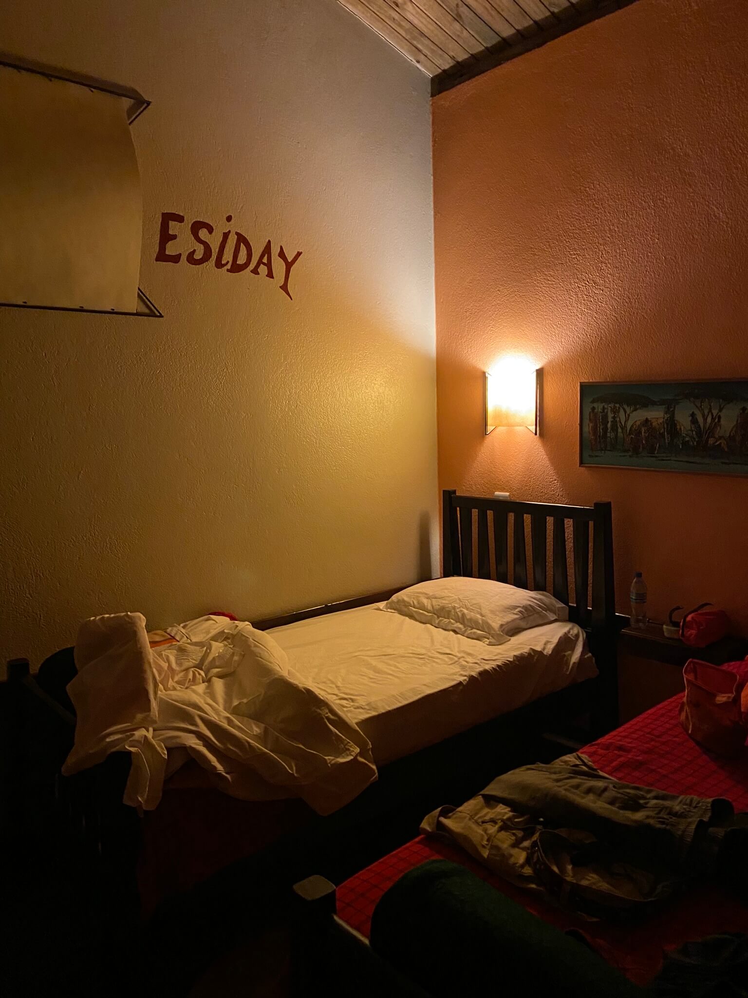 Nach dem Abendessen kommen wir ins Gespräch mit dem einzigen weiteren Hotelgast, einem alleinreisenden deutschen Touristen. Er hat ebenfalls die Kilimanjaro-Tour gemacht, und begeistert tauschen wir unsere Erlebnisse und Erfahrungen aus. Und dann will er uns seinen absoluten Geheimtipp, und DAS Must-have auf der Tour verraten: die Pinkelflasche 🤣.