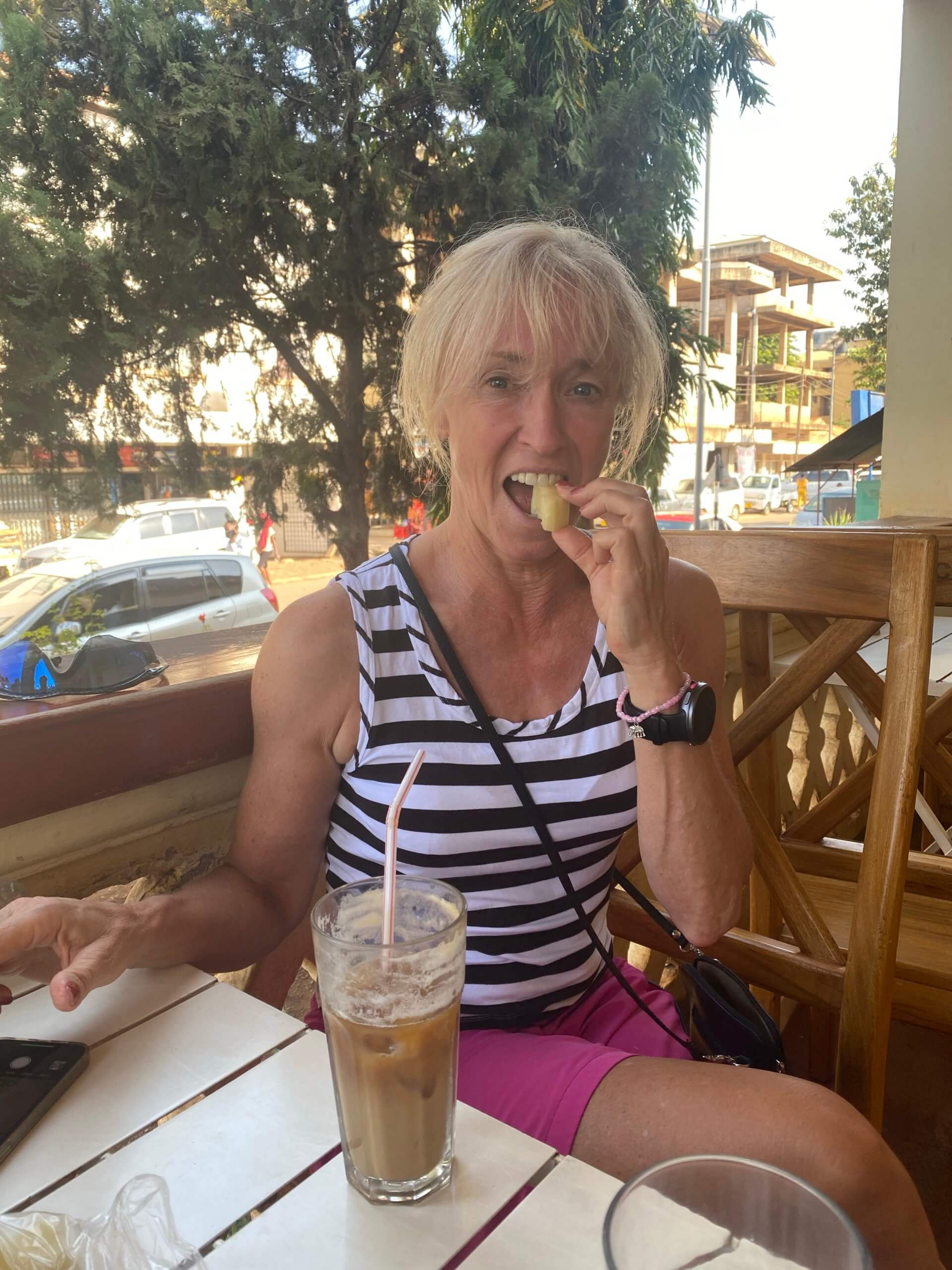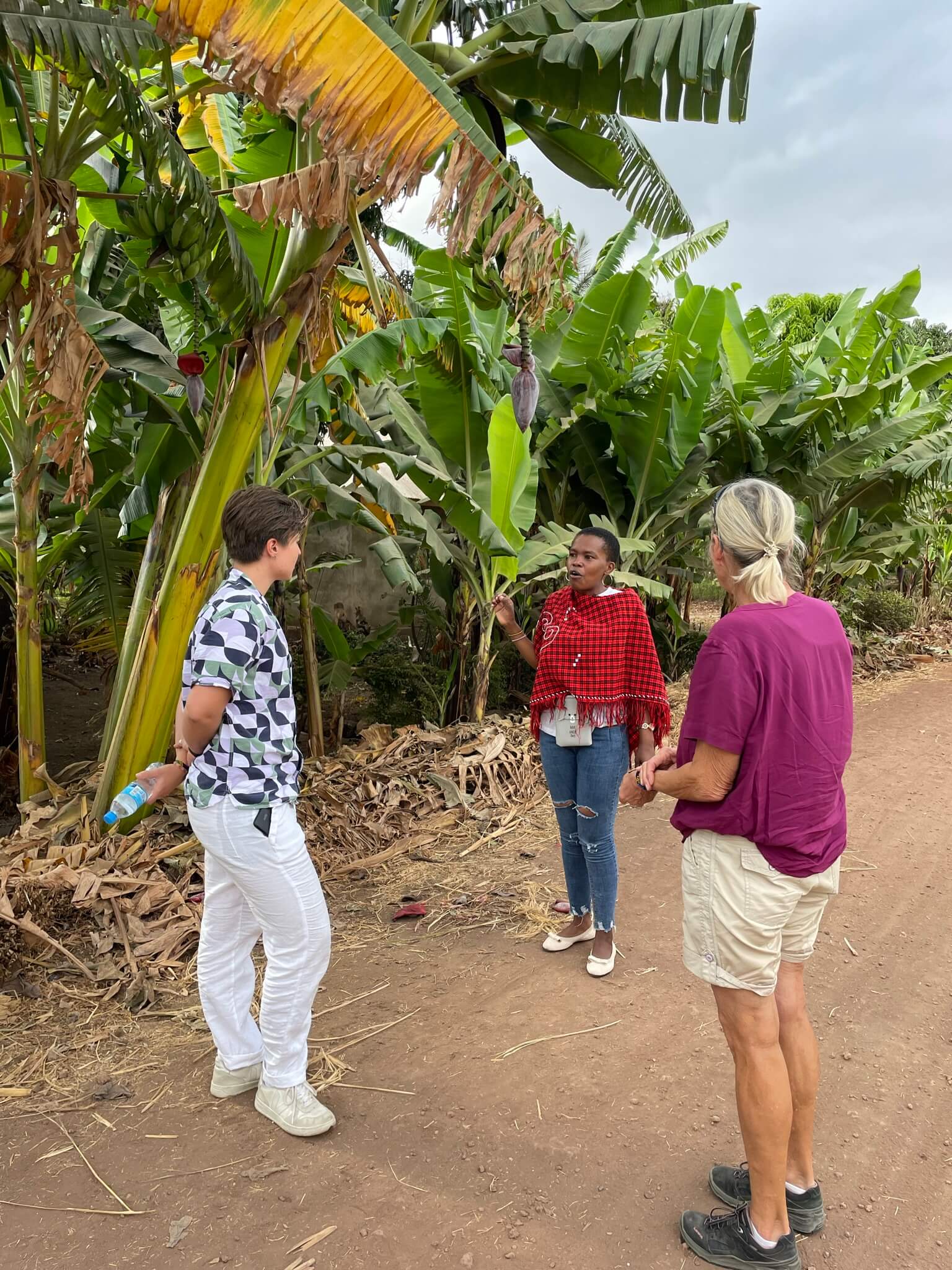 Wir müssen Banana-Beer (Du meine Güte) und rote Bananen kosten. Mich schaudert! Die rote Banane schmeckt genau wie eine gelbe. Nachdem ich einmal abgebissen haben, möchte ich den Rest dezent entsorgen indem ich ihn zu den Schalen lege. Da sagt Happiness streng zu mir „an African woman does not waste food“ und isst meinen Rest auf. Und ich schäme mich ein bisschen.