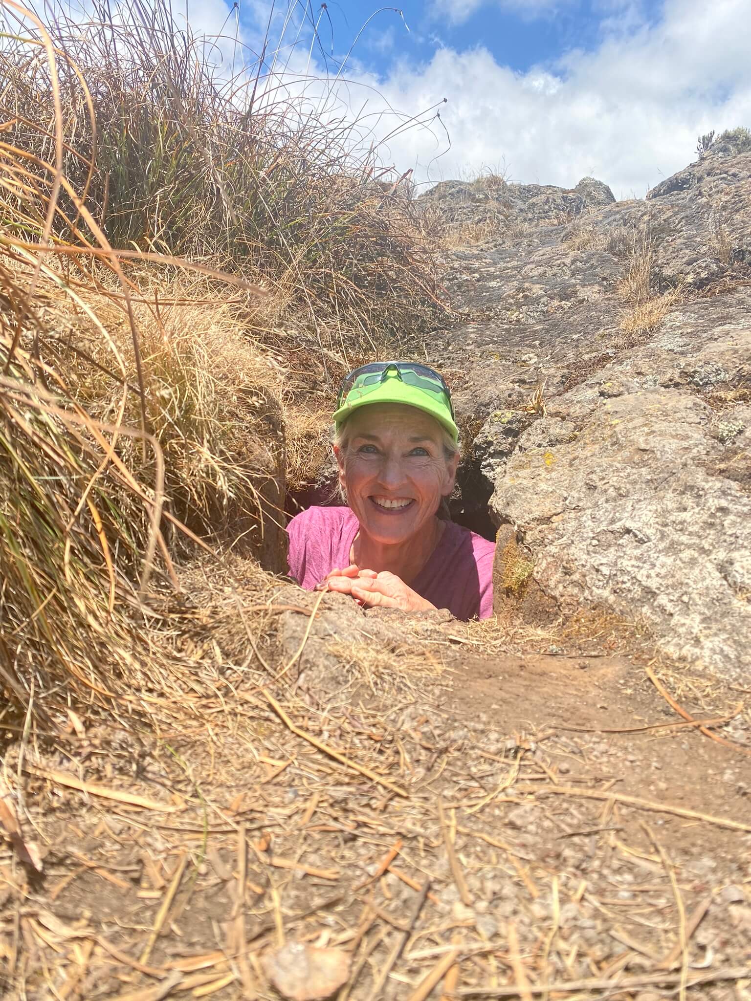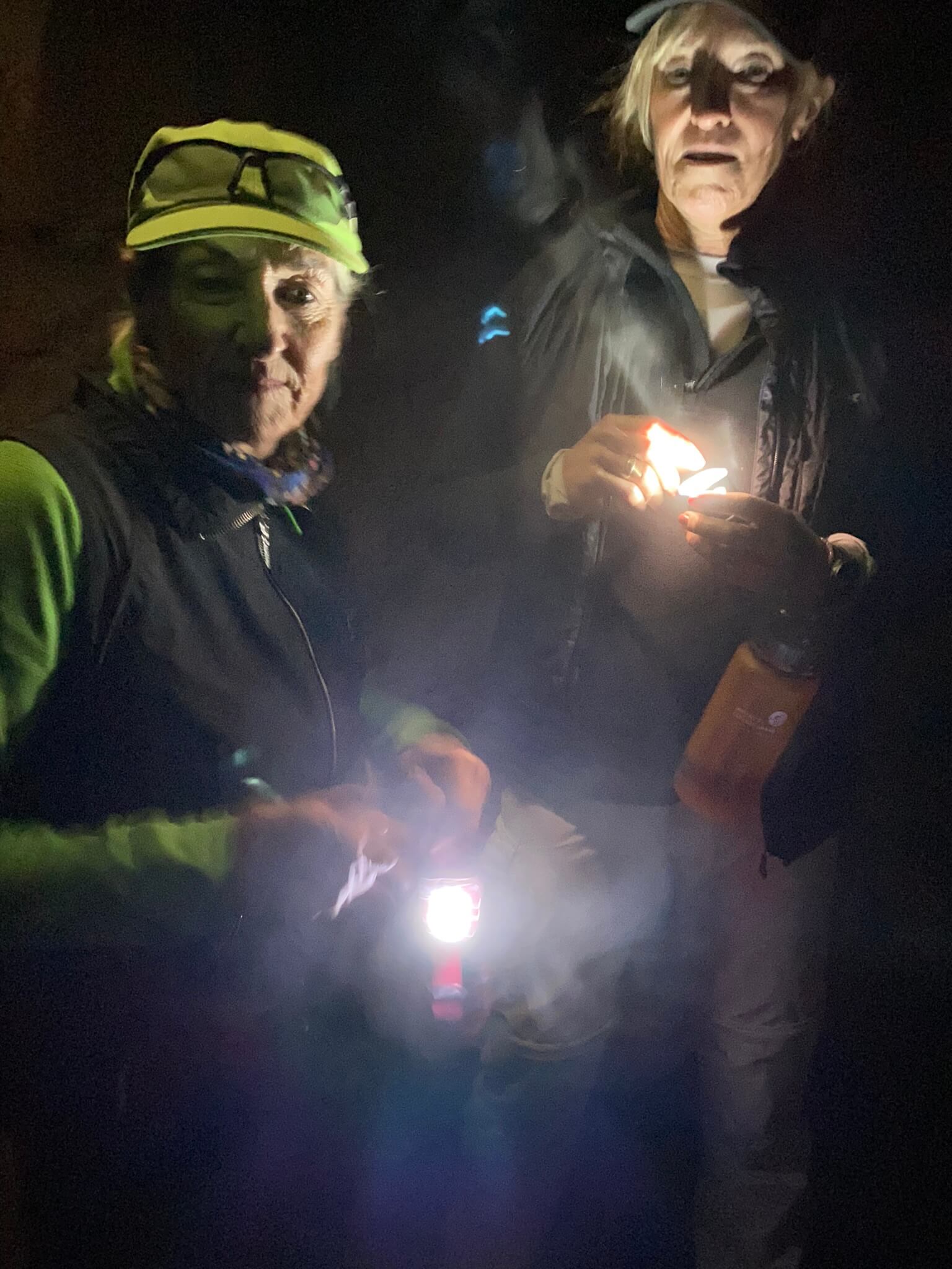 Am späten Nachmittag schlägt John vor, dass wir eine verborgene Höhle besichtigen. Das ist mal gruselig. Es ist stockdunkel. Riesige Steine liegen herum und alles ist feucht und glitschig. Anna und die Jungs gehen bis zum Ende und sehen entsprechend verdreckt aus als sie zurückkommen. Die zwei Luxusfrettchen kehren schon etwas früher wieder um.