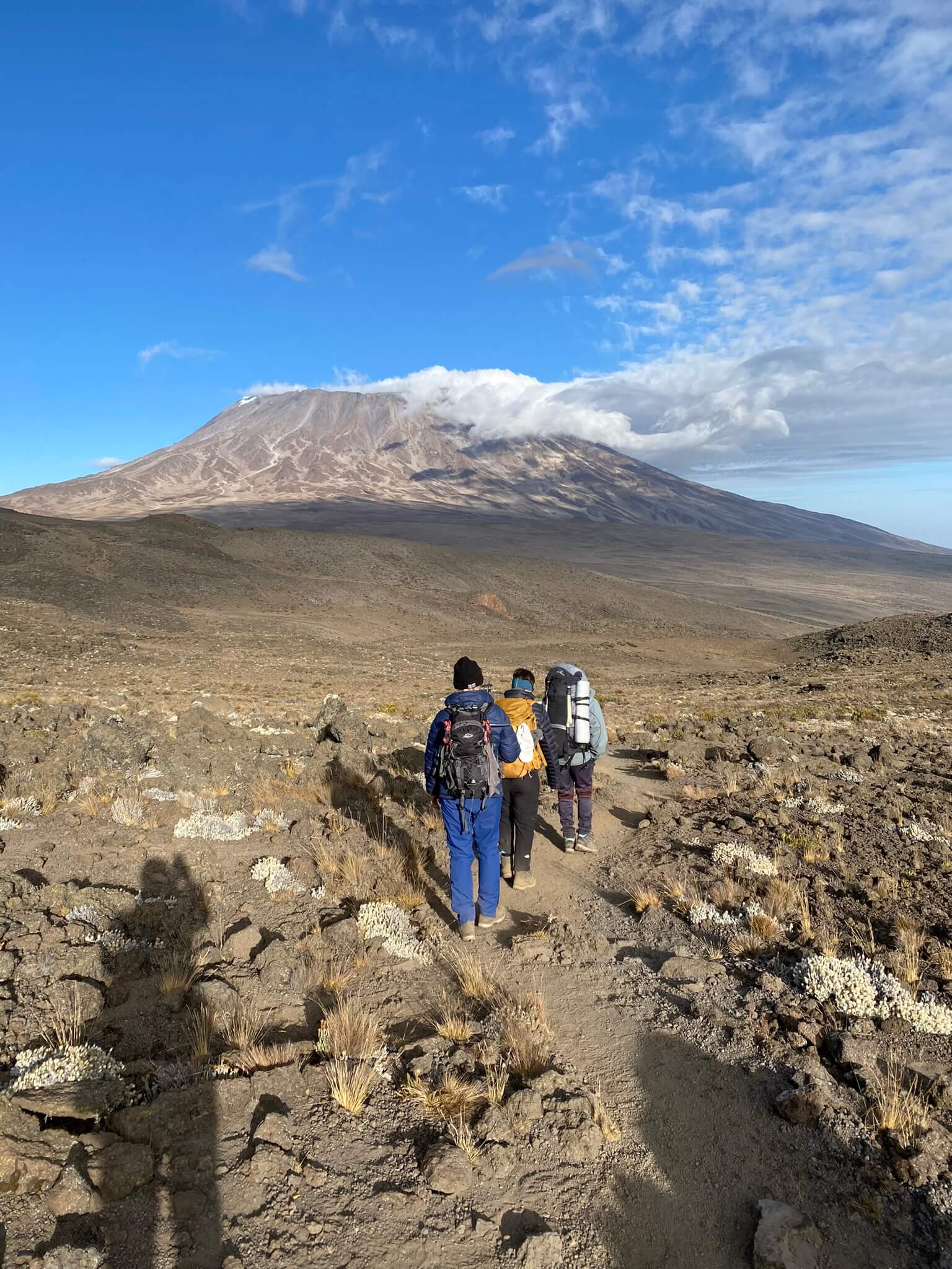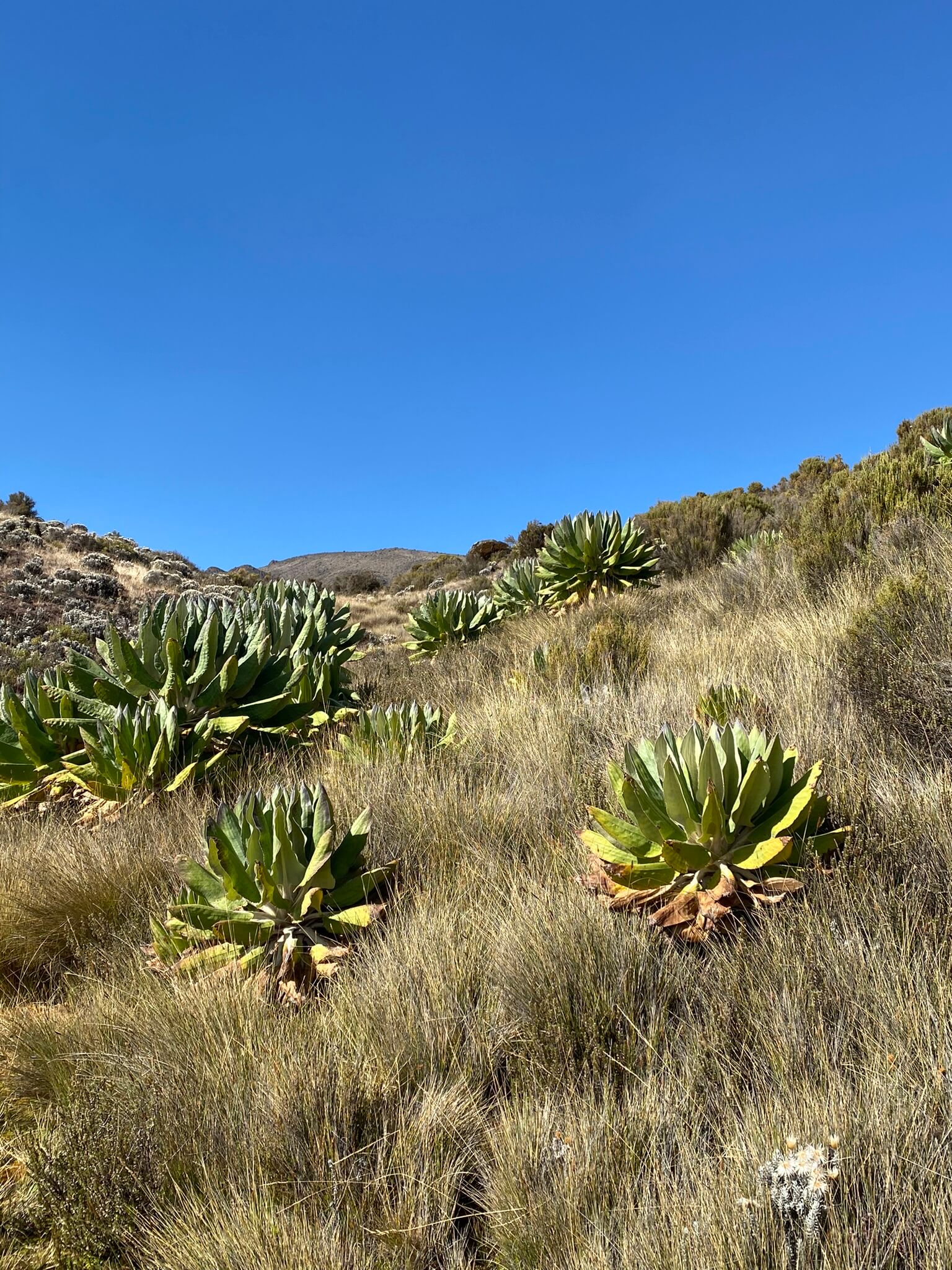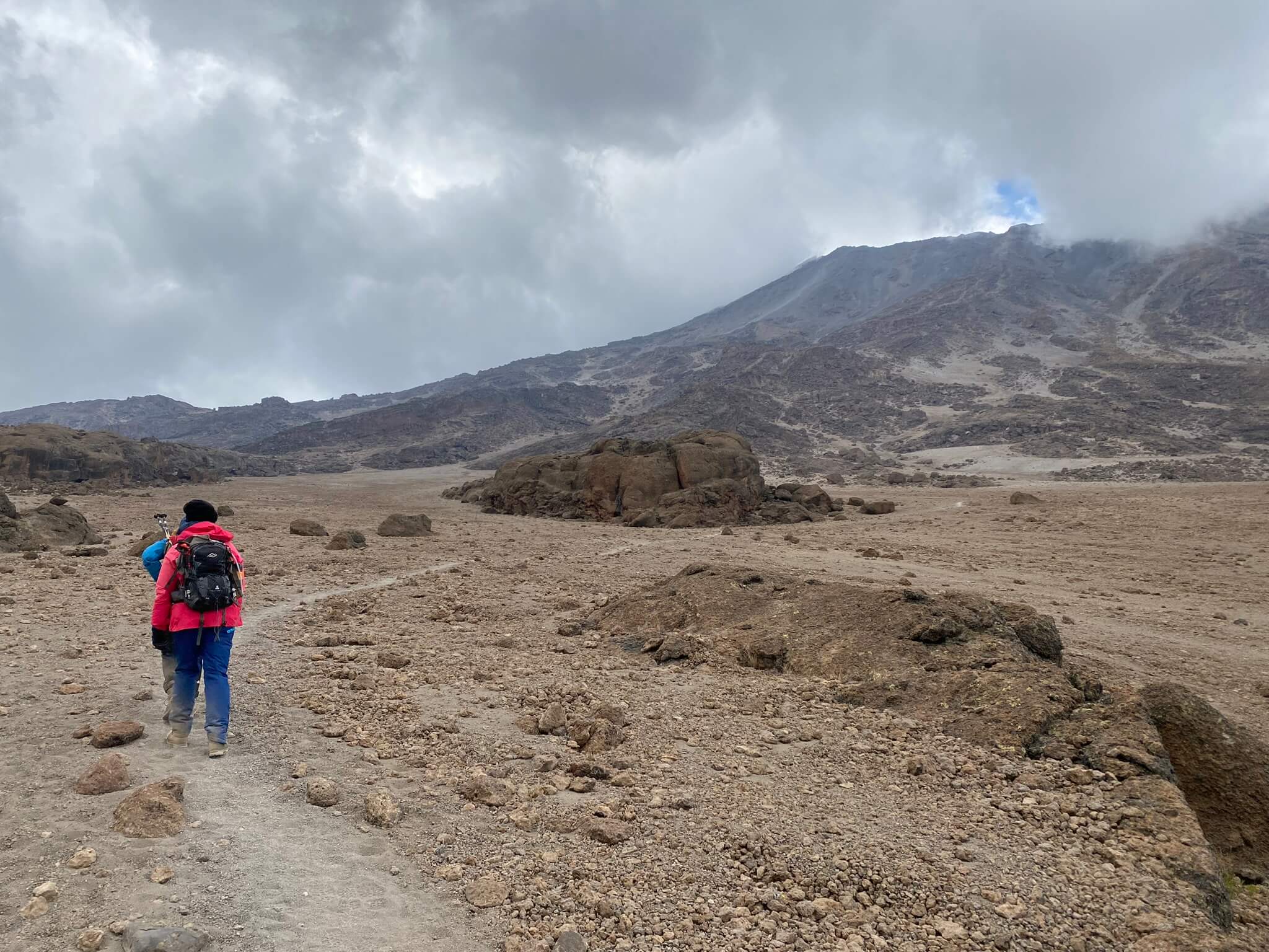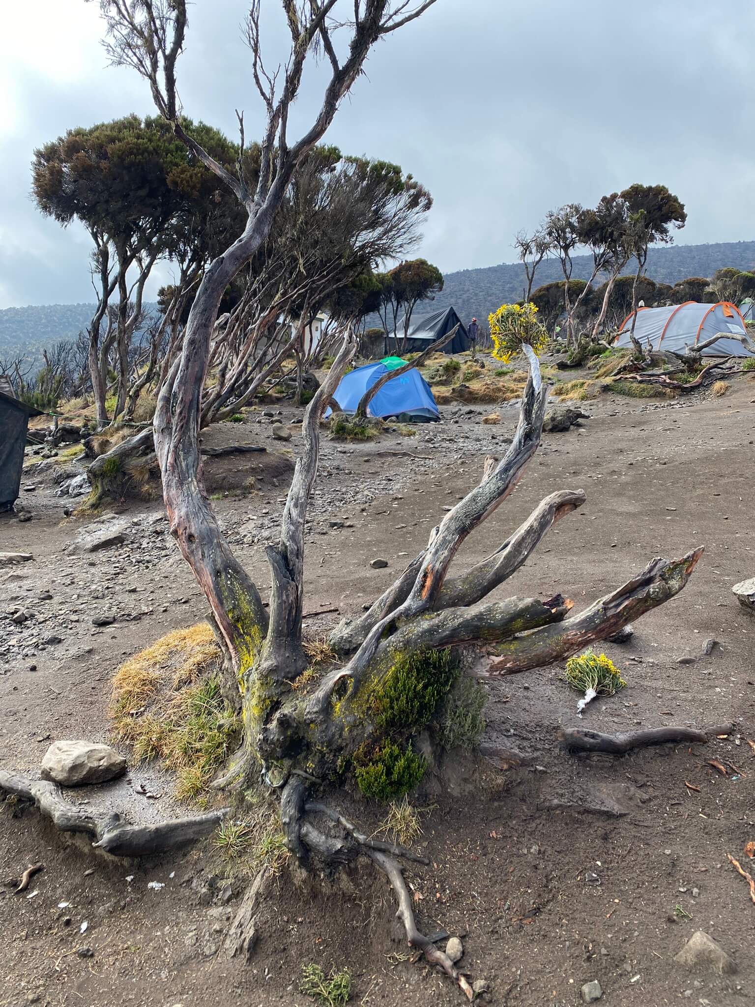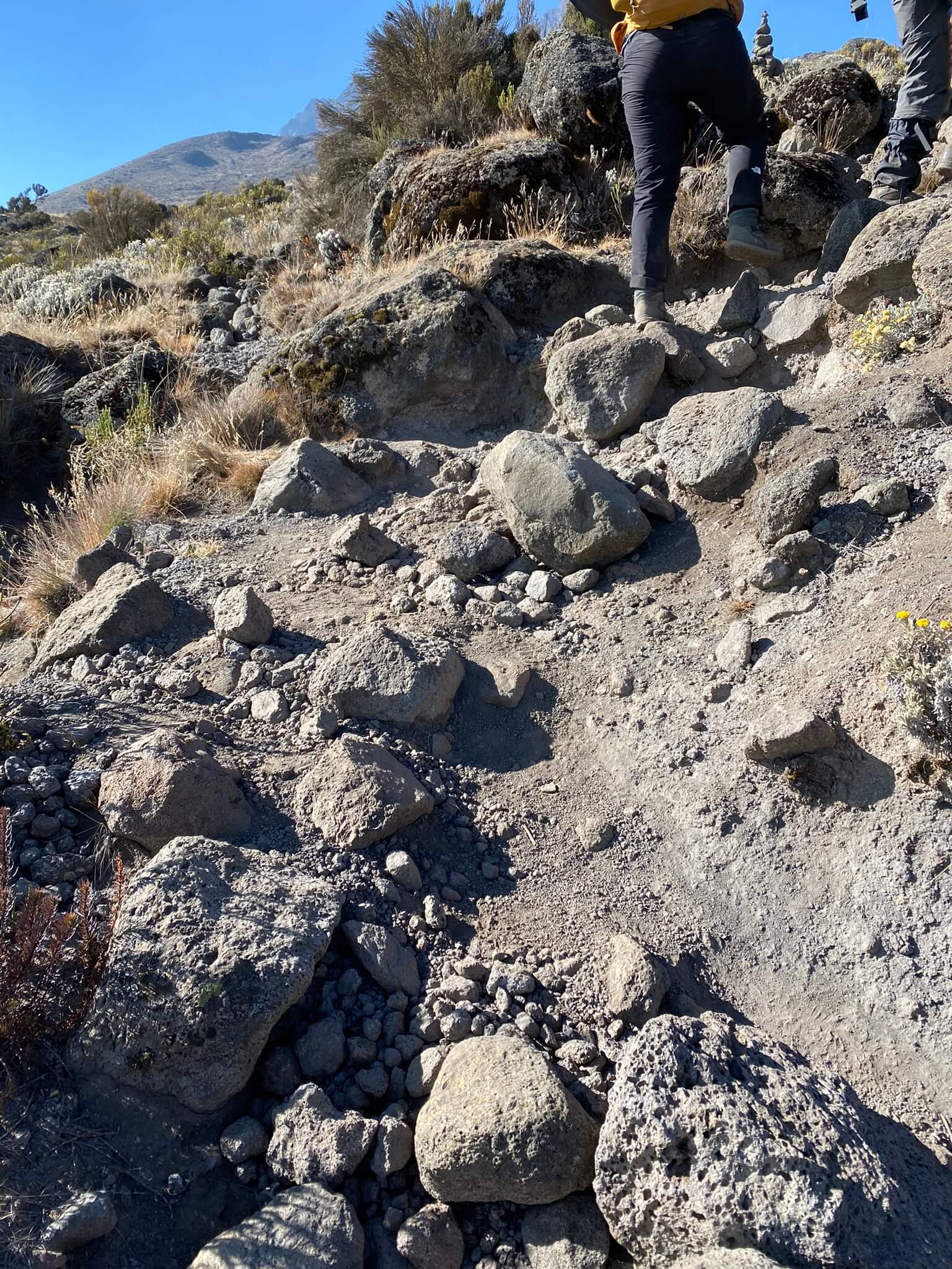 Nach dem üblichen Morgenritual starten wir in Richtung Mawenzi Tarn Hütte. Das sind heute nur ungefähr 700 Höhenmeter und ich weiß nicht mehr wie viele Kilometer. Jedenfalls ist es nicht weit. Zur Mittagszeit schon kommen wir im Lager an und dann gibt es schon wieder was zu essen.
