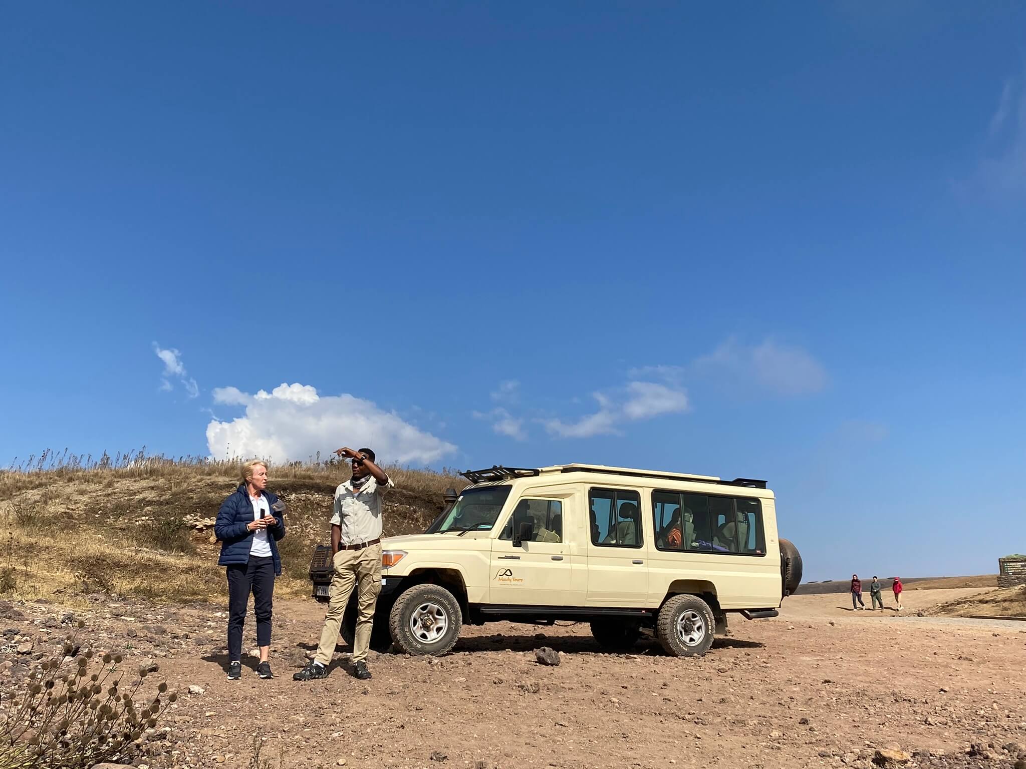 Unser Safari Guide Samuel holt uns pünktlich um 7:30 Uhr ab. Zuerst einmal fällt auf, dass alle ein wenig unrund laufen. Coni sieht aus, als hätte sie jemand angeschossen. Anna kommt auch nicht gerade dynamisch daher und bei mir ist es erst am Anfang. Unsere Oberschenkel lassen uns jetzt die stundenlangen Abstiege spüren.
