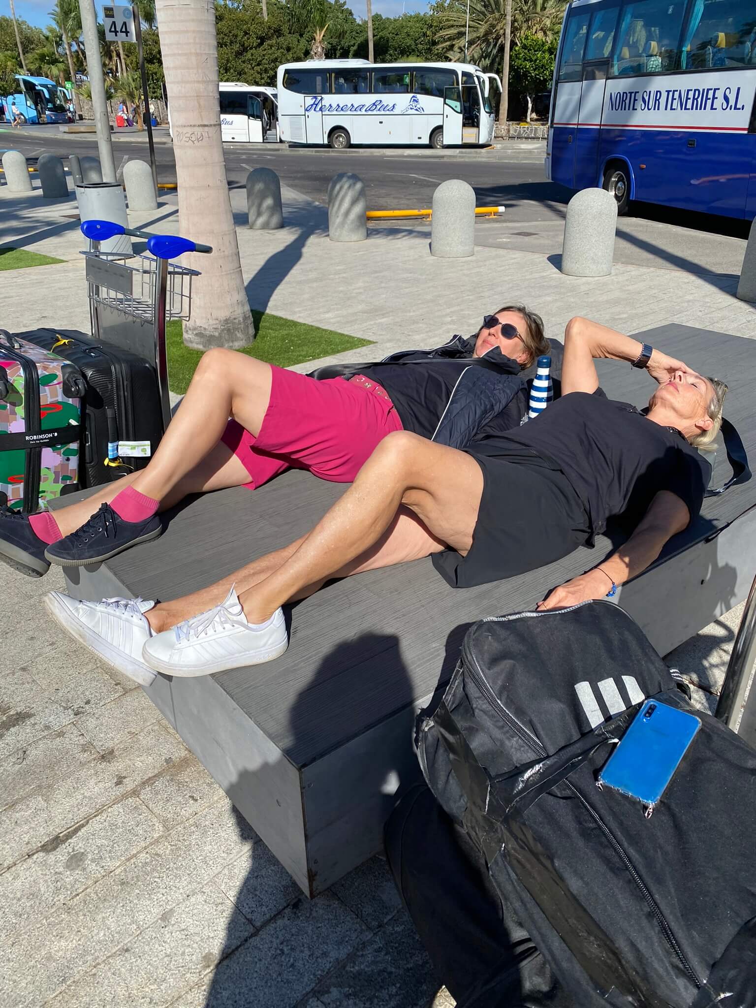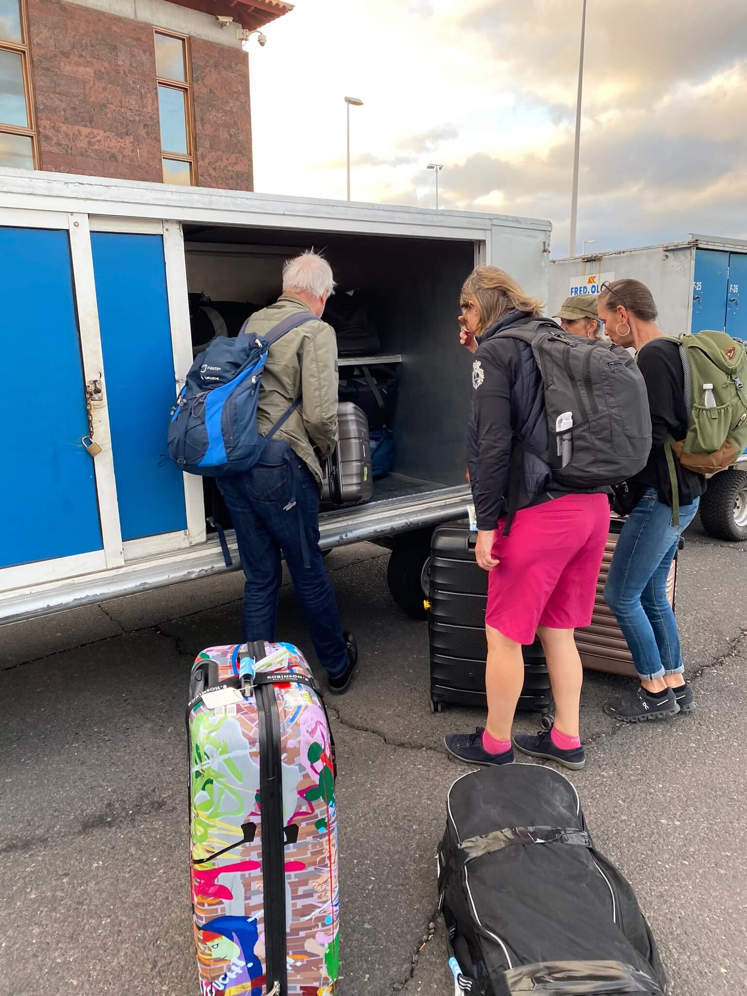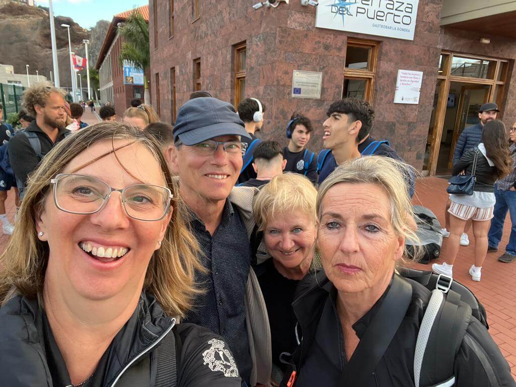 Als alle ihr Gepäck in Empfang genommen haben, geht es zum Bus, der uns an den Fährhafen nach Los Cristianos bringt. Dort können wir schon fürs Hotel einchecken und dann begrüßen wir freudig unsere Mitreisenden aus München.