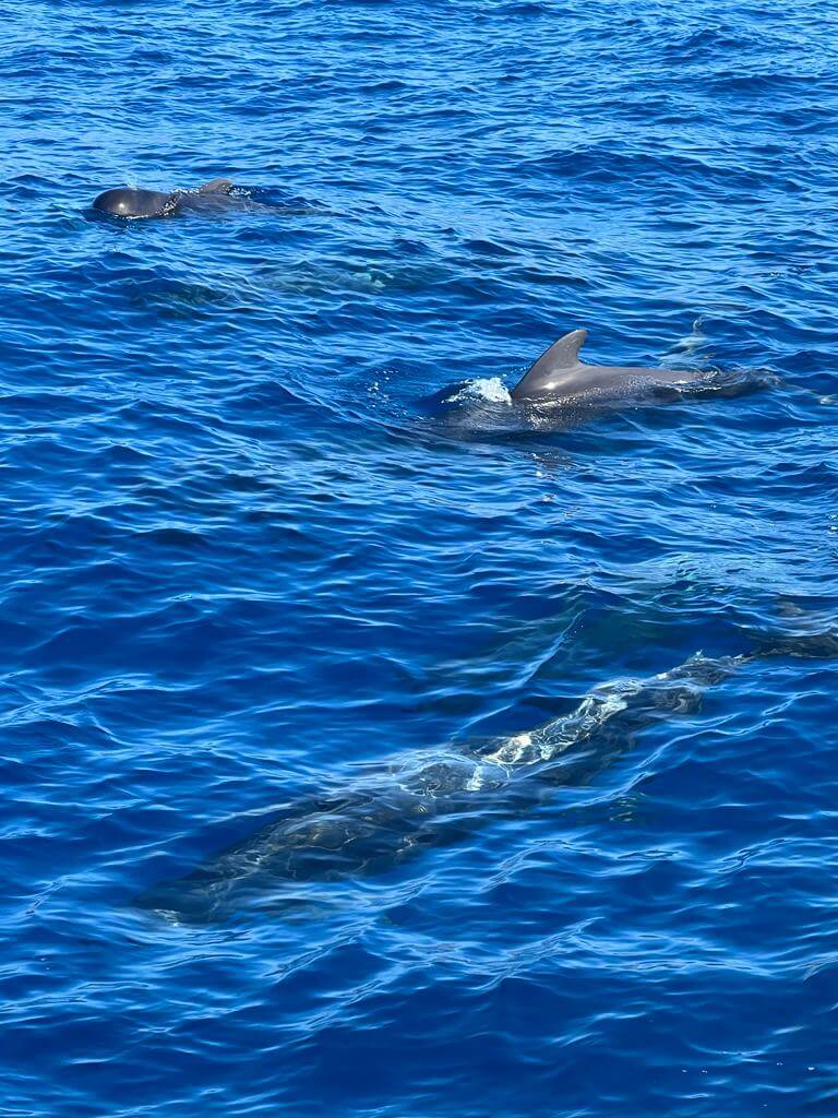 Christa, Moni und Hermann waren beim Whalewatching. Und hatten Erfolg! Sie haben jede Menge Delfine und verschiedenste Wale gesehen. Sie sind total begeistert. Glücklicherweise sind sie seefest. Das Meer war wohl so bewegt, dass es den Sangria erst an Land gab, weil sonst alles übergeschwappt wäre. Ich hätte die Bootstour vermutlich auf dem Boden liegend verbracht.
