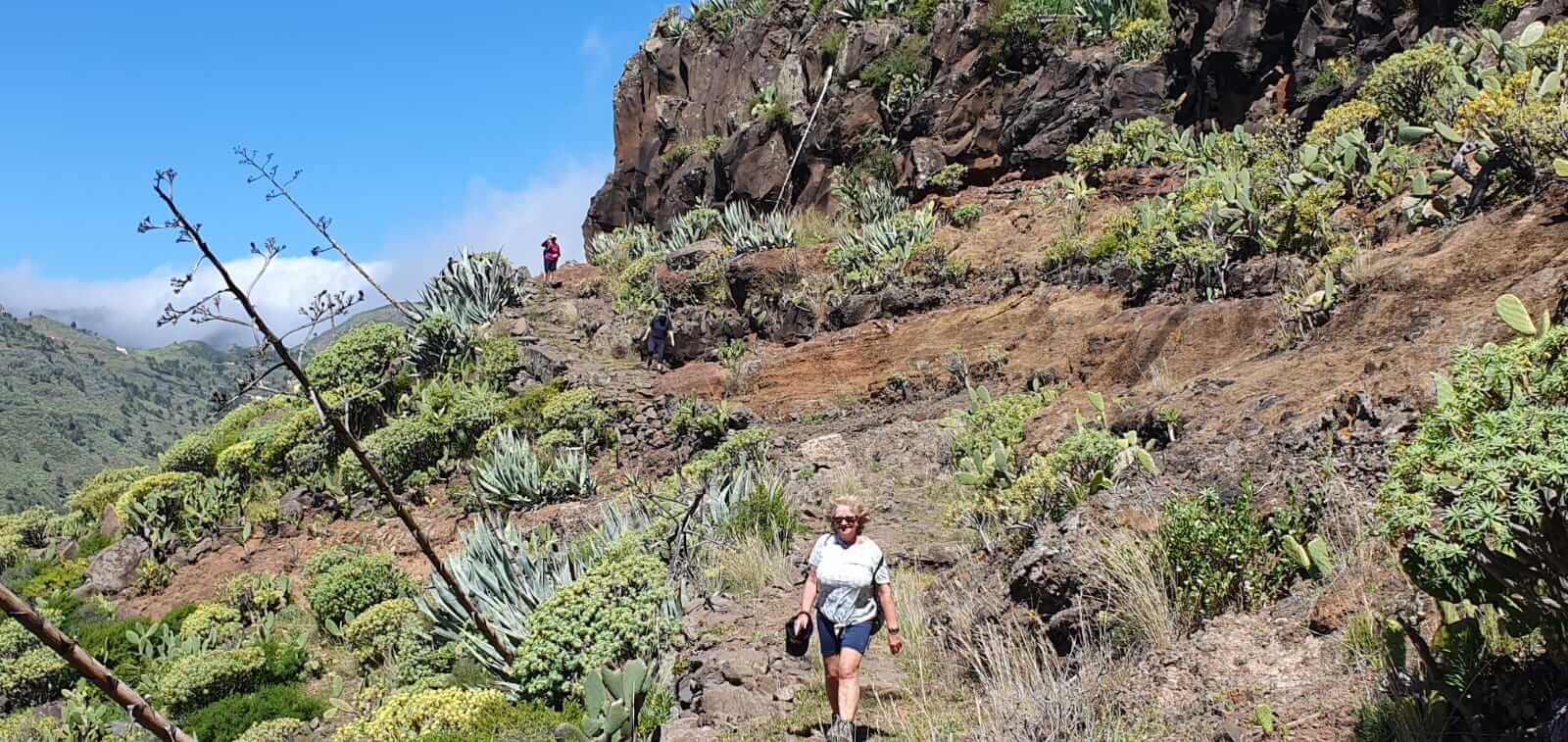 Dann begeben wir uns langsam auf den Rückweg. Ein weiterer Fotostop wird an der Stelle eingelegt, wo wir ein paar Tage vorher schon waren am „Little Machu Pichu“. Unsere unentwegt quatschende Reiseleiterin berichtet uns bei dieser Gelegenheit auch, dass Angela Merkel gerne zum Wandern nach La Gomera kommt und da auch im Hotel Jardin Tecina residiert.