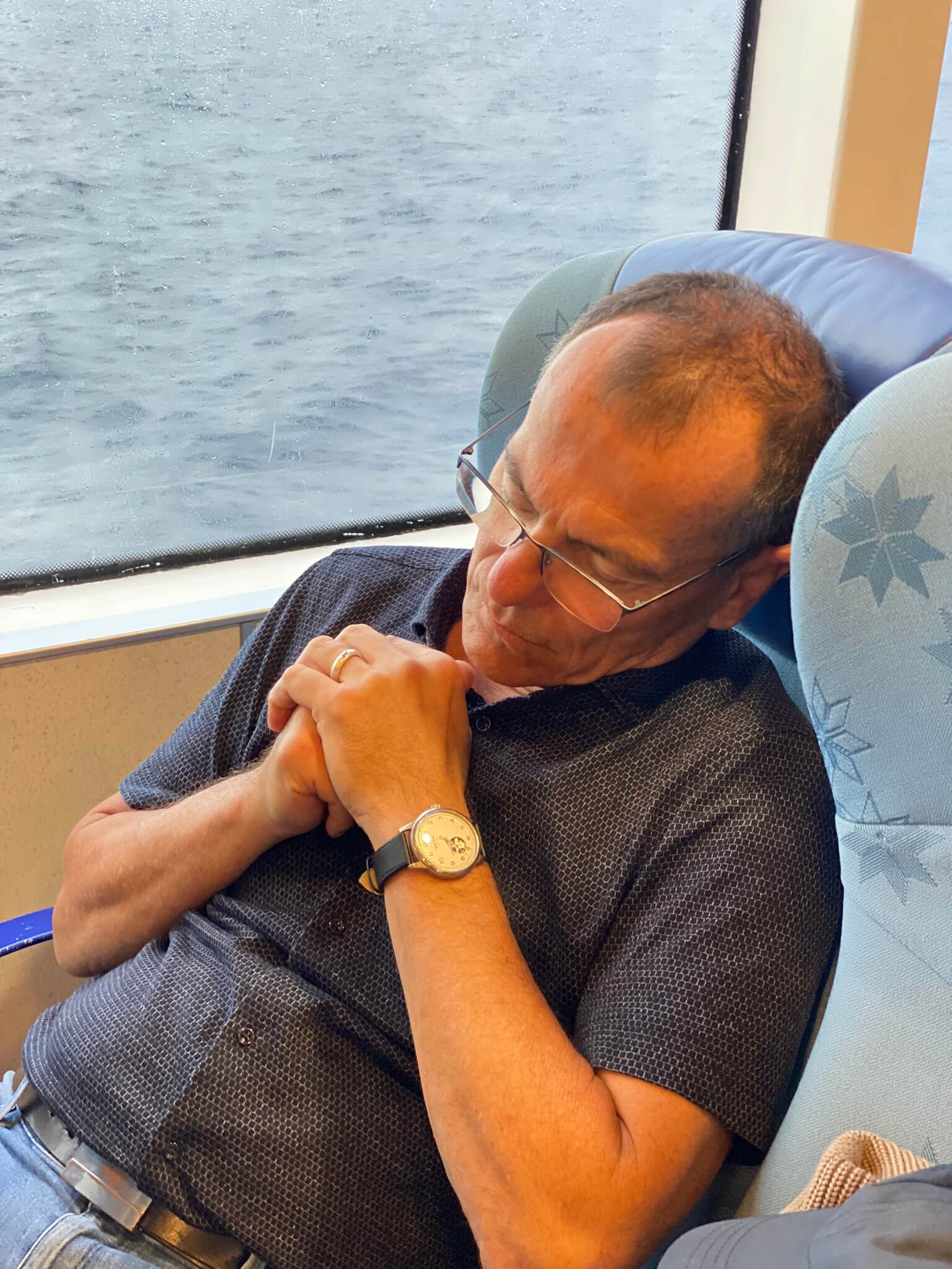 Sonntags gehen weniger Fähren als während der Woche, so dass wir die Fähre um 8:00 Uhr nehmen müssen. An jedem anderen Tag wäre eine spätere Fähre möglich gewesen.