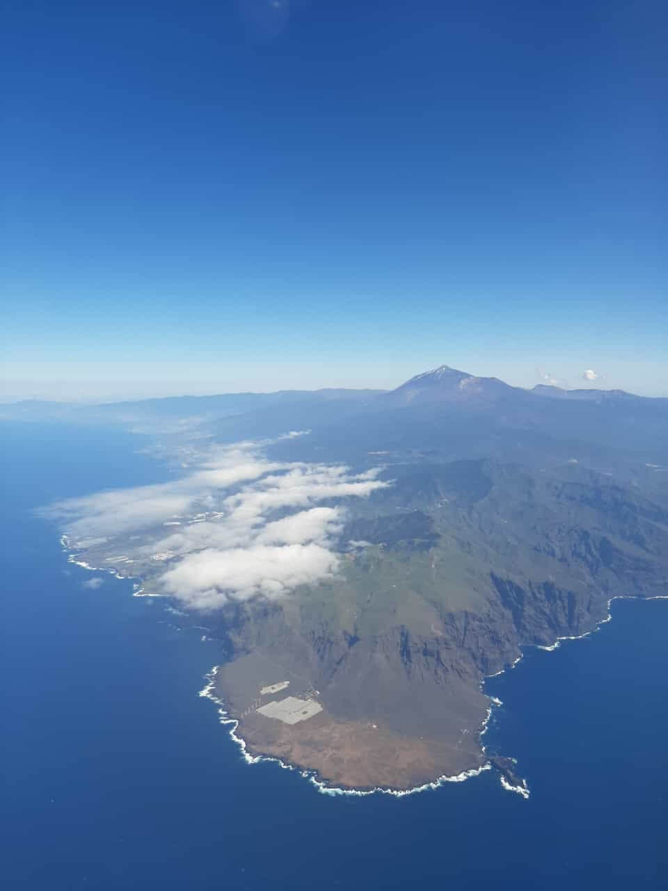 Unser Flug startet wegen eines Fluglotsenstreiks in Frankreich mit etwas Verspätung. Es dauert gute viereinhalb Stunden bis Teneriffa. Der Flug ist angenehm. Eine gut gelaunte Crew betreut uns.