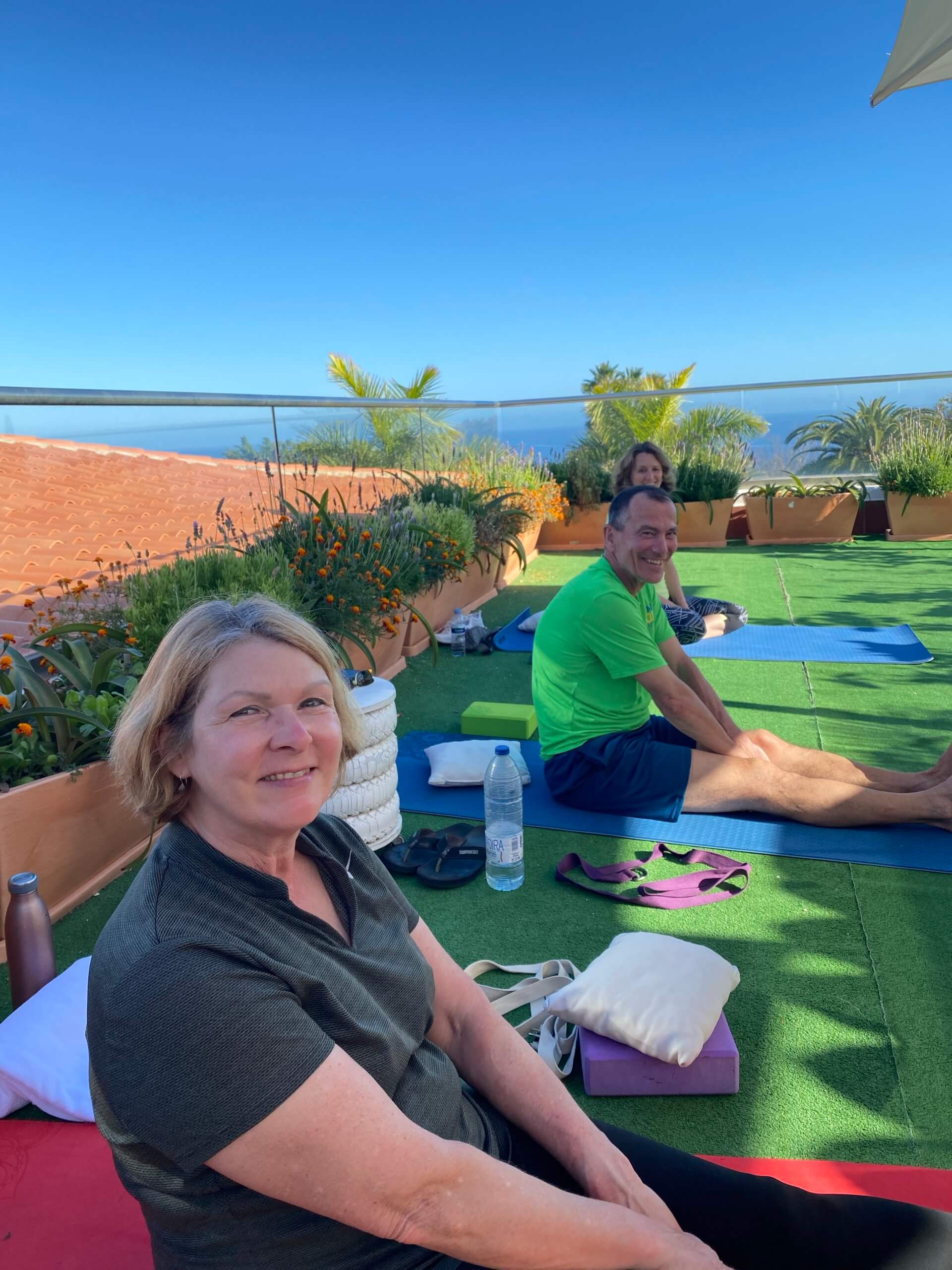 Um 17:00 Uhr gehen wir wieder zum Vinyasa Yoga. Heute ist auch noch Beate dabei und Sabine ebenfalls. Selva erklärt genau wieviel Schmerz man beim Yoga haben darf auf einer Skala von null bis zehn. „Pain like three“ ist immer richtig!