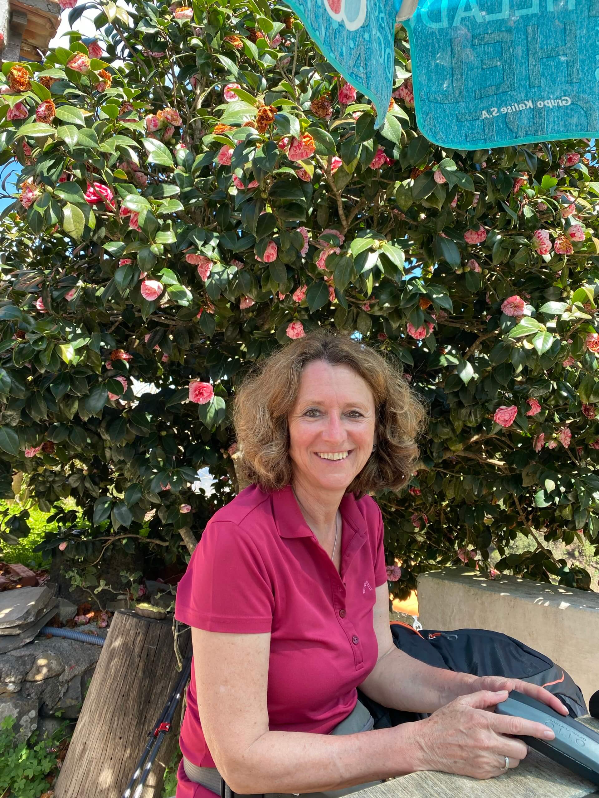 Christa zieht meinen Trolley und macht sich als Caddy sehr gut. Daran könnte ich mich gewöhnen. Nur manchmal vergisst sie ihre Aufgabe für kurze Zeit und schwätzt dann ganz woanders herum, so dass ich ohne Schläger bei meinem Ball stehe. Dann heisst es „Caddy please“.