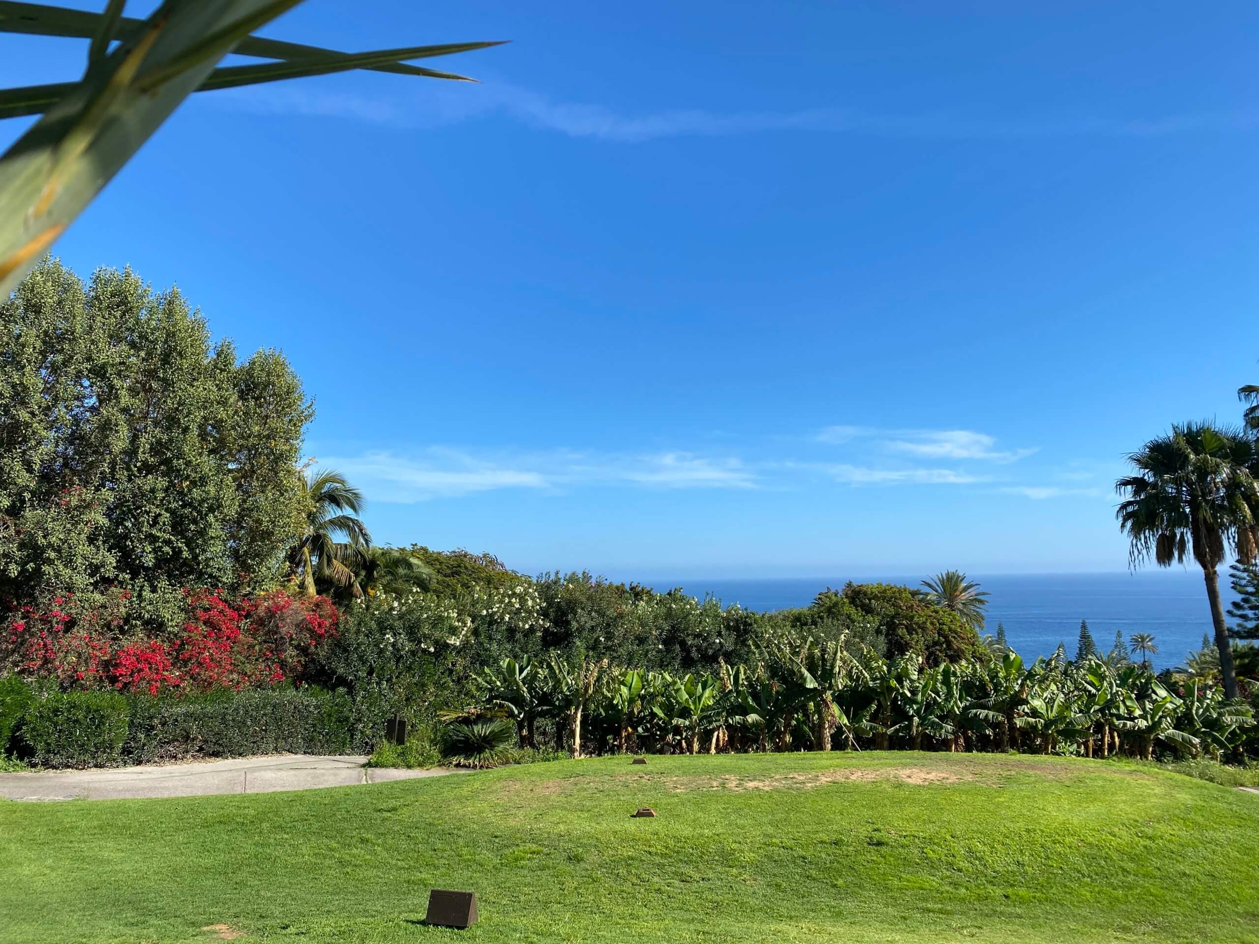 Allenthalben wurde ich verspottet und verlacht, weil ich es nicht einsehen mochte, für einen seitlichen oder frontalen Meerblick einen horrenden Aufpreis zu bezahlen. So habe ich nun ein Zimmer mit schönem Ausblick auf den Garten, woran gar nichts auszusetzen ist. Und das Meer sieht man auch!