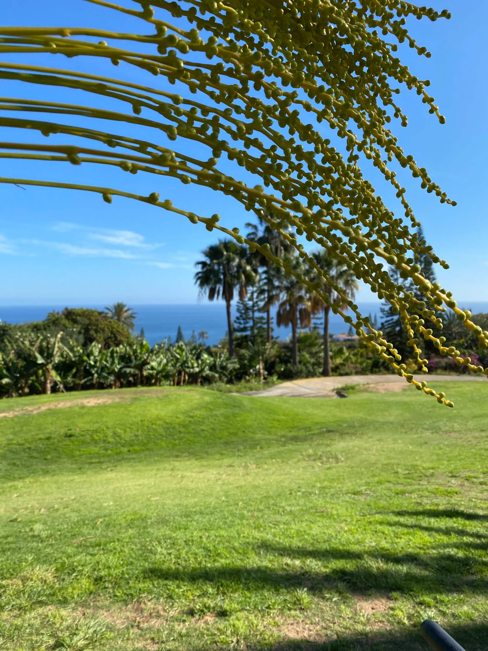 Ganz toll ist im übrigen die Fahrt mit dem Cart zum Tee 1. Da fährt man bestimmt 10 Minuten den Berg rauf und sieht dabei den Platz mal aus einer ganz anderen Perspektive. Ich lerne auch, dass Bananen in den Stauden nicht nach unten, sondern nach oben wachsen.